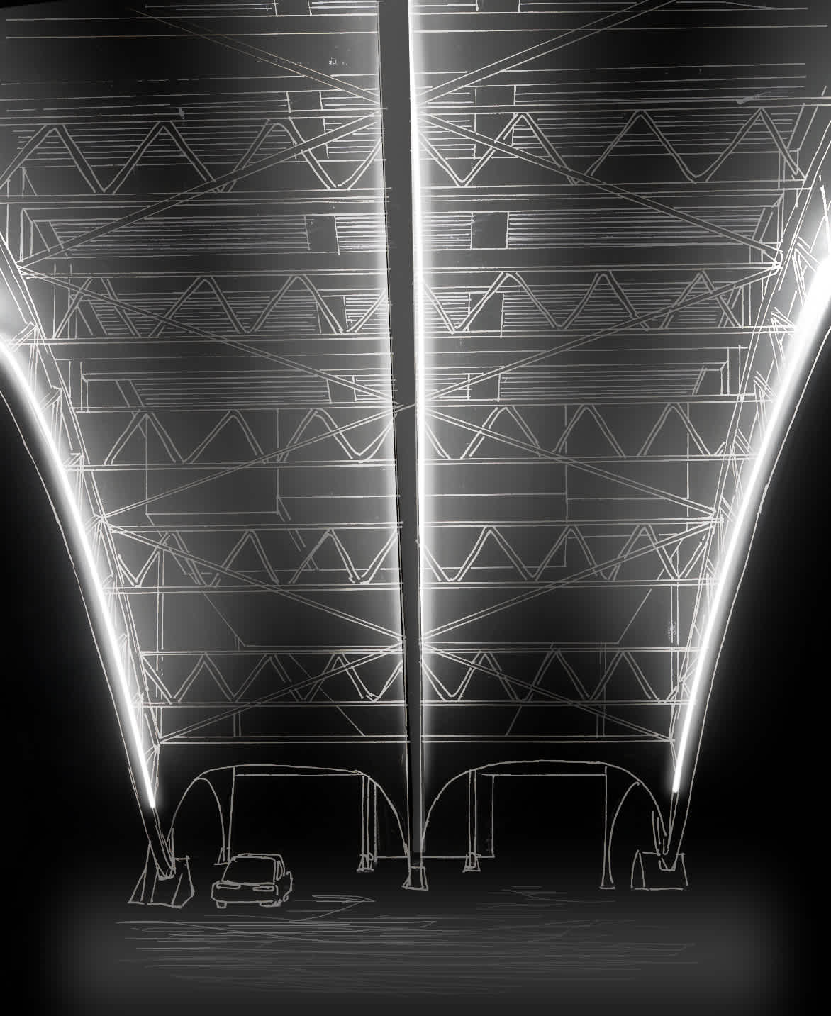 A comprehensive masterplan was developed with the goal of bringing to light the unique characteristics of the neighborhood while making the area safe and easy to navigate. Specific elements are highlighted to create local architectural icons, drawing attention away from the traffic by creating visual points of interest. The MTA bridge is charcaterized by a combination of fine filigree forms with industrial strength. Lighting from within the structure will bring about a play of light and shadow, making use of the delicate filigree shapes. At the top of the bridge, dynamic lighting will be linked to the movement of the subway. The highway viaduct bridge is a historic artifact with dramatic arches; they will be lit from within by either street poles or suspensions.