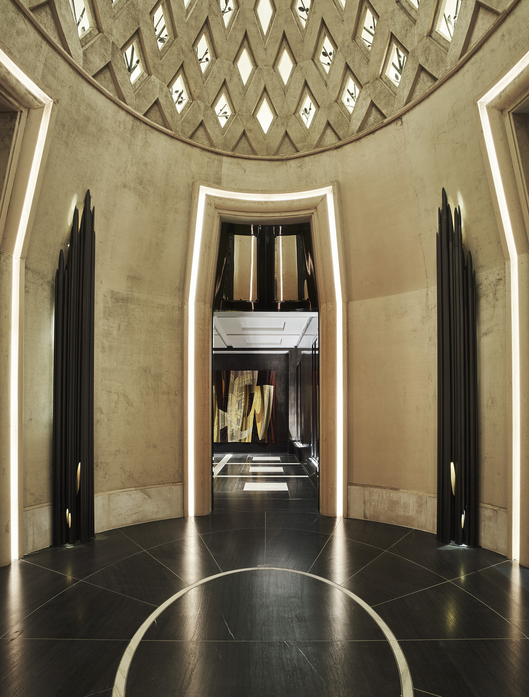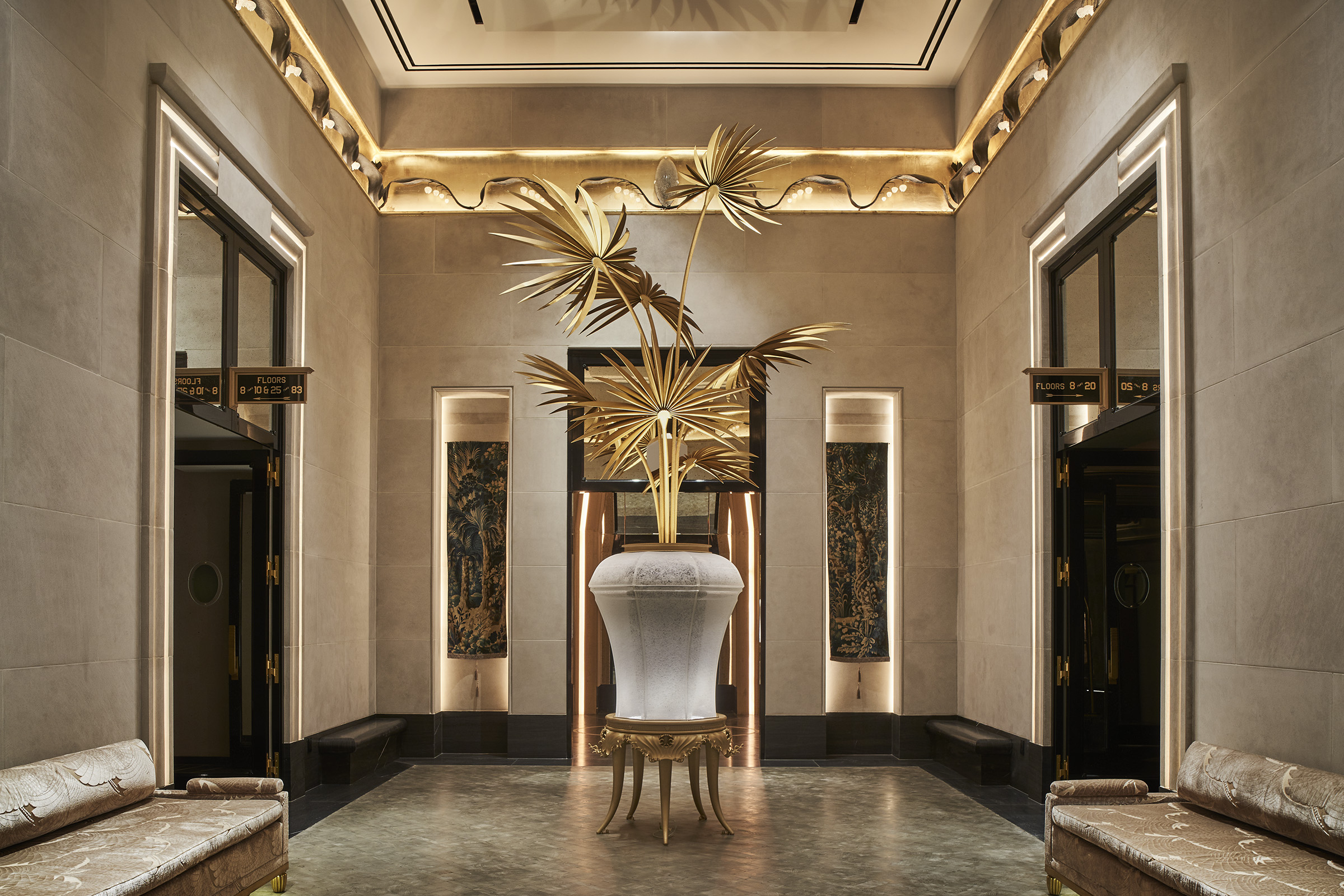 L’Observatoire International designed the residential lighting to convey warm and intimate environments, which enjoy a spectacular view over the city beyond. At the same time, the use of low-level and concealed lighting creates a feeling privacy and protection. A range of custom decorative light fixtures designed by Studio Sofield adds dramatic, glowing moments that echo the tower’s elegant and classic craftsmanship.