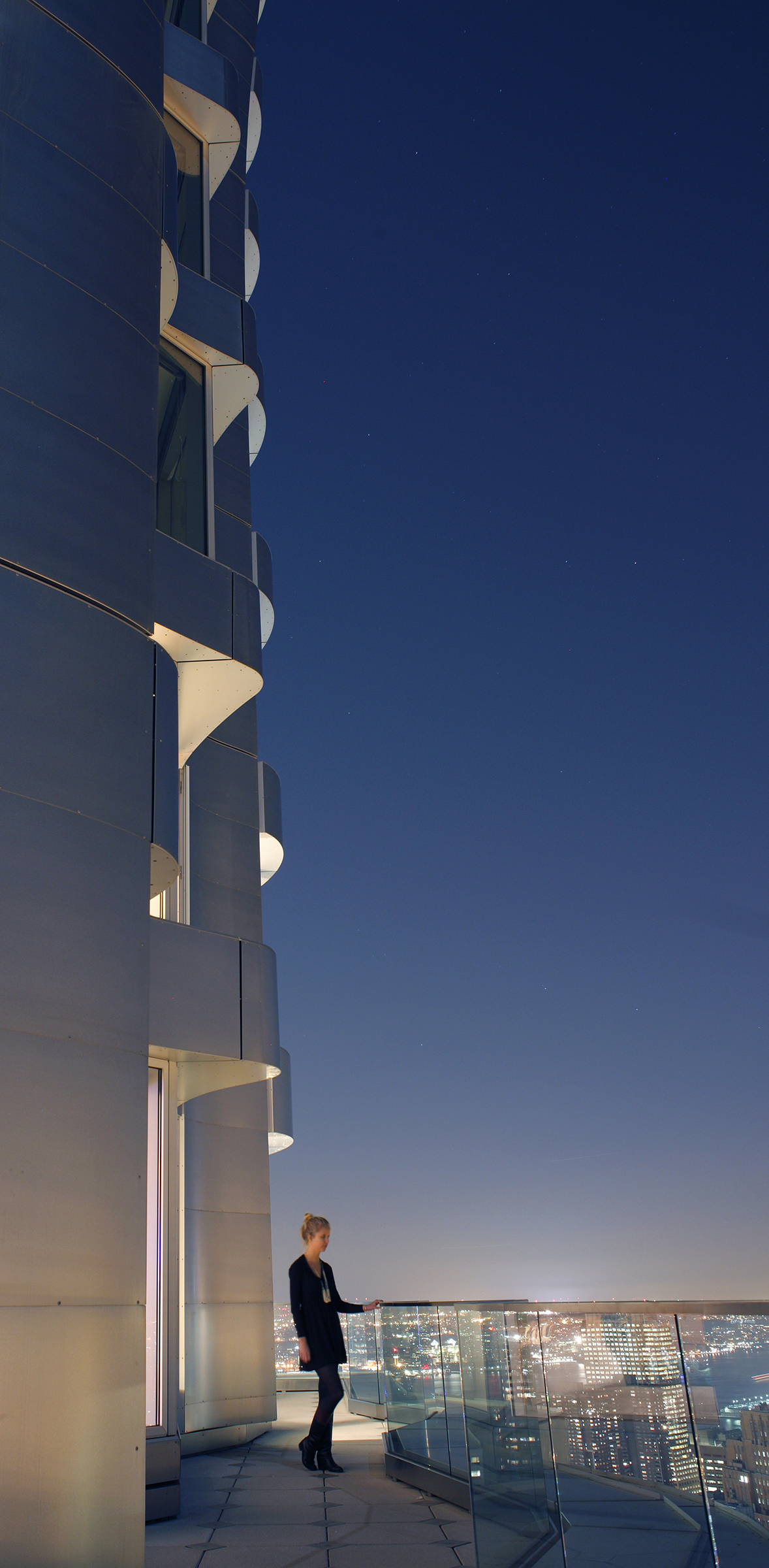 8 Spruce Street is one of the tallest residential towers in the world, and it was the tallest residential tower in the Western Hemisphere at the time of opening in February 2011. The building was developed by Forest City Ratner, designed by Frank Gehry Architects and WSP Cantor Seinuk Structural Engineers, and constructed by Kreisler Borg Florman. It contains a public elementary school owned by the Department of Education. Above that and grade-level retail, the tower contains only residential rental units (898 in total), a rarity in New York’s Financial District. The skyscraper's structural frame is made of reinforced concrete, and form-wise it falls within the architectural style of Deconstructivism together with Aqua, a skyscraper in Chicago begun after but completed before 8 Spruce.