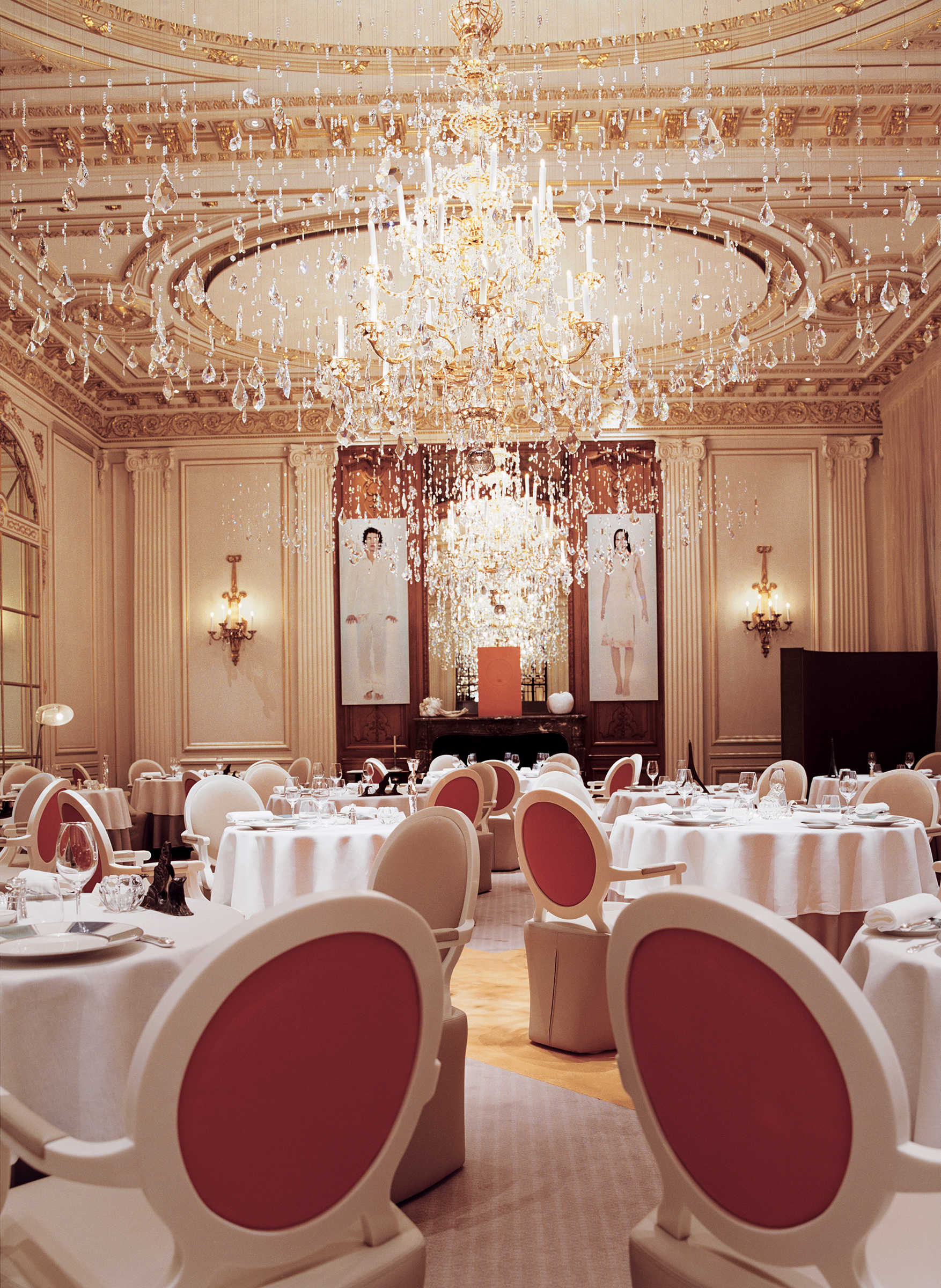 The lighting design aims to link gastronomic experience with a magical one created by a myriad of crystals. As well as using chandeliers, the entire ceiling is covered in a layer of shimmering crystals lit with lights from behind.