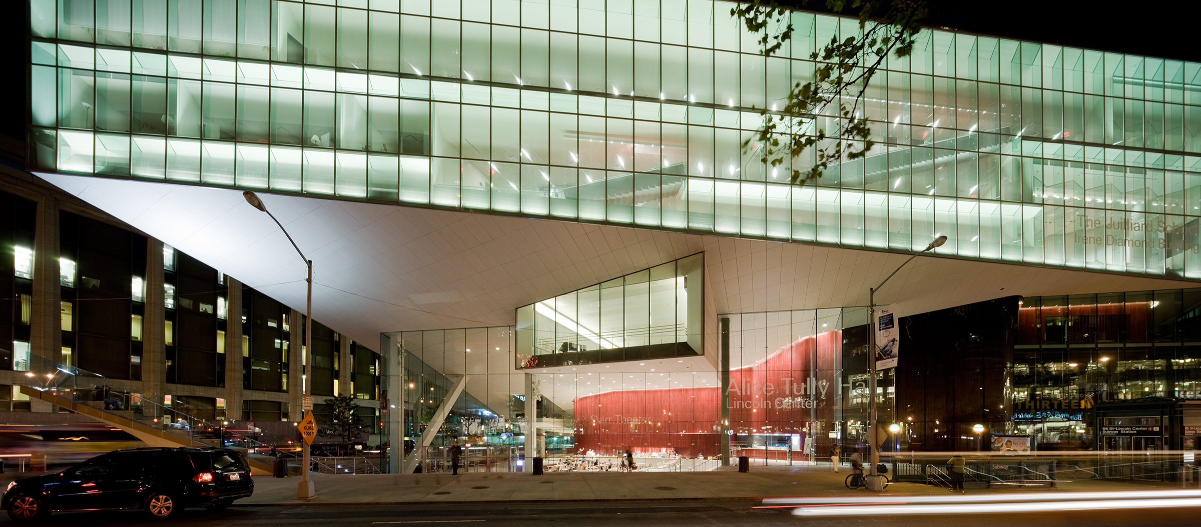 As part of the Lincoln Center 65th Street Development Project, the Juilliard School and Alice Tully Hall underwent a major renovation and expansion by architects Diller Scofidio + Renfro and FXFOWLE. Alice Tully Hall utilizes new interior materials, state-of-the-art technologies, and updated equipment for concerts, film, theater, and dance. The expansion of the Juilliard building created a three-story all-glass lobby and sunken plaza beneath a cantilevered extension, “projecting a newly visible public identity to Broadway.”