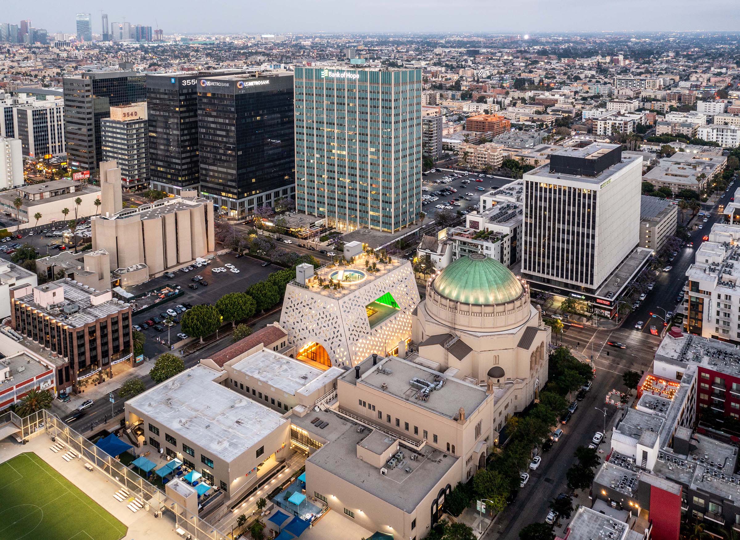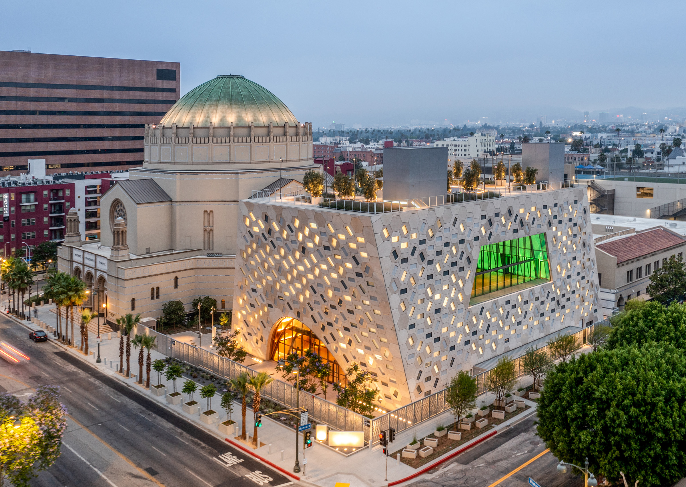 Adjacent to the Wilshire Boulevard Temple in the center of Los Angeles, the Audrey Irmas Pavilion shapes a new presence for this busy city corner and frames the entry to the Temple complex. L’Observatoire International worked with OMA and Gruen Associates to amplify the urban presence of the building while retaining a welcoming atmosphere for the community.