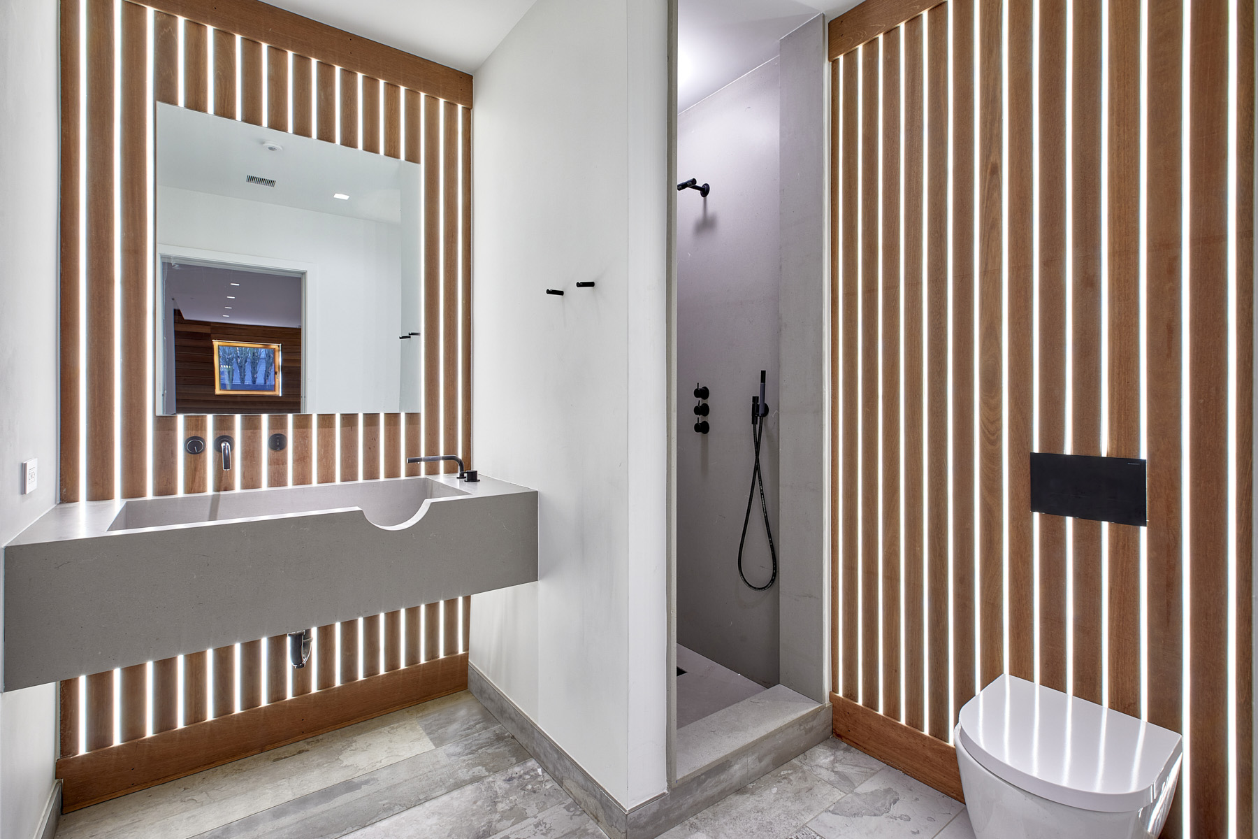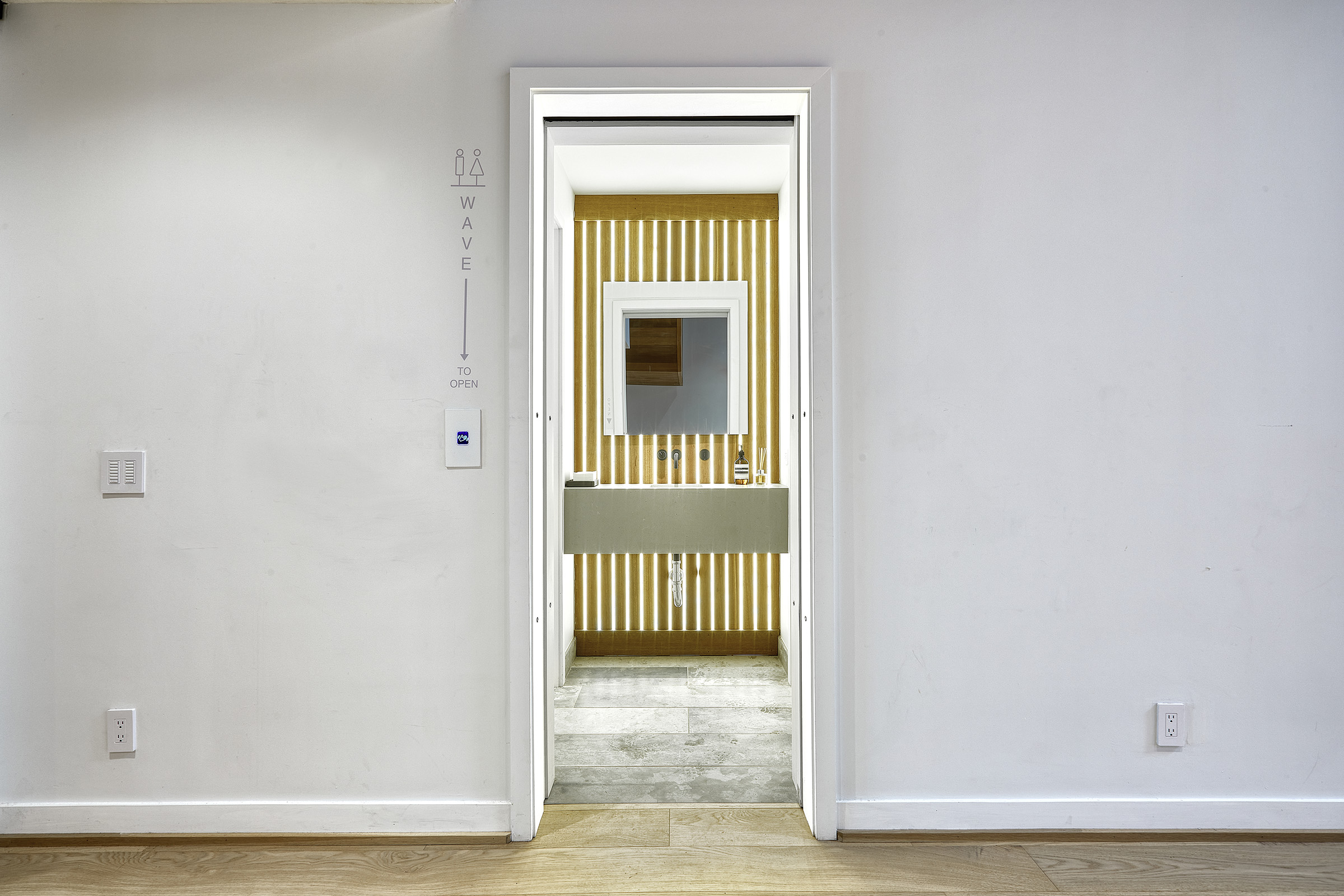 The scope also included the entry lobby, reception and historic facade- an iconic old stone facade advertising the building's previous use as a bathhouse. The intent in its illumination was to bring out the depth of the building and highlight the entry, to create something iconic but subtle- given the buildings use as both commercial and residential, and its situation in the still largely residential but iconic East Village neighbourhood.