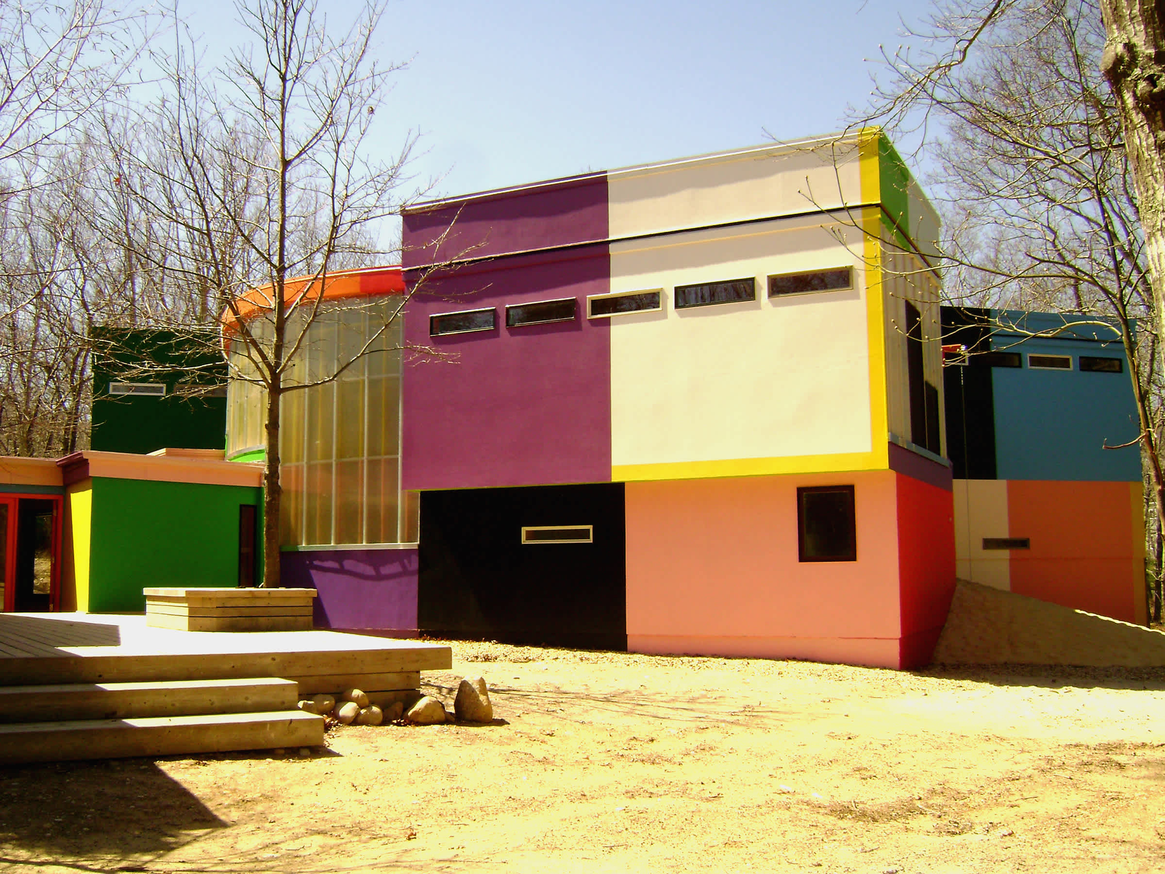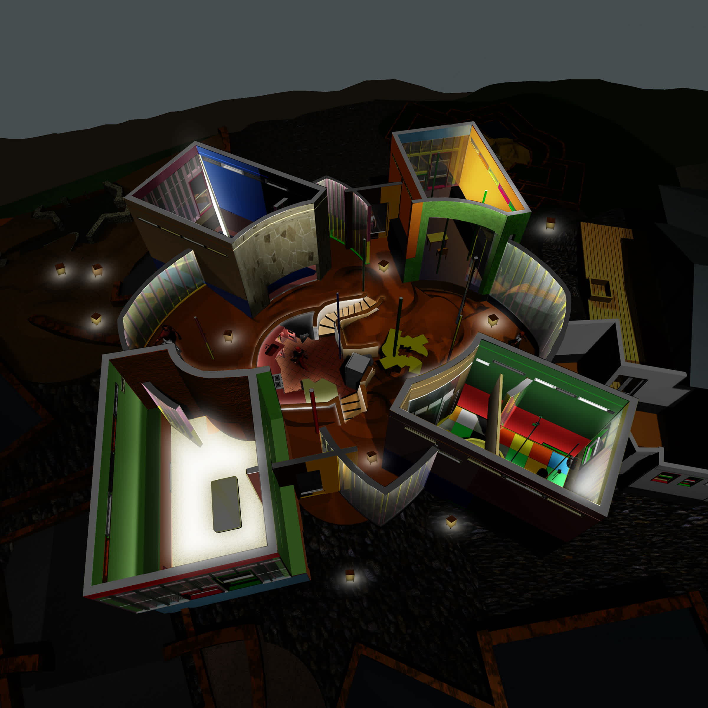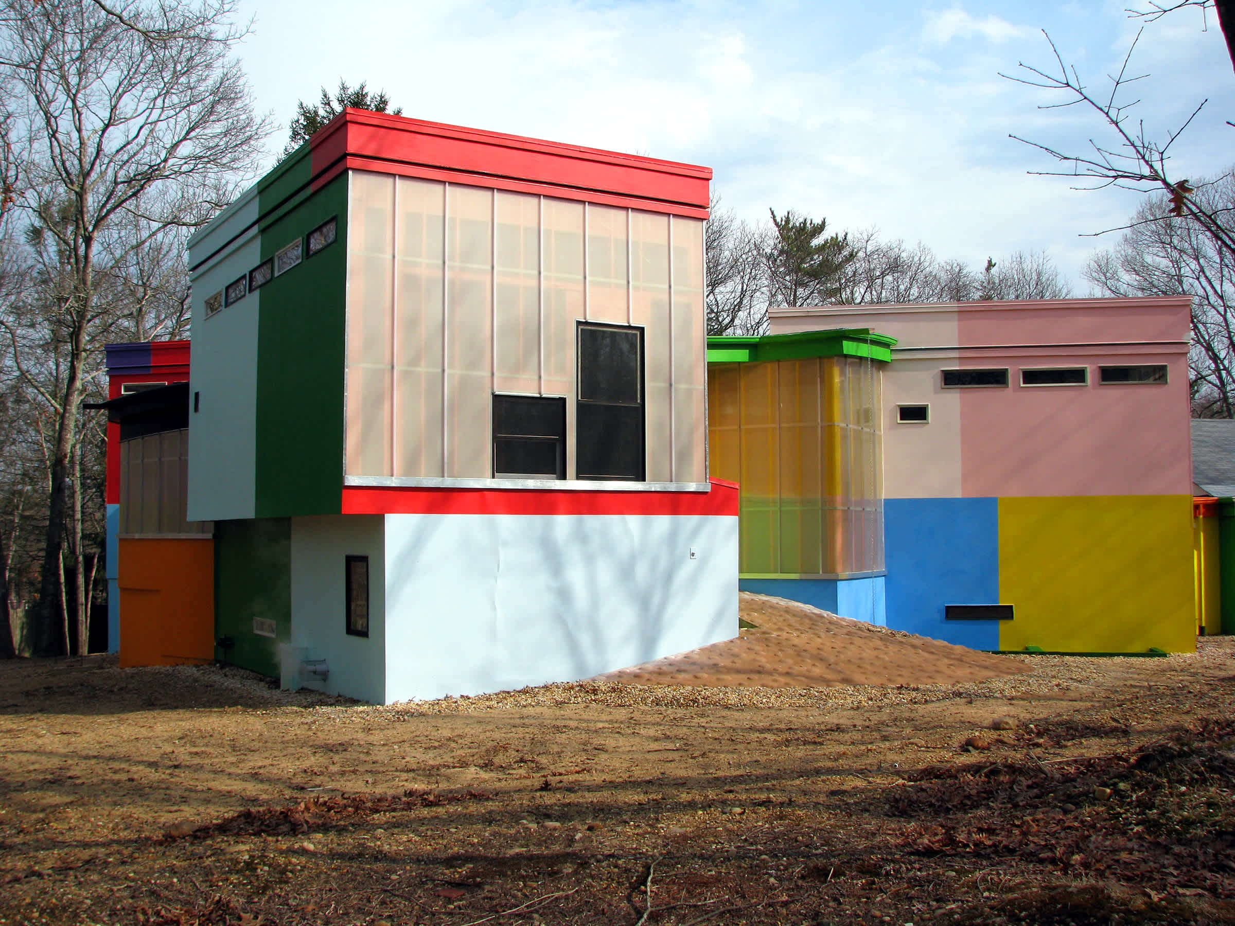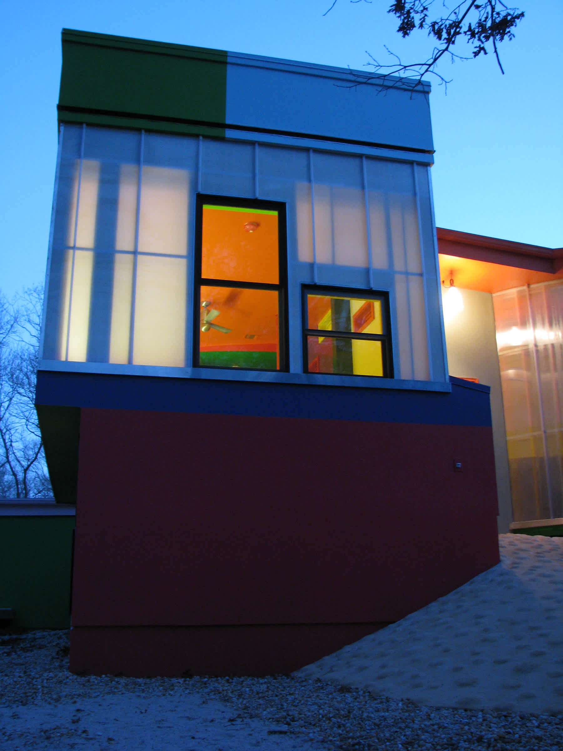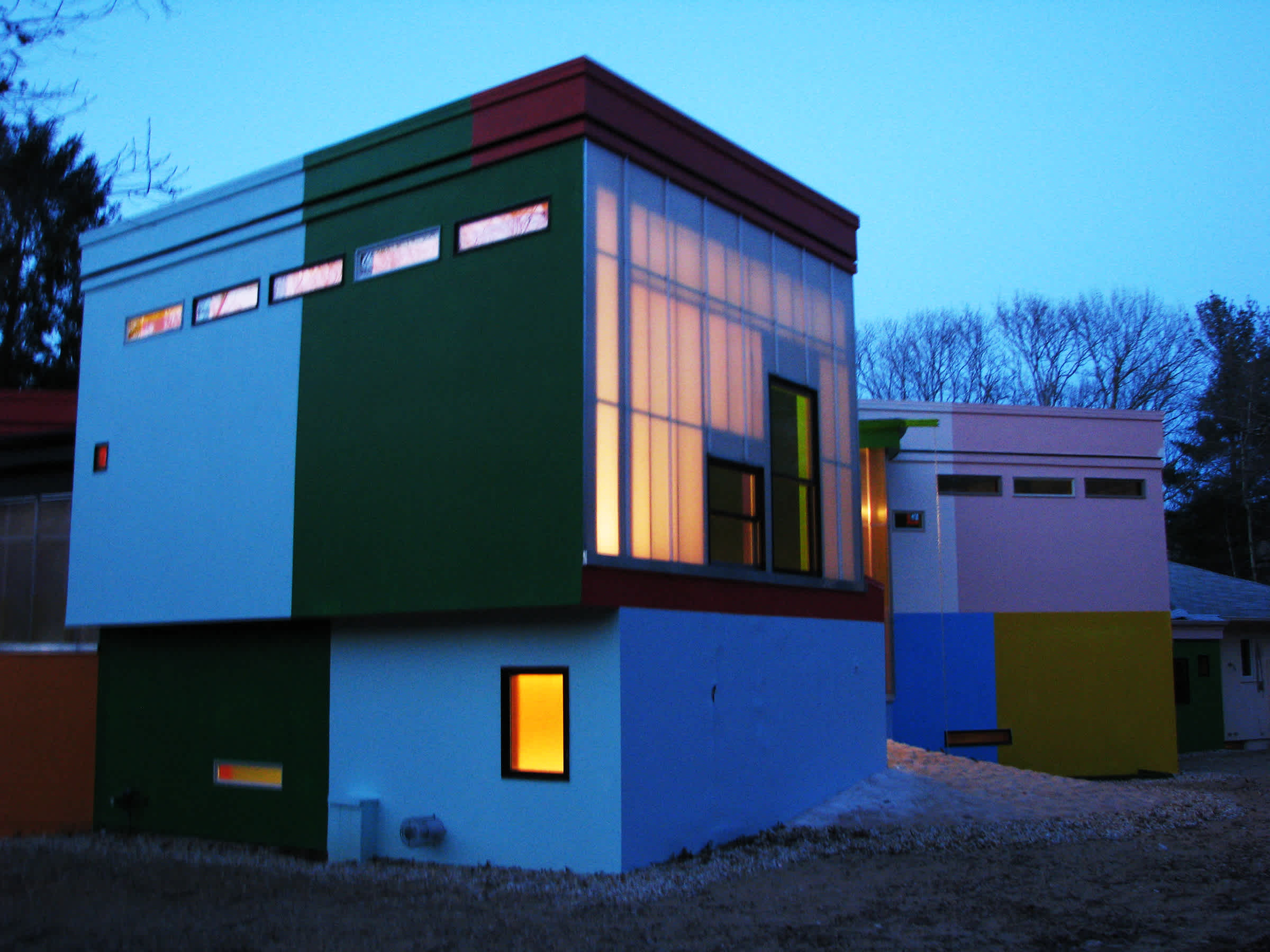Architects Arakawa and Gins executed extensive interdisciplinary research that engendered atypical solutions for domestic space. In response, the lighting is made mobile and changeable. Light for various rooms comes from sources in the walls, floors, and ceilings. Lighting for common spaces is integrated with the exterior scheme.