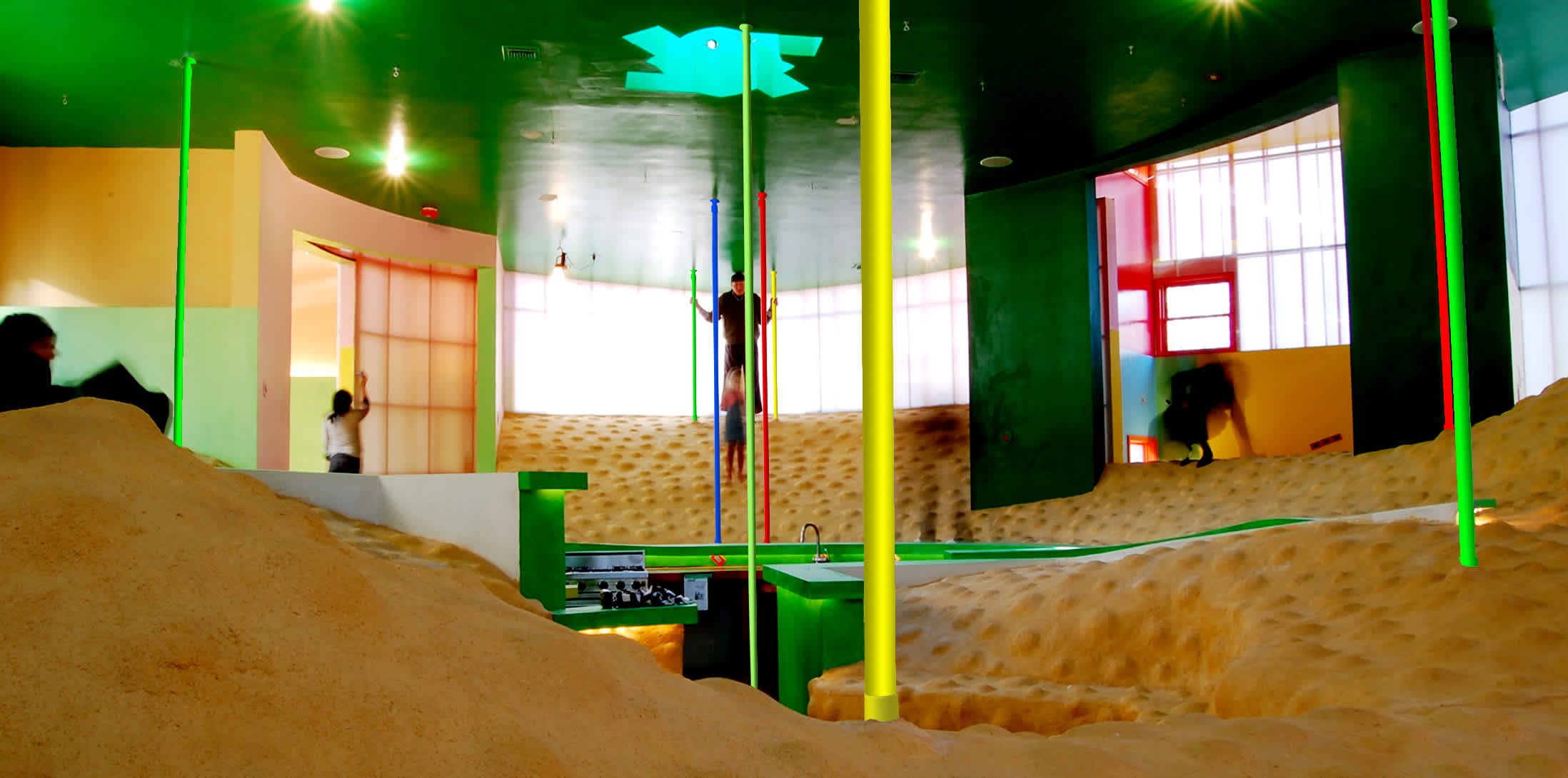 Bioscleave House is a private home-cum-interactive laboratory with sloping floors and unexpected seams, whose fundamental subject is “staying alive/ coming alive to/ staying alive to.” The house offers immortality to those who move about within.