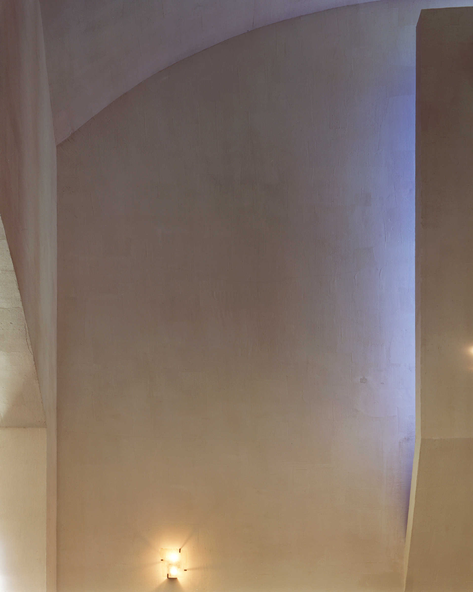 As a space designed for reflection and meditation, the lighting concept engages an intentionally serene mood. Here, the lighting concept responds to architect Steven Holl’s notion of “Seven Bottles of Light in a Stone Box,” in which each light corresponds to an aspect of Jesuit Catholic worship. This effect is realized through lighting embedded behind baffles, reflecting colored surfaces to create a colored glow. In addition, suspended fixtures and wall sconces designed by Holl dim to emulate the warmth of candlelight.