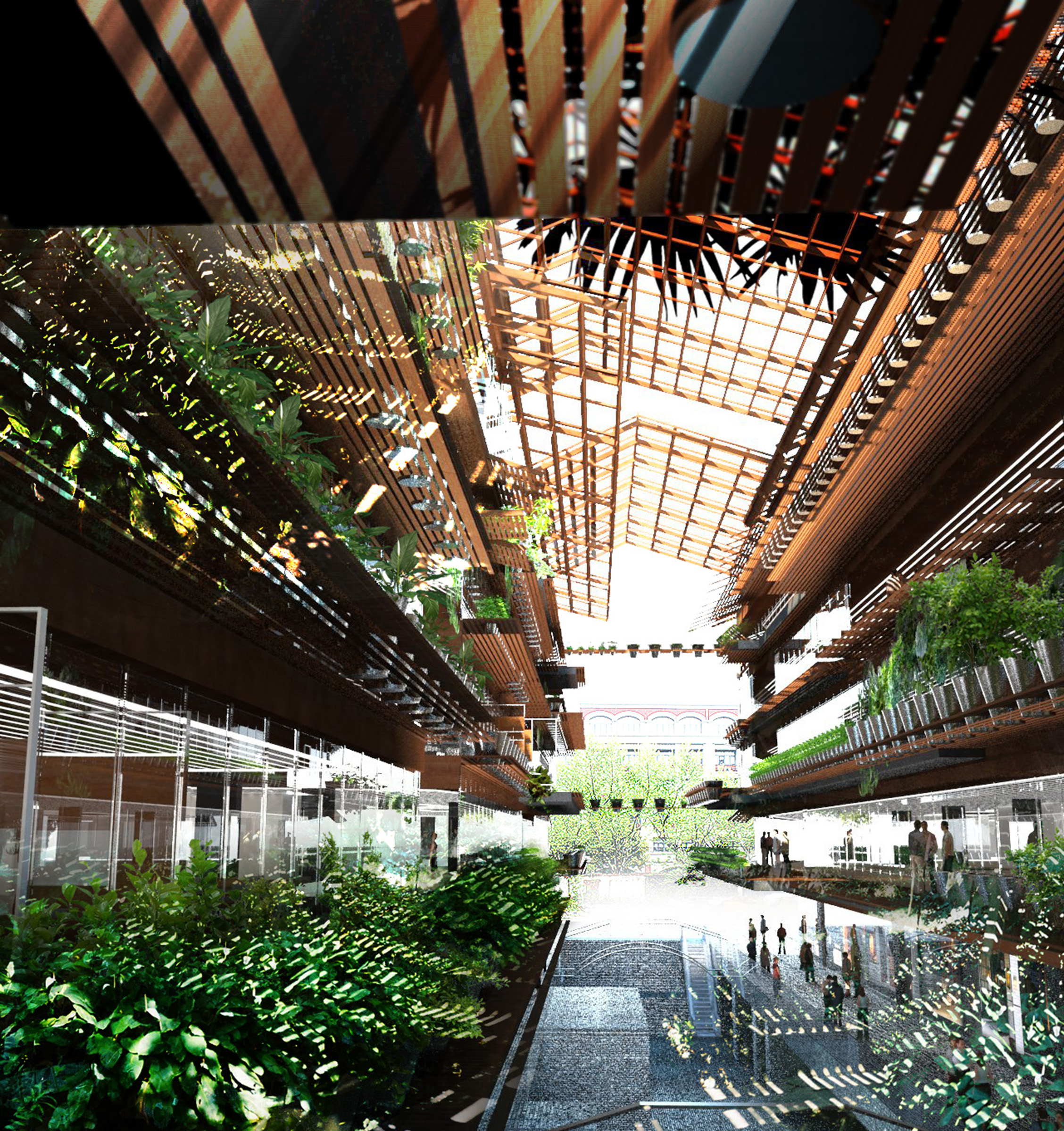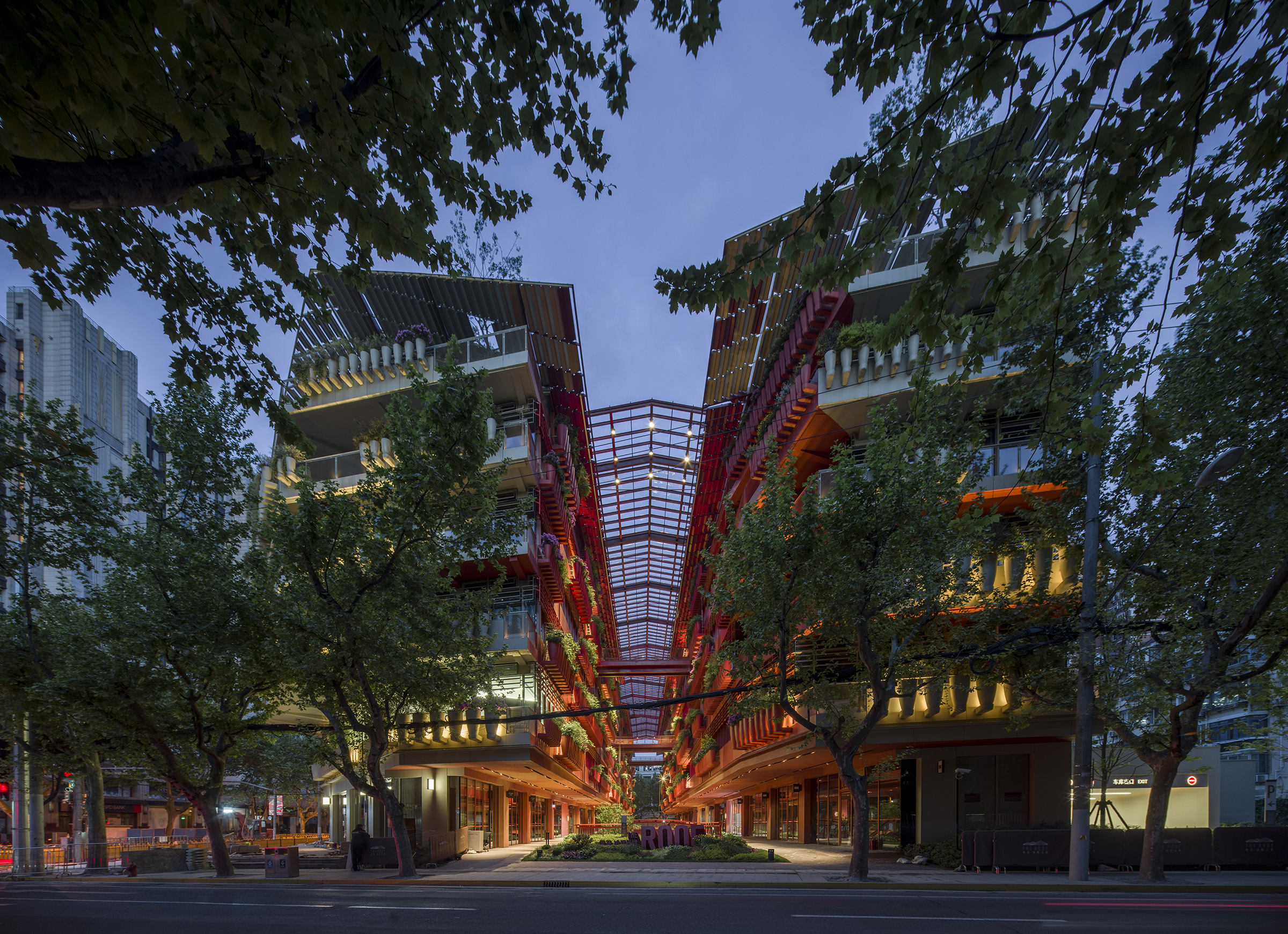 The former French Concession has long put its stamp on this part of Shanghai, and it’s obviously an honor for a French architect to design an urban space here in tune with its urbanism, plane trees, narrow streets, and inhabited landscapes. Between Ma Dang and Dan Shui streets, it was tempting to create a shortcut that would be an urban and commercial passageway, a sequence evoking vanished surroundings that have been completely reimagined and are new and modern; a high, narrow street that’s covered and protected. The buildings need to know where they reside so as to create a desire for unique and unpredictable walks. Being open, the project fits into the quarter’s geometry.