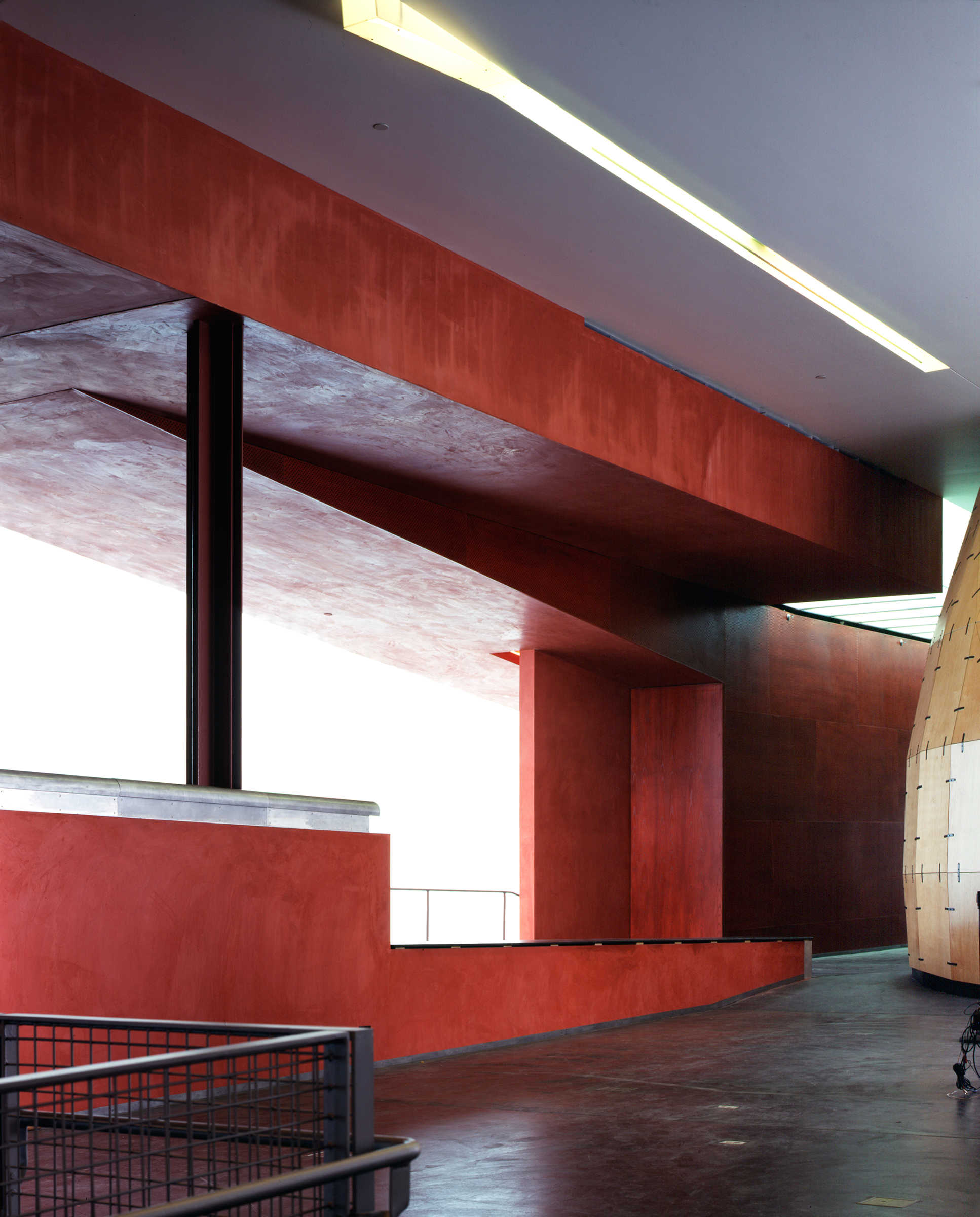 The lighting principle follows a subtle and defined rhythm that turns along the curves of the strange attractor motif organizing the building: the lighting fixtures will be small and their grouping rhythmic. The diffuse and calming lighting will act as a restful visual bridge between exhibits. During the day, lines of skylighting will provide clean unobtrusive illumination and at night the same structures will become bars of electrical light. The straight lines of the light bars will further promote the feeling of rhythmic motion set in play by the building itself. Following the structures established by the architecture, the lighting will focus attention on the points of possible divergence within the curves of the building just as points of independent trajectory act to center the energy nexus of strange attractors.