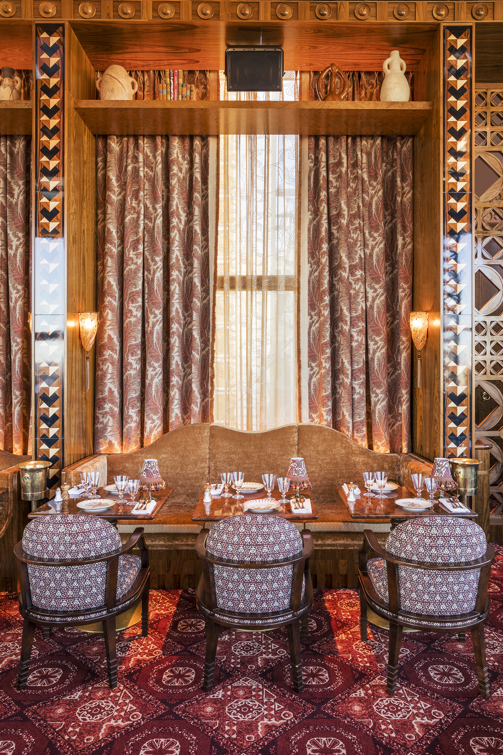 For this project, Paris Society called on the architect Laura Gonzalez, who created for Dar Mima an oriental paradise on the rooftops of Paris. A place infused with Arab hospitality, a bridge between East and West, like the IMA. In the plate, the dishes write a greedy and inspired score, that of a kitchen of sharing. From man'ouché to fattouche, from pastilla to tajine, oriental culinary influences are mixed in this mixed cuisine where the quest for taste and openness are the key words.