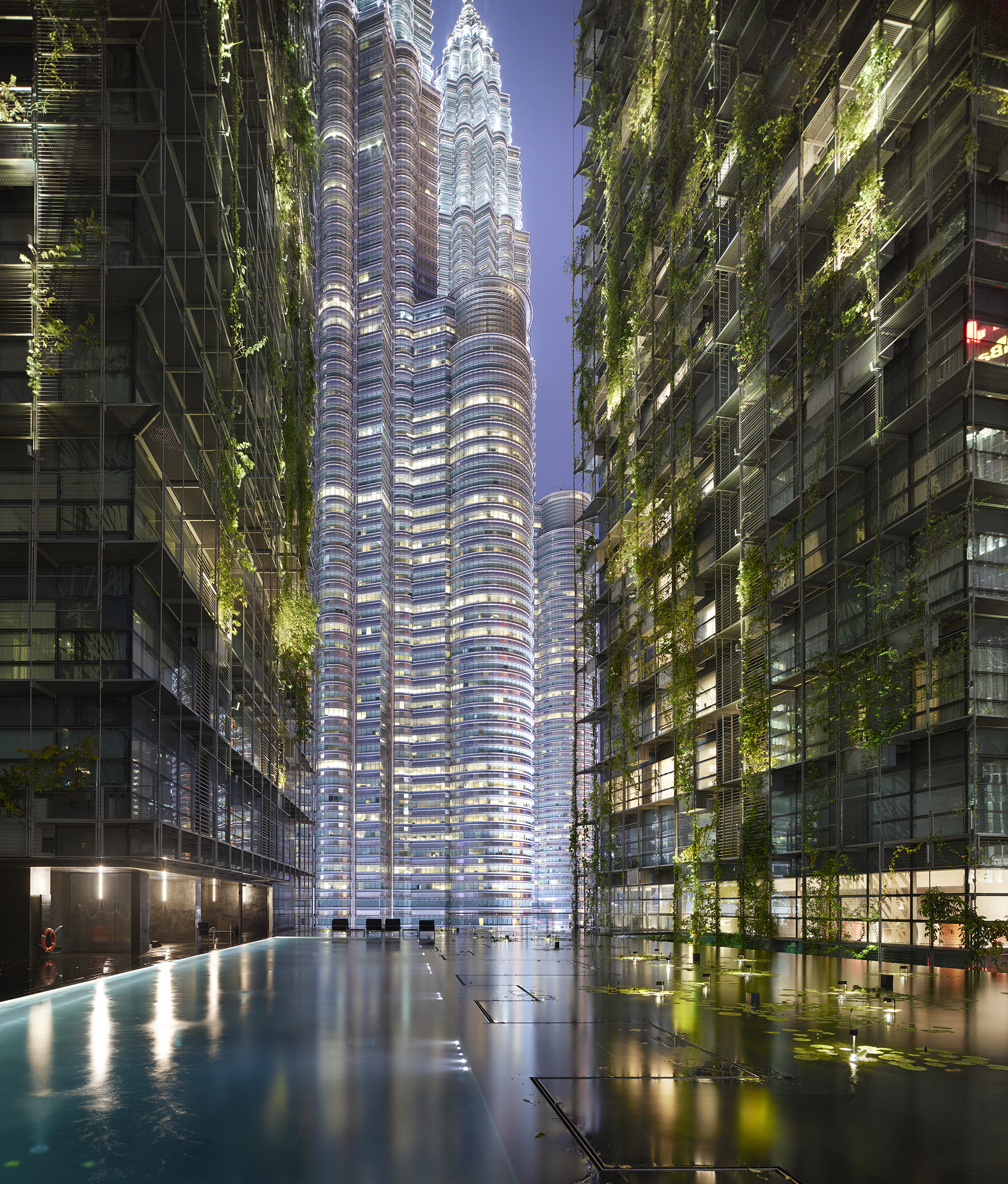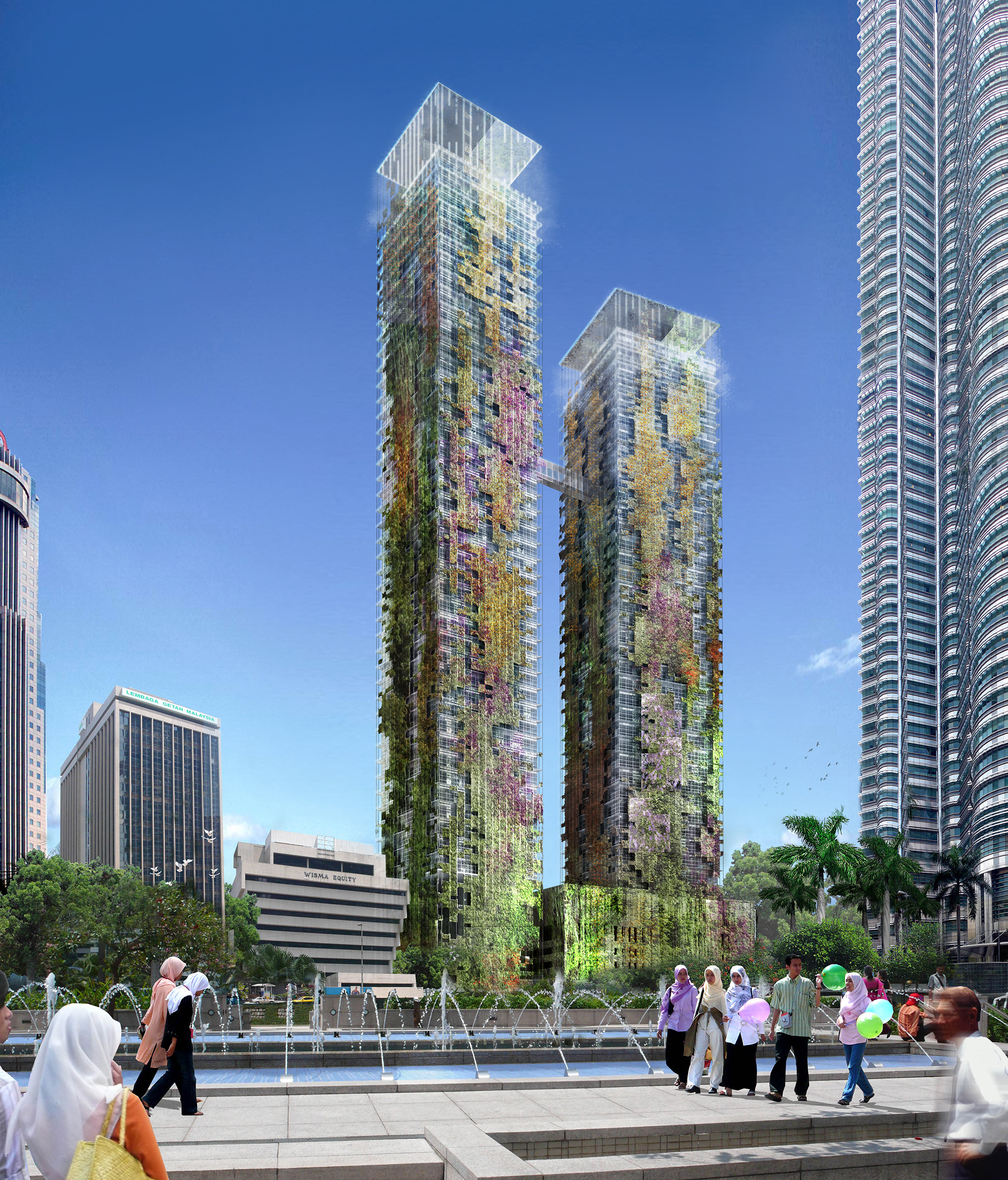 Le Nouvel Menara is a modern tower fronting the iconic KLCC Twin Tower in the heart of Kuala Lumpur's city centre. The forty-nine and forty-three storey towers are comprised of 197 luxury condominium units designed by Ateliers Jean Nouvel with striking vertical gardens designed by Patrick le Blanc.