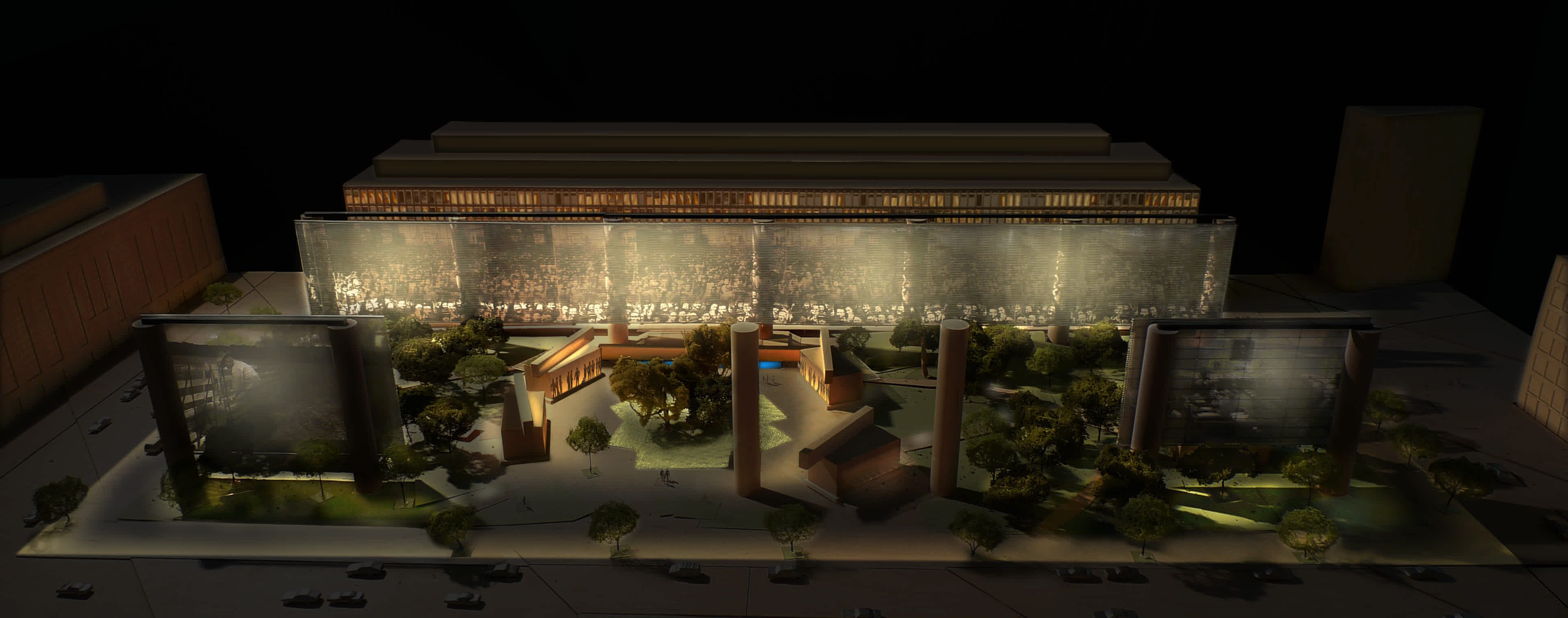 The Memorial is transformed into a welcoming “urban room” whose perimeters are defined by light rather than physical walls.