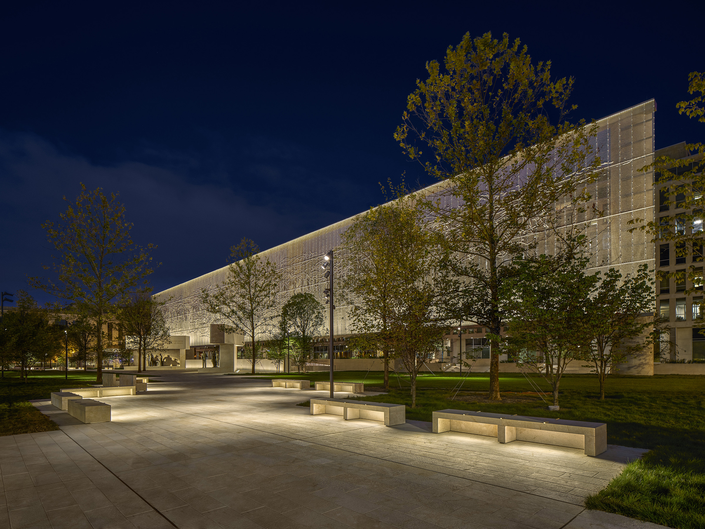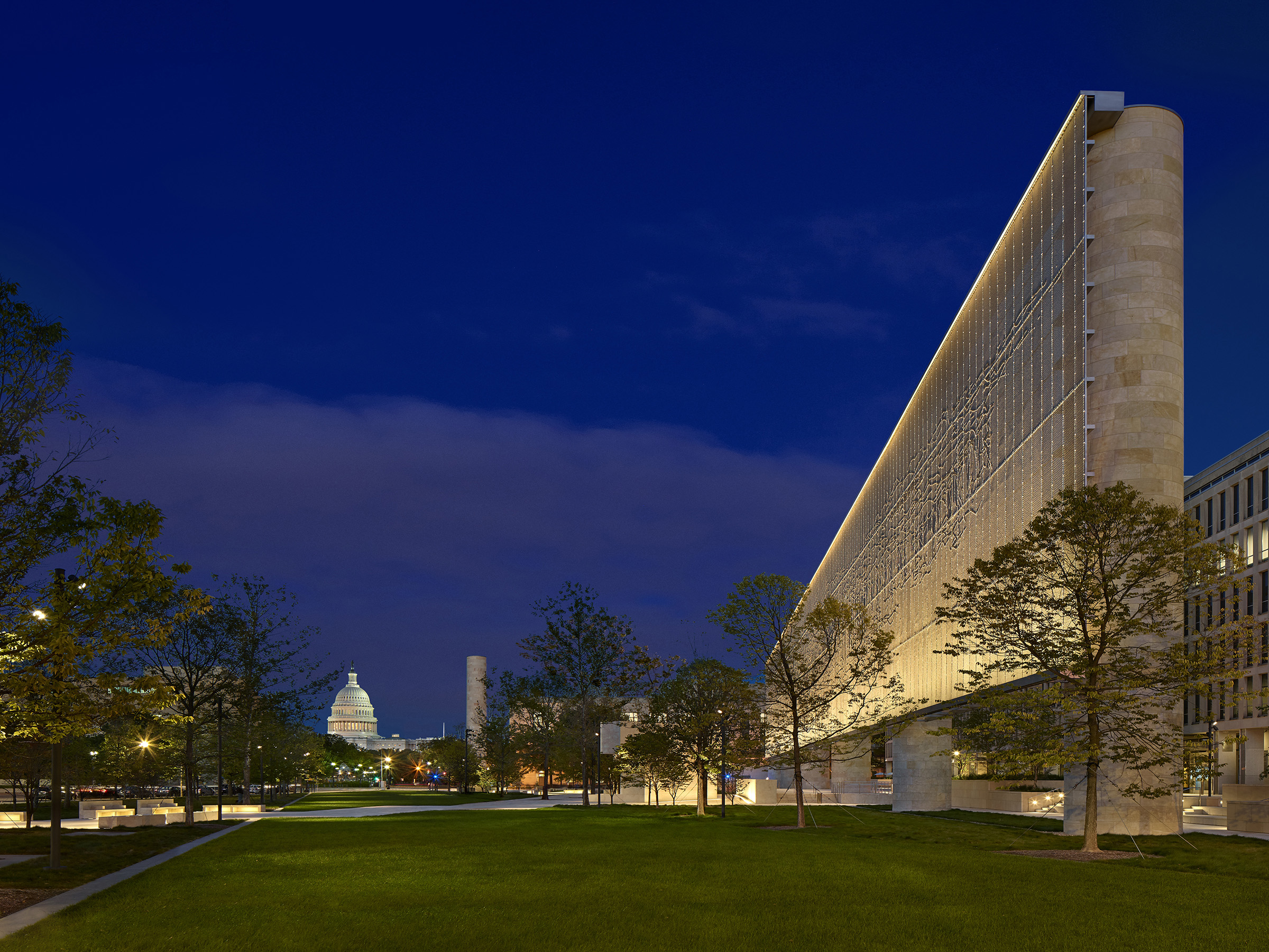 The Dwight D. Eisenhower Memorial celebrates the life and accomplishments of the thirty-fourth President of the United States. Located at the center of a four-acre landscaped plaza, the Memorial features a commemorative large-scale stainless-steel tapestry, bronze sculptures, and inscription wall. Lighting is closely interwoven into the design by Gehry Partners. L’Observatoire International was commissioned for a full scope of lighting design: illuminating the plaza and its pathways, the memorial core, and surrounding streetlighting.