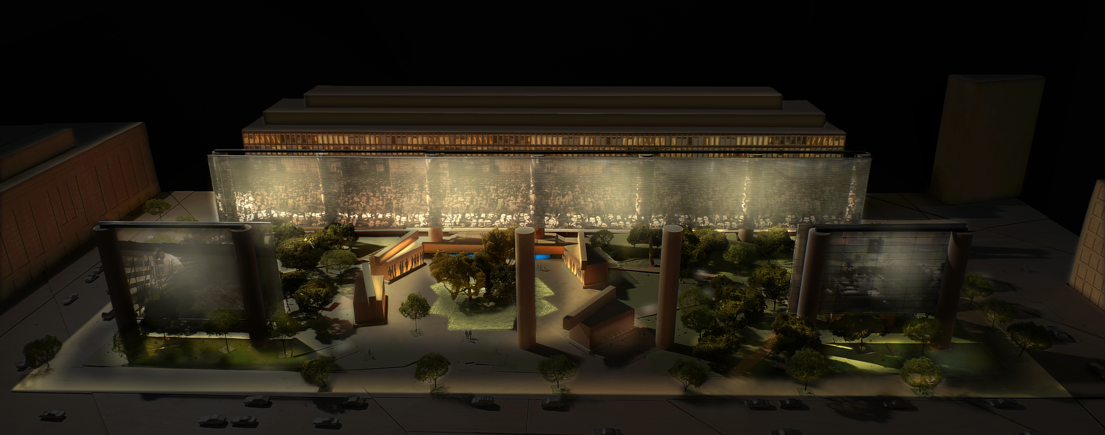 The Memorial is transformed into a welcoming “urban room” whose perimeters are defined by light rather than physical walls.
