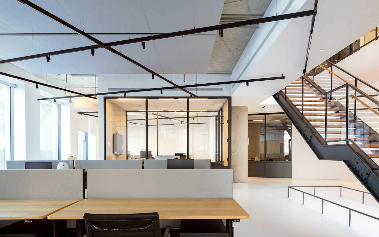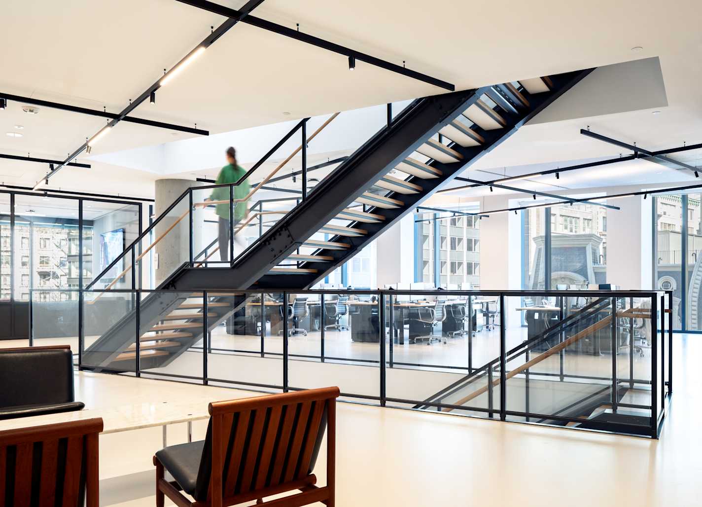 L’Observatoire International worked with Selldorf Architects on a cutting-edge commercial workspace tailored for a leading Entertainment Company Headquarters, renowned for its excellence in film and television production. Set within the vibrant landscape of New York City, this project encompasses approximately 40,000 square ft of interior space spread across 5 office floors, with a central feature staircase that connects each level. L'Observatoire created a modular, structured lighting system that could be adapted across all floors, reconfigured to each of the workspaces; including meeting rooms, a library, dining areas, lounges, a screening room, and work banks for each team. In addition to this, the project includes 3,500 square ft of exterior balcony and terrace space, with seating, lounges and event terrace to allow for a true interior- exterior experience.
