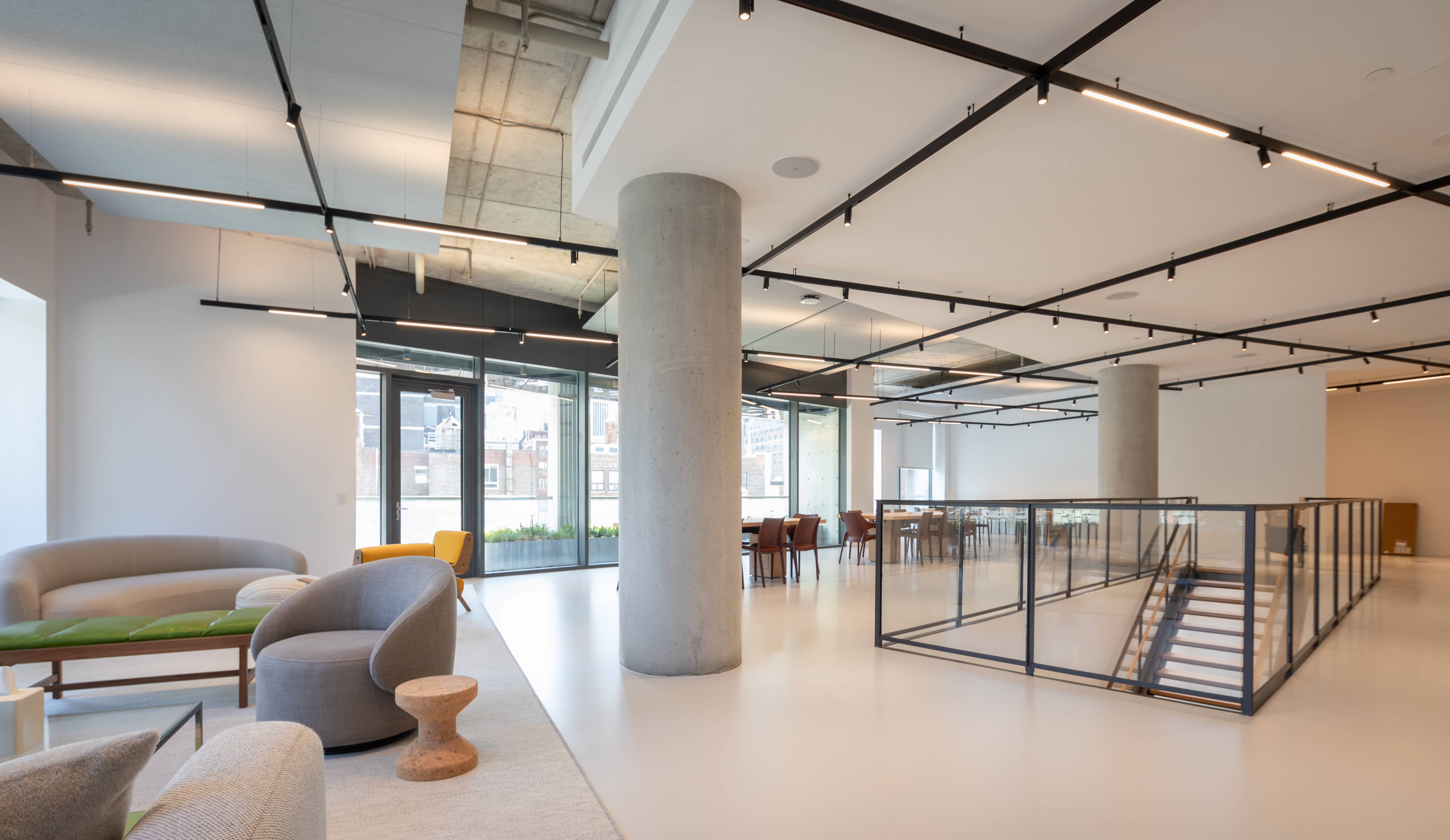 L’Observatoire International worked with Selldorf Architects on a cutting-edge commercial workspace tailored for a leading Entertainment Company Headquarters, renowned for its excellence in film and television production. Set within the vibrant landscape of New York City, this project encompasses approximately 40,000 square ft of interior space spread across 5 office floors, with a central feature staircase that connects each level. L'Observatoire created a modular, structured lighting system that could be adapted across all floors, reconfigured to each of the workspaces; including meeting rooms, a library, dining areas, lounges, a screening room, and work banks for each team. In addition to this, the project includes 3,500 square ft of exterior balcony and terrace space, with seating, lounges and event terrace to allow for a true interior- exterior experience.