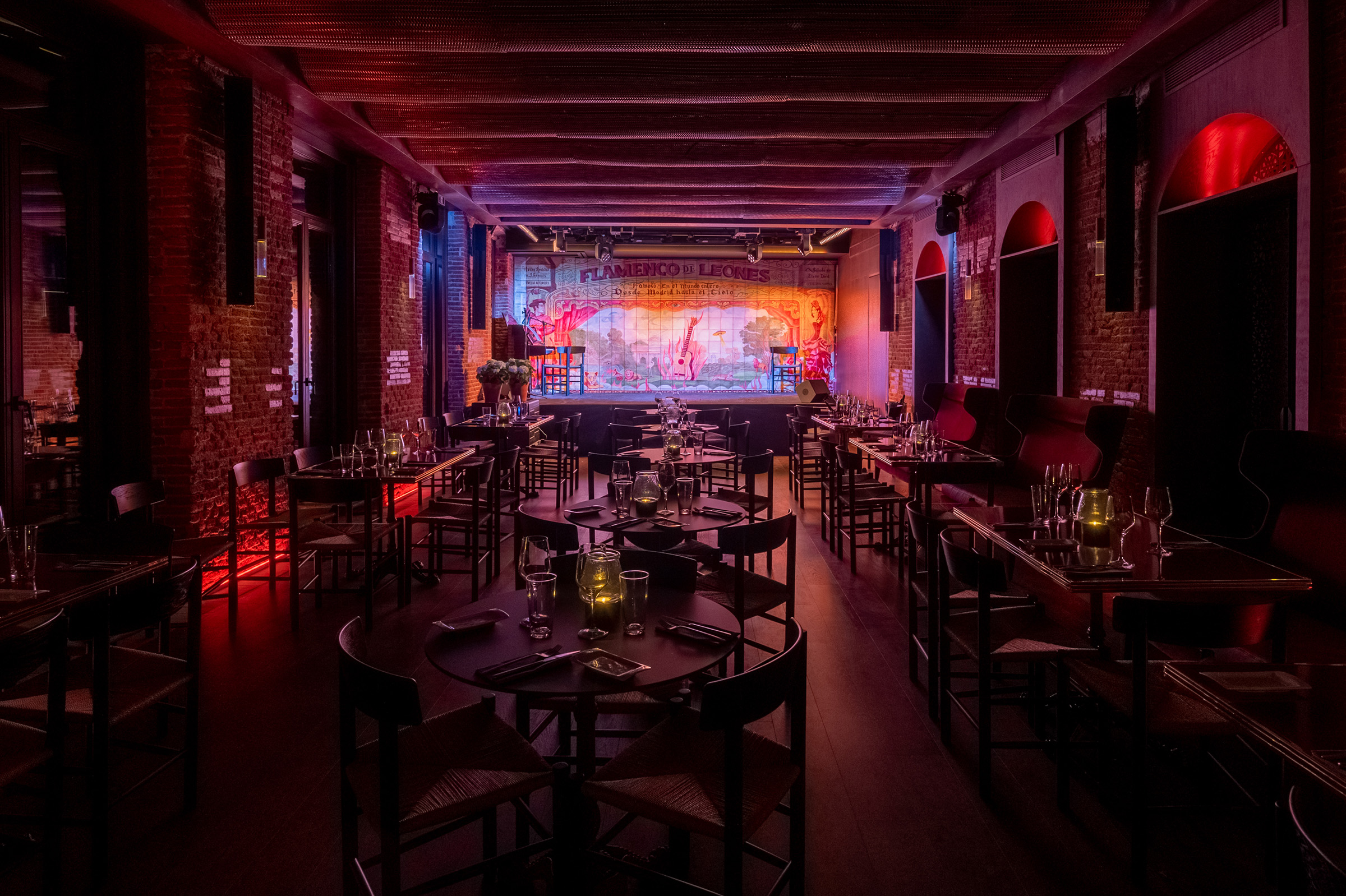 L'Observatoire International has been invited by Ramses to develop the lighting scheme for the new Tablao flamenco, Flamenco de Leones in Madrid, Spain designed by Agence Jouin Manku.