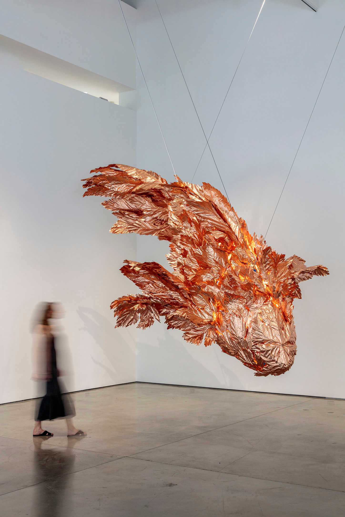 FRANK GEHRY Fish on Fire, 2021 Copper and steel wire 43 x 24 x 24 inches 109.2 x 61 x 61 cm © Frank O. Gehry Photo: Joshua White Courtesy Gagosian