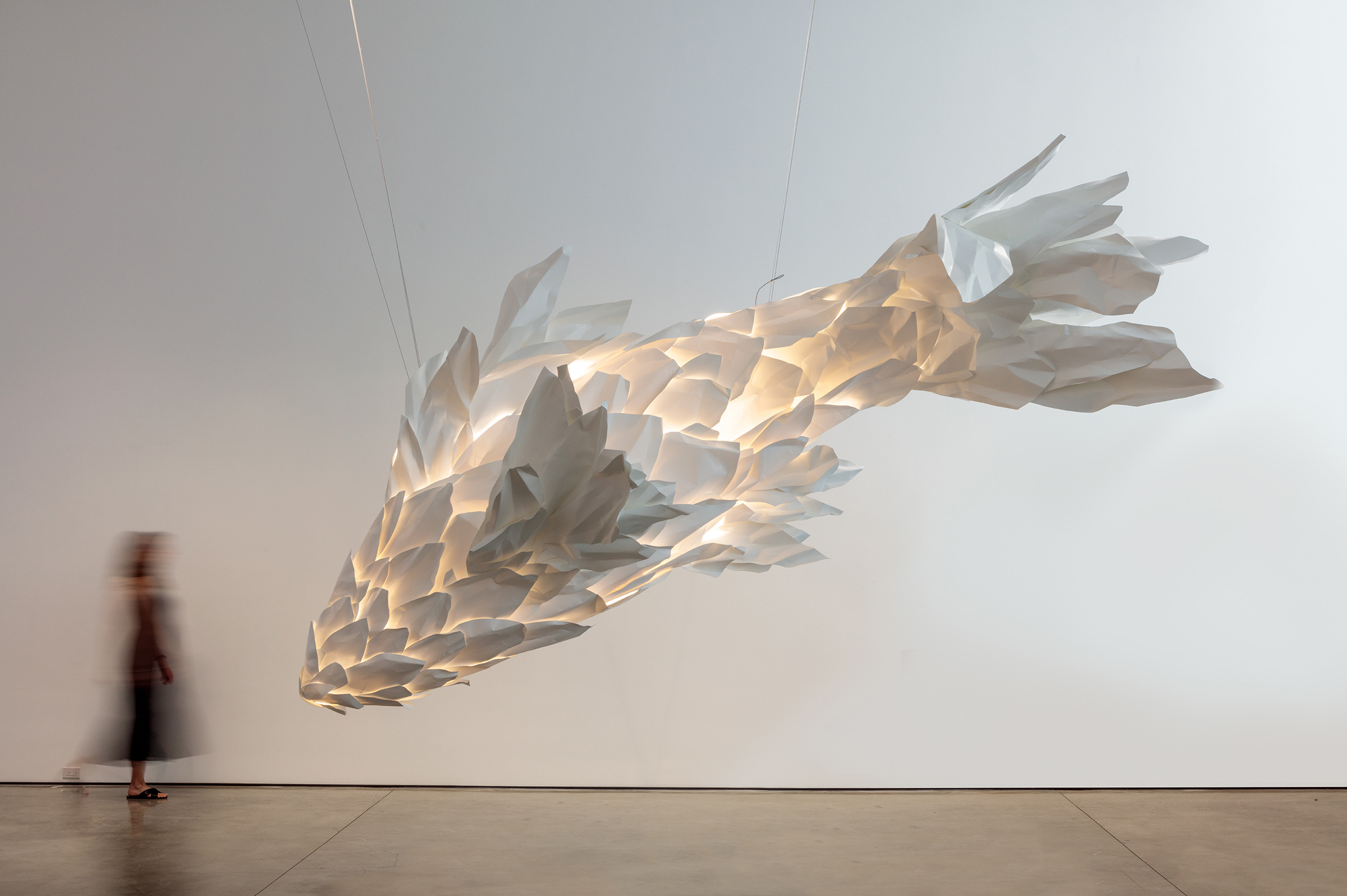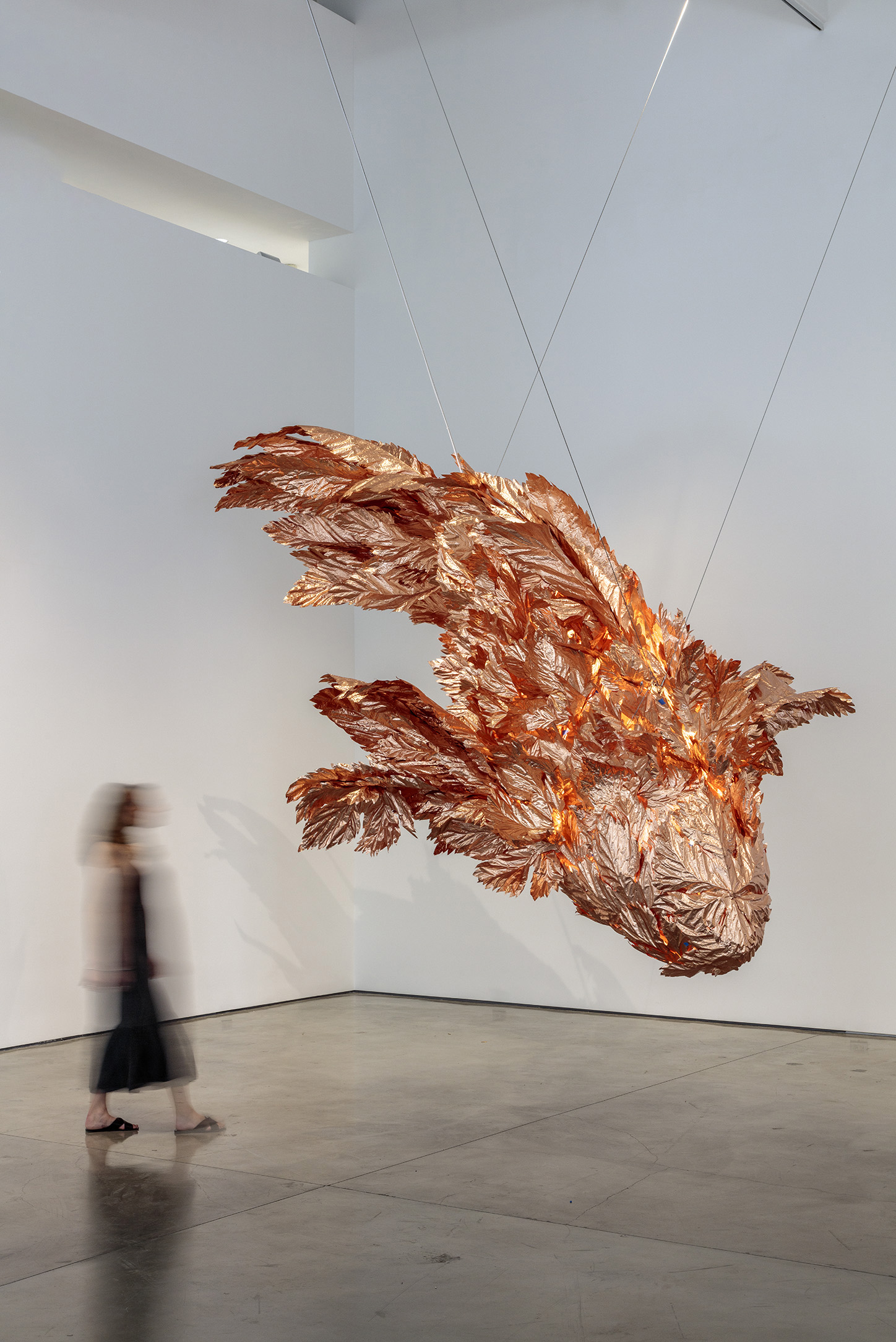 FRANK GEHRY Fish on Fire, 2021 Copper and steel wire 43 x 24 x 24 inches 109.2 x 61 x 61 cm © Frank O. Gehry Photo: Joshua White Courtesy Gagosian