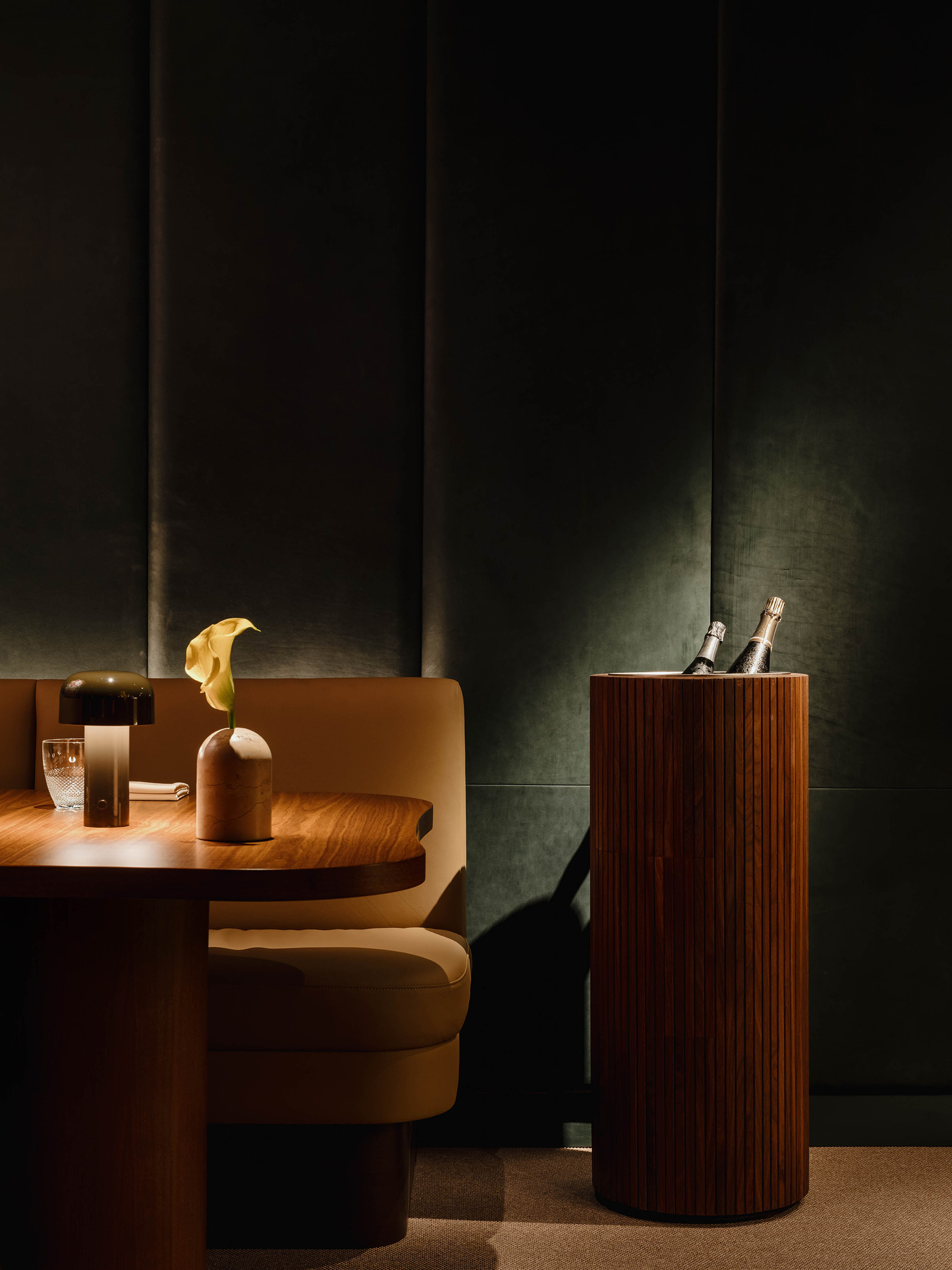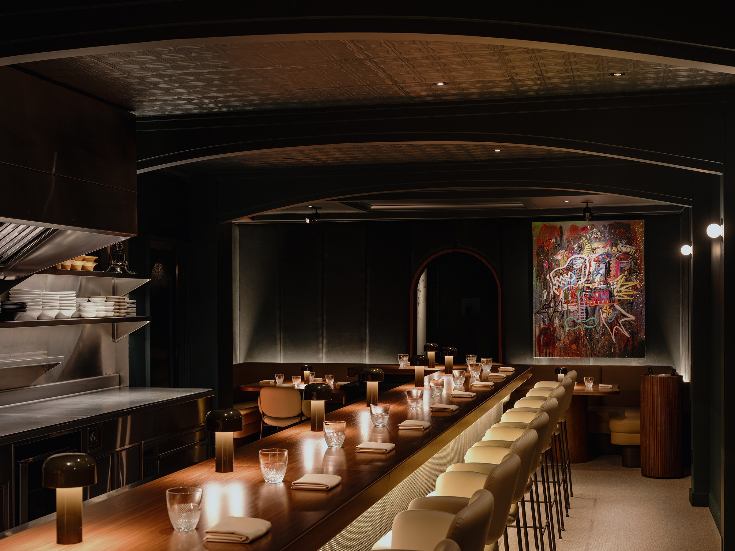 Lighting by L'Observatoire International plays an essential role in enhancing the presence and vibrancy of the interior finishes as well as each dish on every plate.