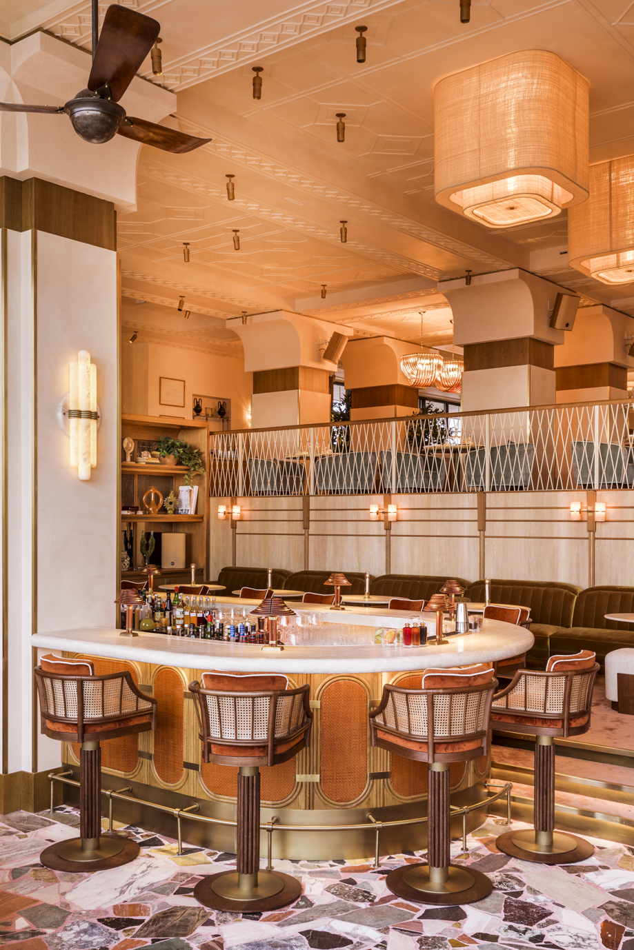 Gigi likes to immerse her guests in the warm refinement of her native country. Under the inspired guidance of Hugo Toro, the string of columns, the lime plaster, the yellow Sienna marble and the Roman travertine create a grandiose décor worthy of a Venetian palace. Here, conviviality is king, yet leaving room for more intimate spaces with a hushed atmosphere. This is where Gigi's talent lies: combining a sense of celebration with a sense of privacy.