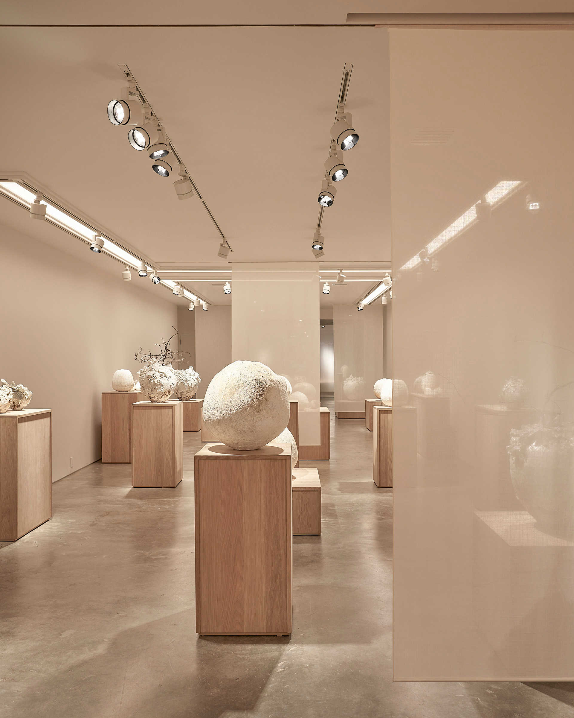 In collaborations with Roman and Williams, it is our take on traditional gallery design with influence from theatrical stage design. At daytime the ceiling integrated light band offers a crisp, daylight effects that activates the narrow and deep space. It is encouraged to ponder deeper into the space, discovering more objects that typically contain profound stories about nature, culture, domesticity and craft. As the day progresses, little by little, the space and light transform to create a dimmed ambience with focus on the objects, offering a meditative experience that is in contrast with the surrounding Canal street.