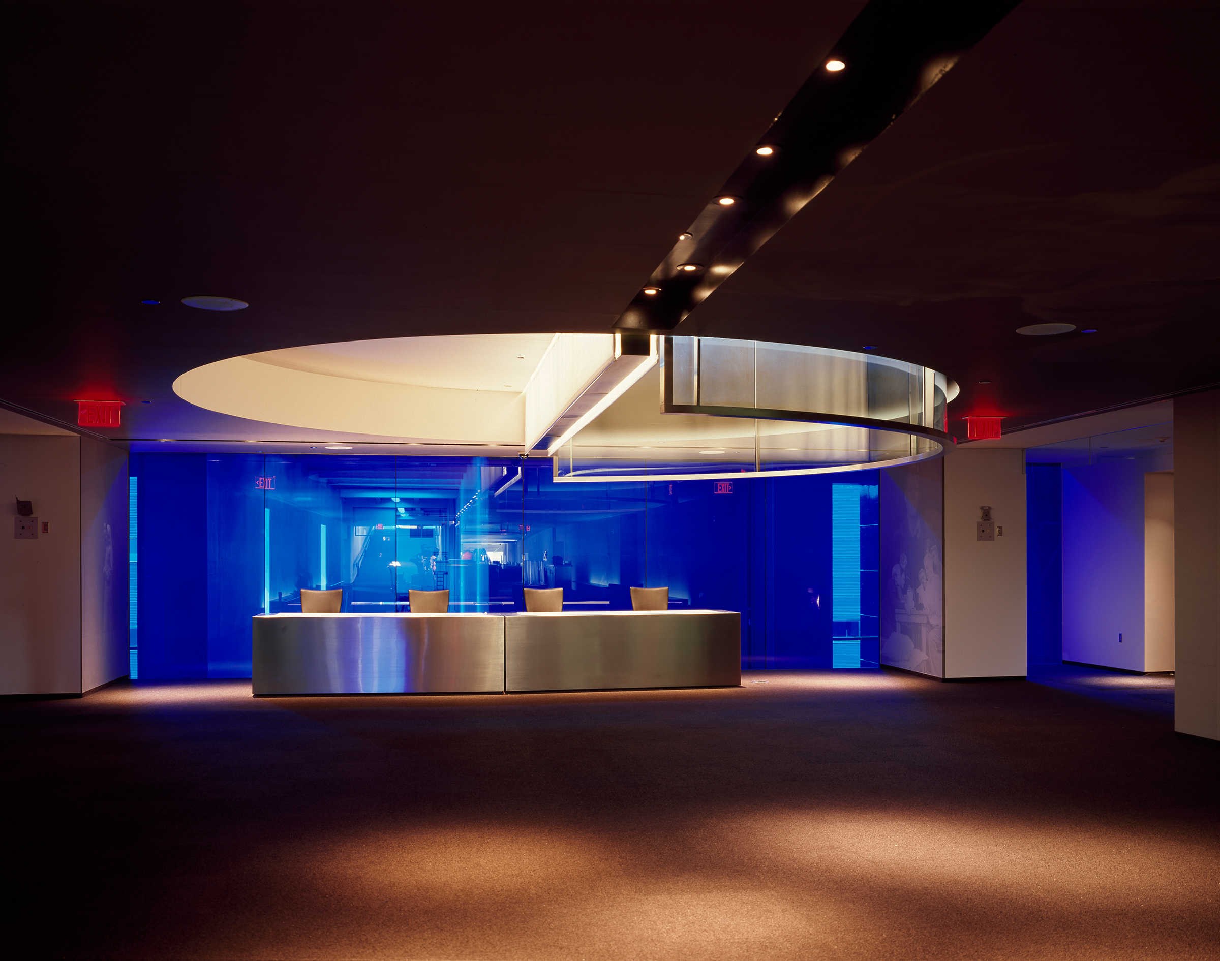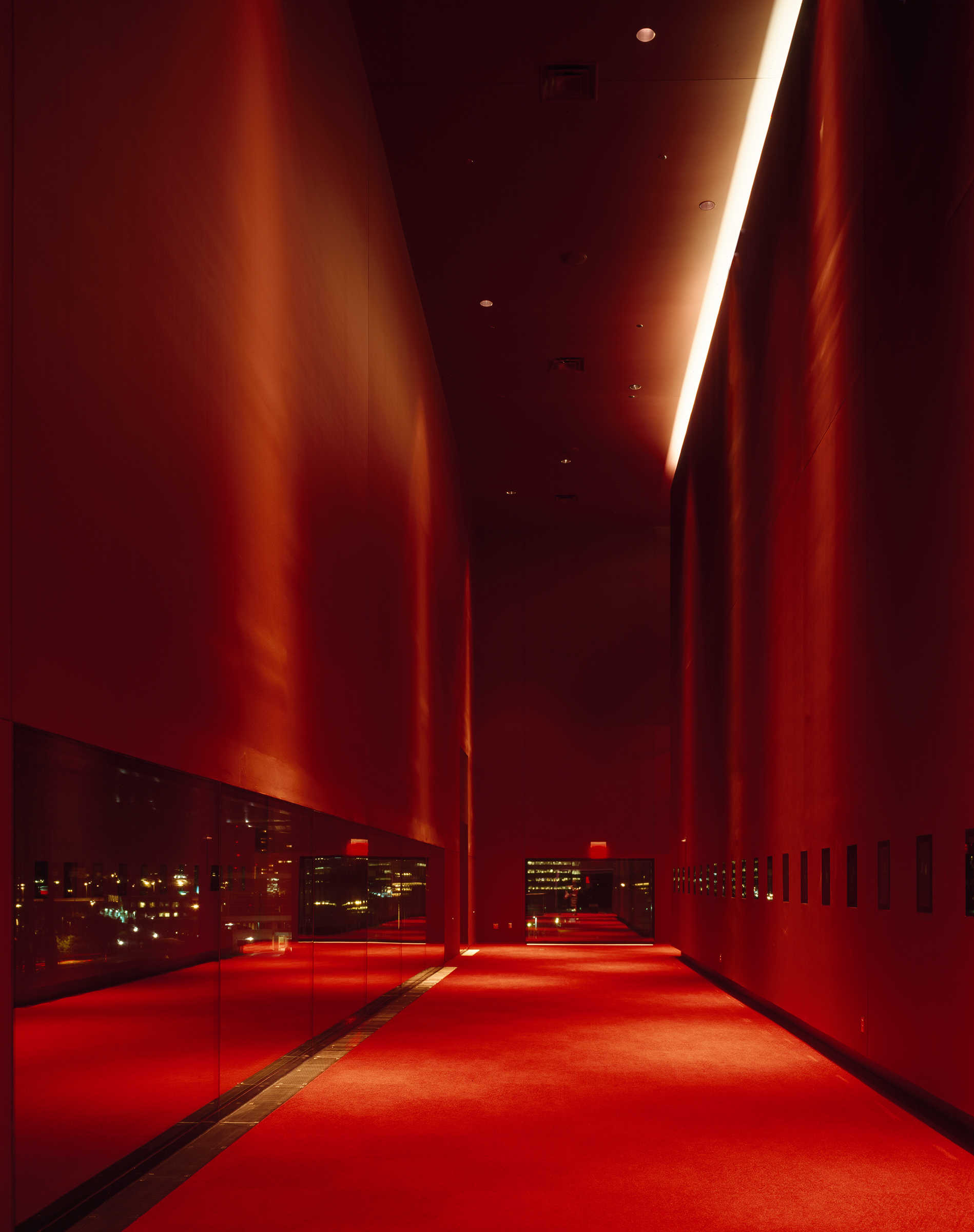 The 275,000-square-foot building housing the Guthrie Theater contains three performance spaces: a 1,100-seat thrust theater, a 700-seat proscenium theater, and a 250-seat studio and experimental theater. The lighting respects architect Jean Nouvel’s mysterious space, comprised of many layers of darkness and depth. There is a progression of darkness from the relatively bright lobby to the darker proscenium to the dark theater.