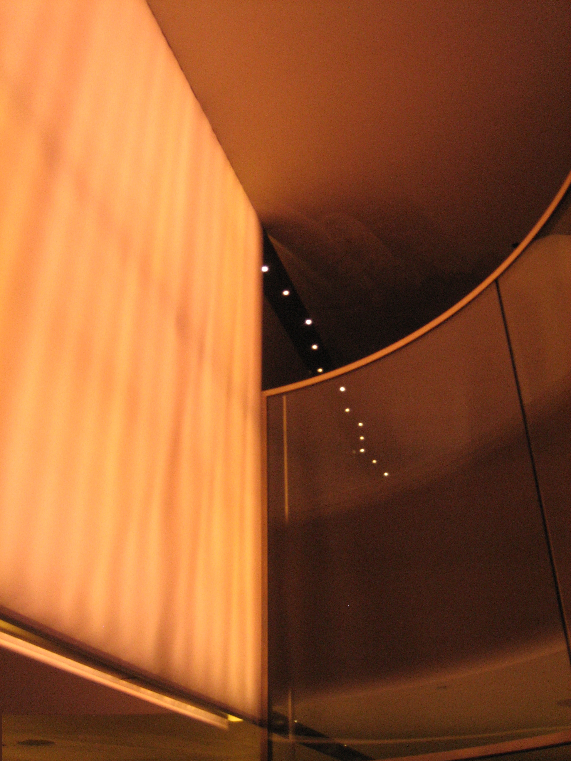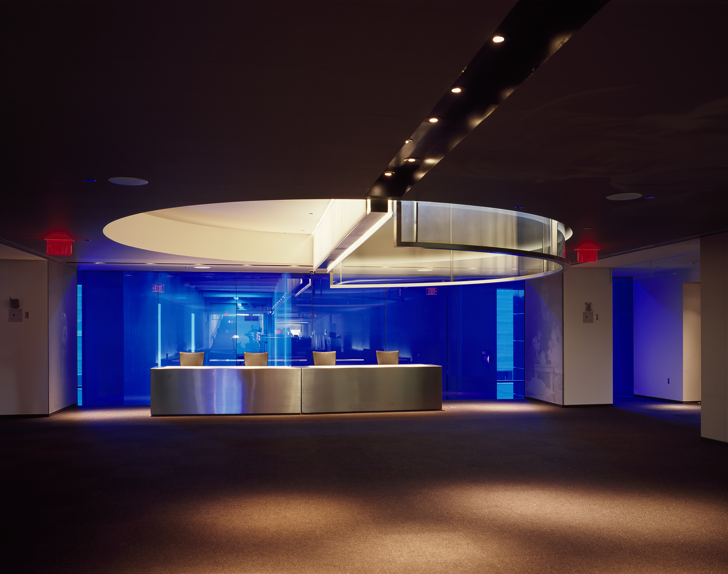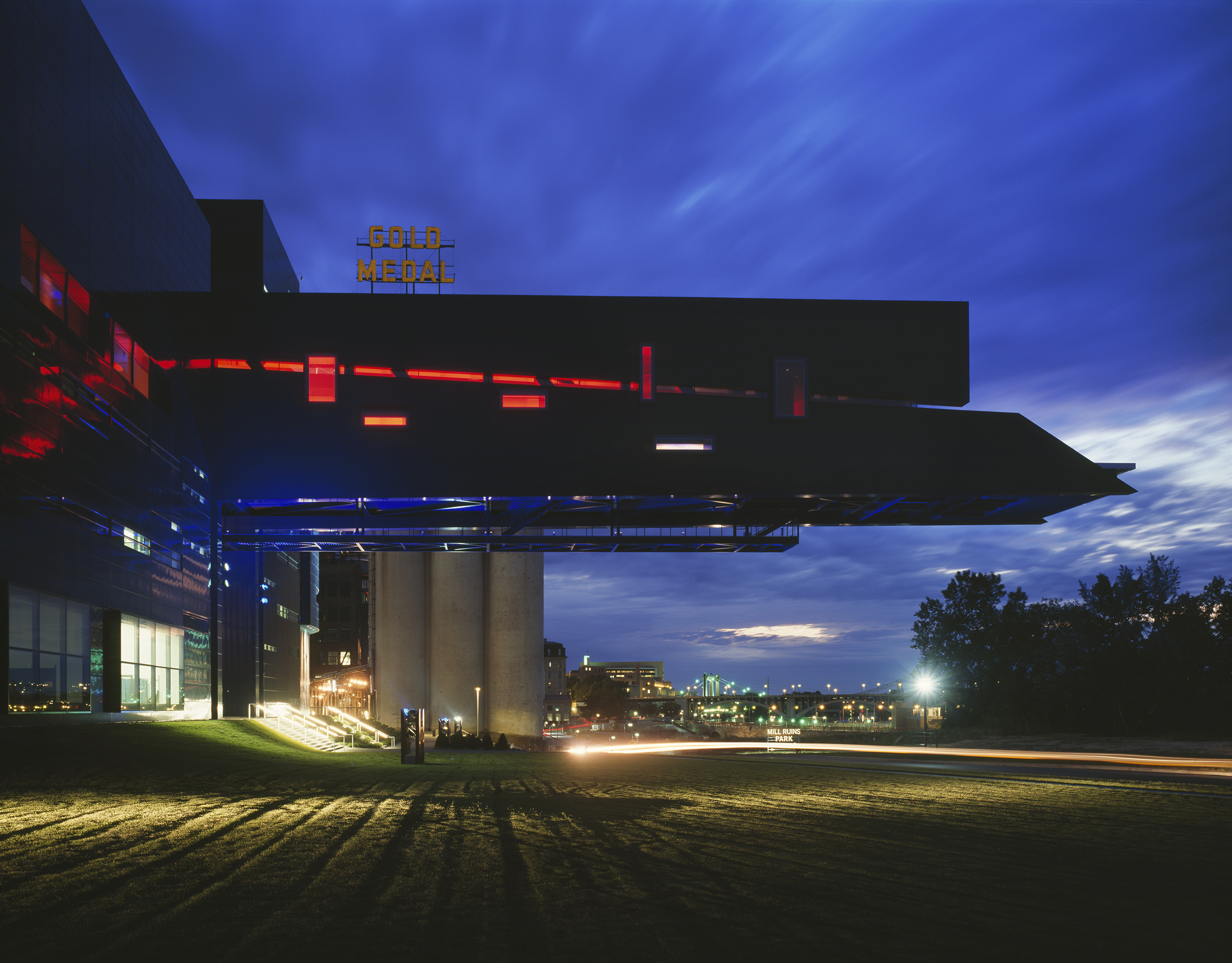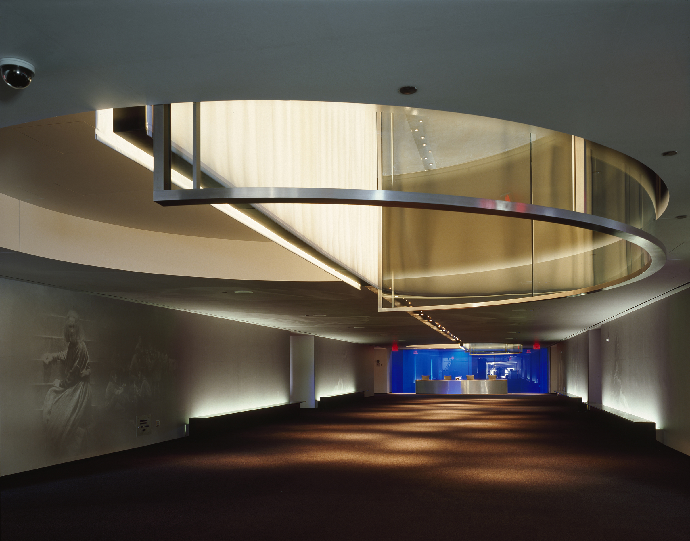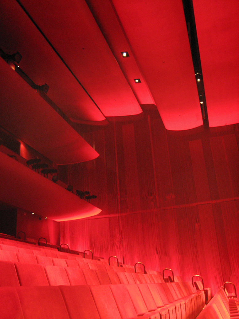 The 275,000-square-foot building housing the Guthrie Theater contains three performance spaces: a 1,100-seat thrust theater, a 700-seat proscenium theater, and a 250-seat studio and experimental theater. The lighting respects architect Jean Nouvel’s mysterious space, comprised of many layers of darkness and depth. There is a progression of darkness from the relatively bright lobby to the darker proscenium to the dark theater.