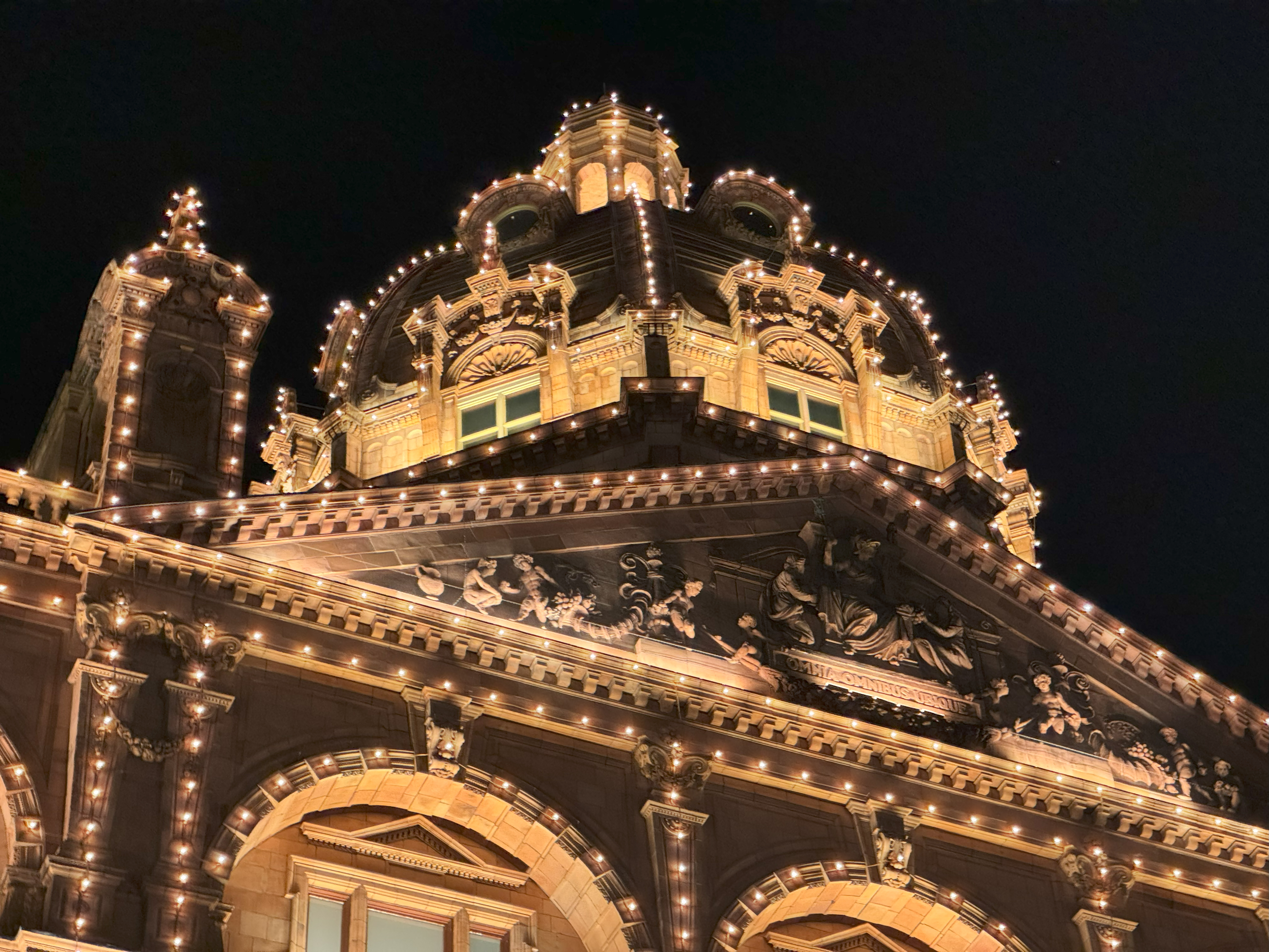 Over time, the 12,000 bulb lights strung across its exterior have become an integral component of the store’s famous façade. However, the original lighting—which was first installed in the 1950s as part of a temporary Christmas installation—only illuminated one part of the building. The temporary display became permanent in the subsequent years, but additions to the installation lacked regard for the lighting’s impact on the entire building, causing the details of an ornate architectural marvel to disappear at night.