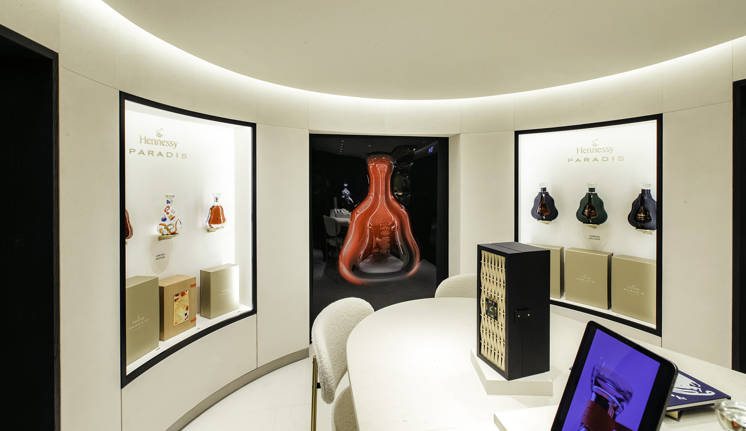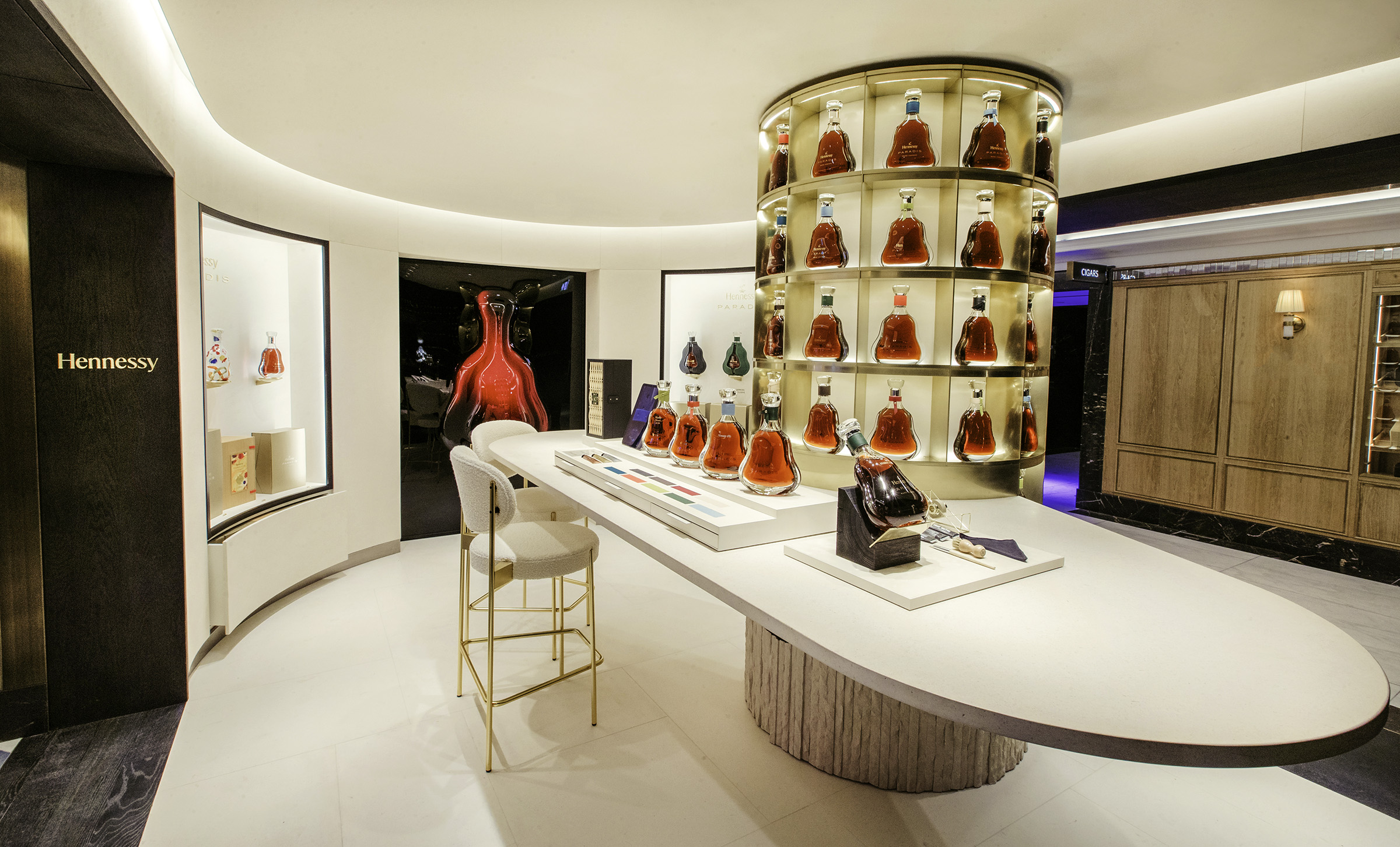 Combined, the layers of light transform a traditional retail space into a modern, high-end gallery showcasing iconic, glowing products, setting the stage for the curated retail experience of Hennessy’s next era.