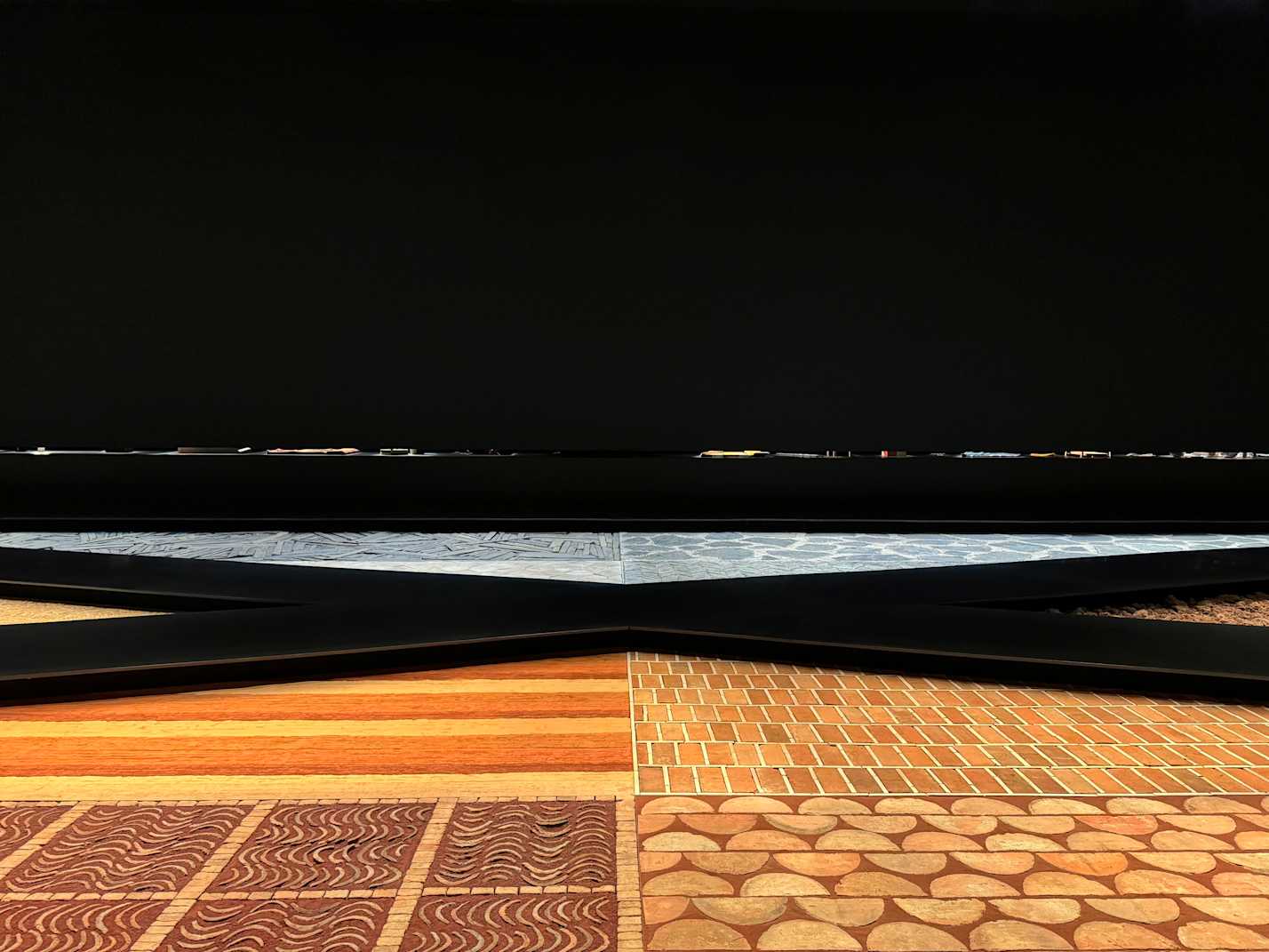 This time the entire space of La Pelota is transformed into a large theater stage where L'Observatoire International makes the gigantic pattern float in time and space, as if the material was illuminated by itself.