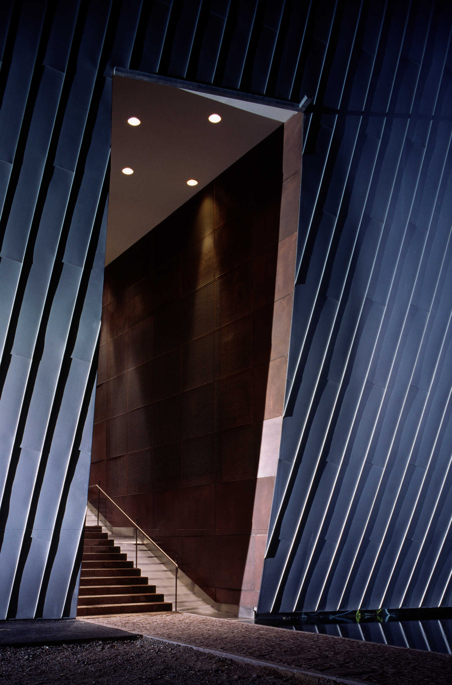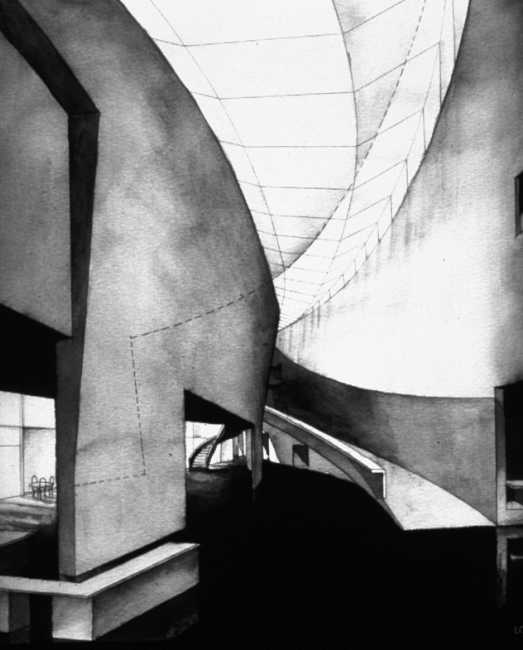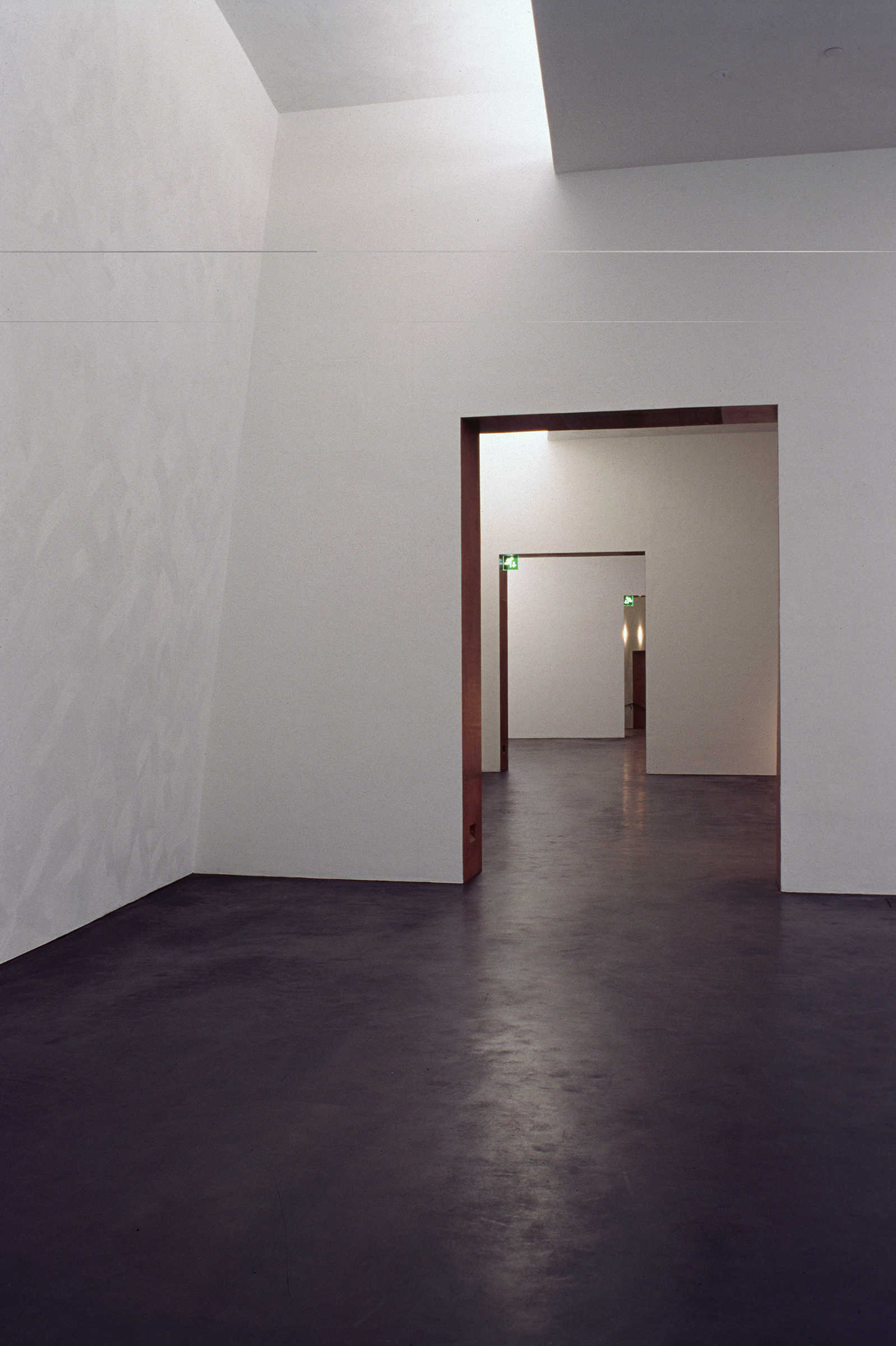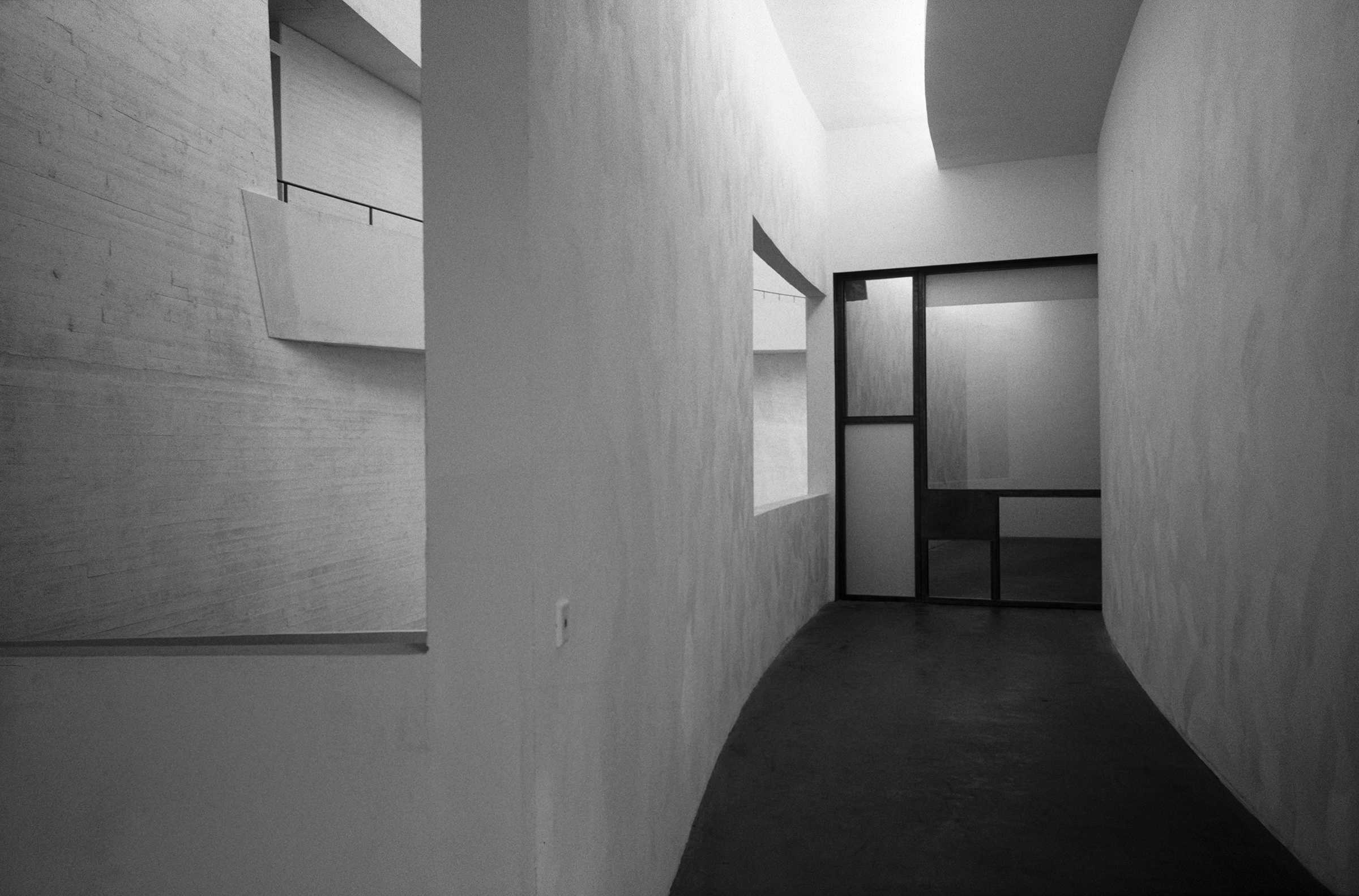 Holl explains that he “considered the range of contemporary artwork and tried to anticipate the needs of a variety of artists, including those whose works depend on a quiet atmosphere to bring out their full intensity.” To maintain this quiet, the galleries had to be free of clutter, meaning most light fixtures had to be hidden in the architecture. Light pockets in the ceiling provide uniform wall illumination, and the ambient light in the gallery spaces achieves a general lighting of the neutral walls with an imperceptible light source. The artificial lighting was designed to blend with and complement the daylighting without being obtrusive. A few removable spots were placed in strategic locations not just to allow not flexibility for lighting temporary exhibits but also to create accentuated contrasts and add relief. In the public spaces, visible lighting fixtures were employed to offer a contrast with the objectless lighting in the galleries.