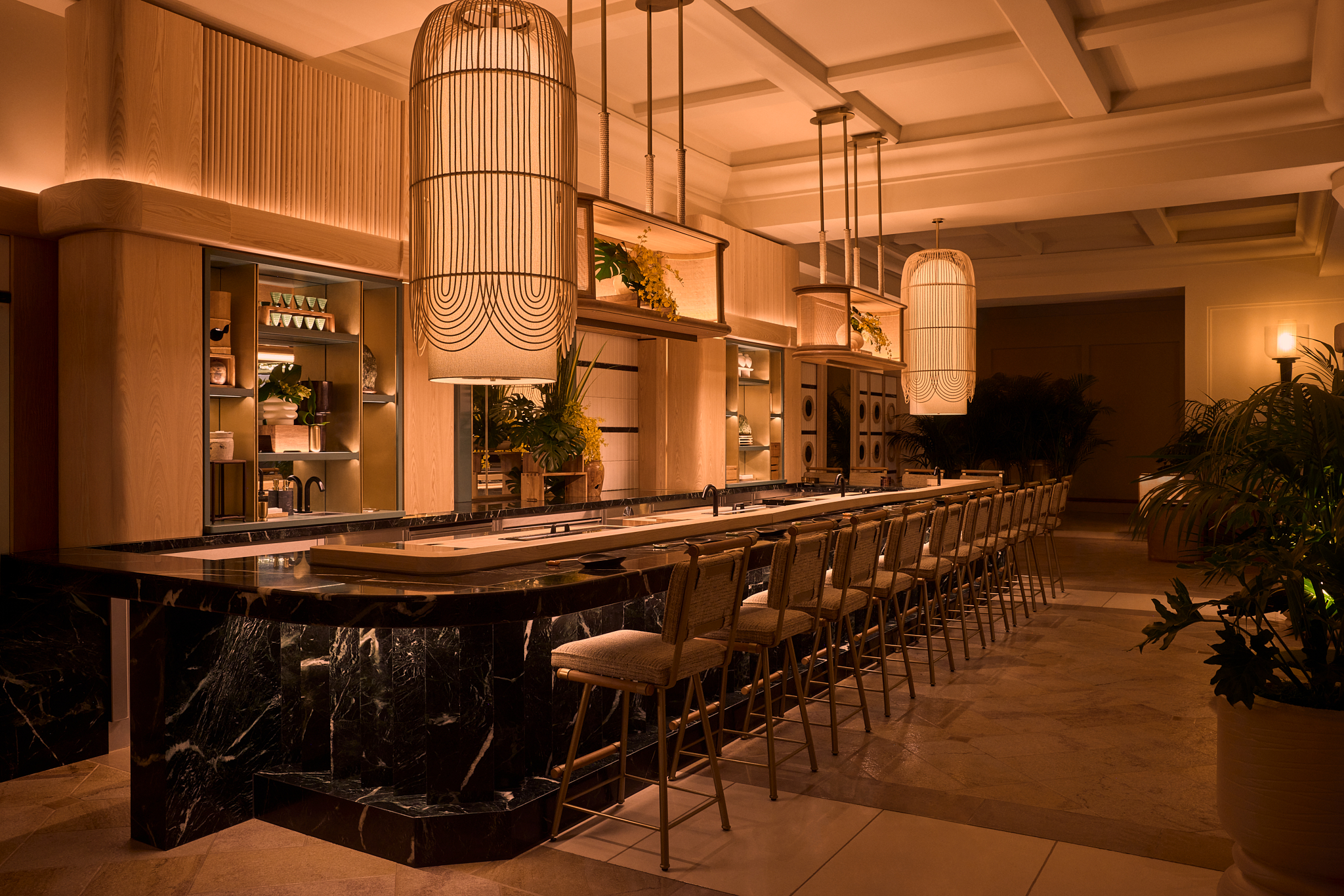 At the heart of the Four Seasons Resort Maui at Wailea, the redesigned Komo Restaurant brings new energy to its iconic setting. With all light sources fully integrated and concealed, the lighting transitions seamlessly between day and night, evoking the warmth of an extended sunset and golden magic hour. The new sushi bar, meticulously detailed by Atelier Pond, becomes a focal point of the renovation, breathing new life into the existing fountain and lobby. Thoughtfully designed illumination enhances the depth and richness of materials, while a subtle layer of lighting in the planters casts textured shadows on the ceiling, connecting the space to its lush surroundings.