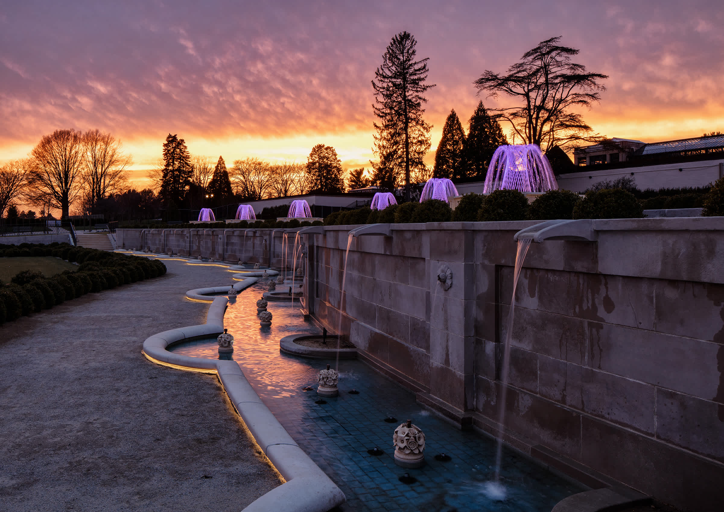 Longwood Gardens is one of the premier horticultural display gardens in the United States, comprising 1,077 acres of gardens, woodlands, and meadows in Kennett Square, Pennsylvania. The celebrated public garden is open year round for visitors to enjoy exotic plants and horticulture, events and performances, seasonal and themed attractions, as well as educational lectures, courses and workshops.