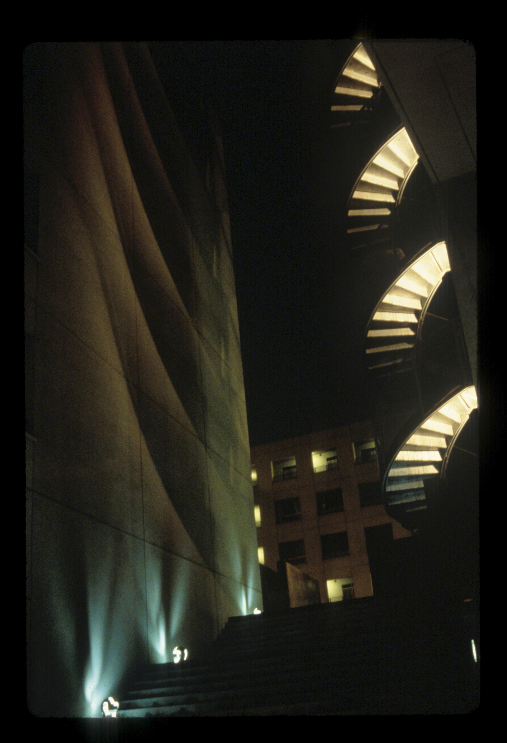This is a residential complex in a recently developed area on the rim of Tokyo bay. For the project, light and shadow are emphasized and commingle in both interior and exterior spaces. This effect is created by deflecting light to project shadows onto different surfaces, and by hiding light sources in parts of the architectural body.