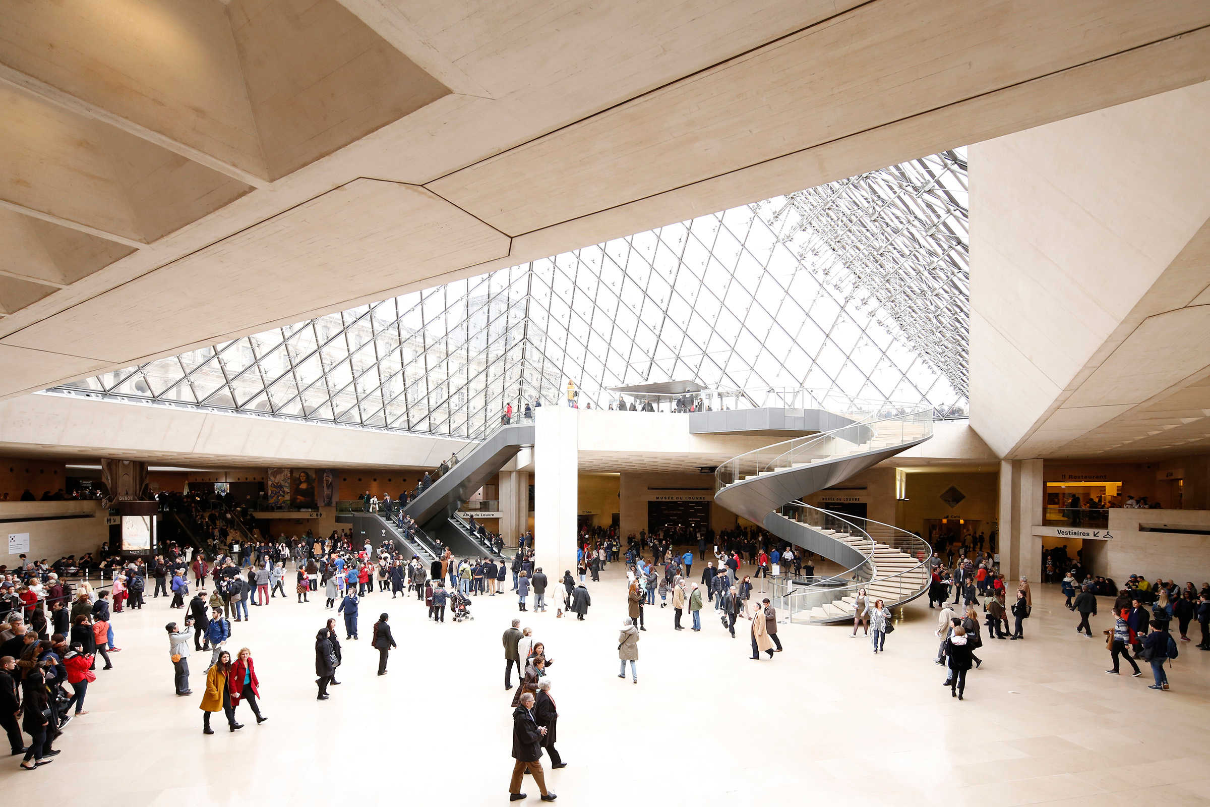 I.M. Pei’s pyramid has become a victim of its own success. Since the Pyramid opened, the Louvre has become a must-see attraction for tourists, and has become the most visited museum in the world. Today the space under the Pyramid is totally dedicated to the logistics of buying museum tickets. It is crowded and noisy, and not at all the spectacular experience that Pei had intended. It is a very difficult place to work, and personnel really suffer from the environment. The Pyramid Project is a two-step intervention. First, it is a major restructuration of the infrastructure under the Pyramid, with the creation of a new information desk, ticket office, bookstore, tour bus and visiting group’s reception area, as well as a Resource Center where the public can learn about the museum collections in a new-media environment. Second, it is an interior, graphic, and multi-media design intervention on the scale of the entire palace.