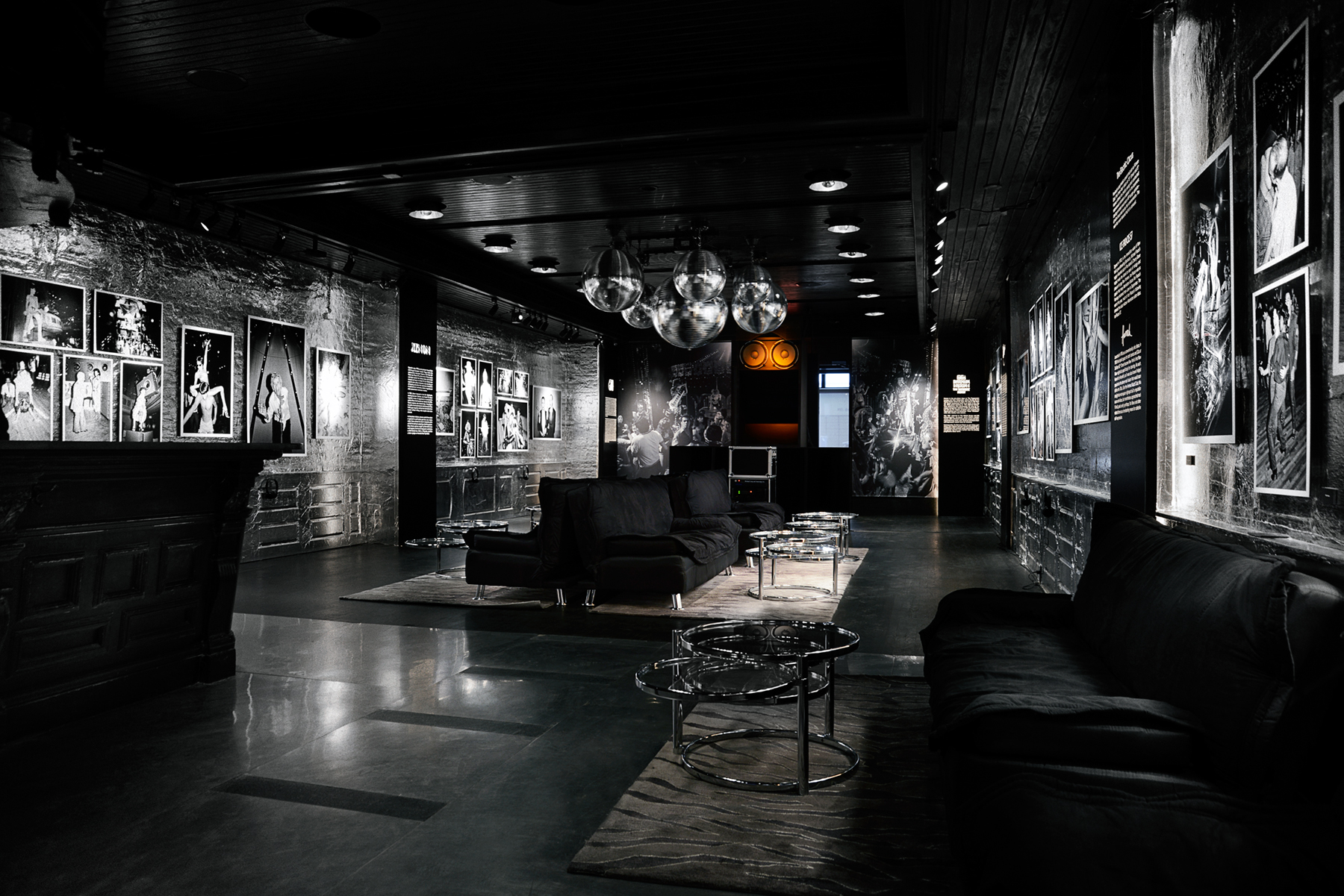 L’Observatoire International developed two separate lighting schemes for the Museum of Sex, an institution which seeks to, “preserve and present the history, evolution and cultural significance of human sexuality.” The first instance, an exhibition titled Night Fever: New York Disco 1977–1979, The Bill Bernstein Photographs, explores the city’s historic nightlife as a reflection of its diverse intersectionality. Inspired by the Studio 54-era clubs and bars, L’Observatoire embraced these references in their design for the museum’s accompanying pop-up disco. Foil covered walls, disco balls, and period appropriate furniture are accompanied by subtle, embedded ceiling lighting with back lit panels displaying more exhibition information, striking a balance between the black couches and chrome ornamentation.