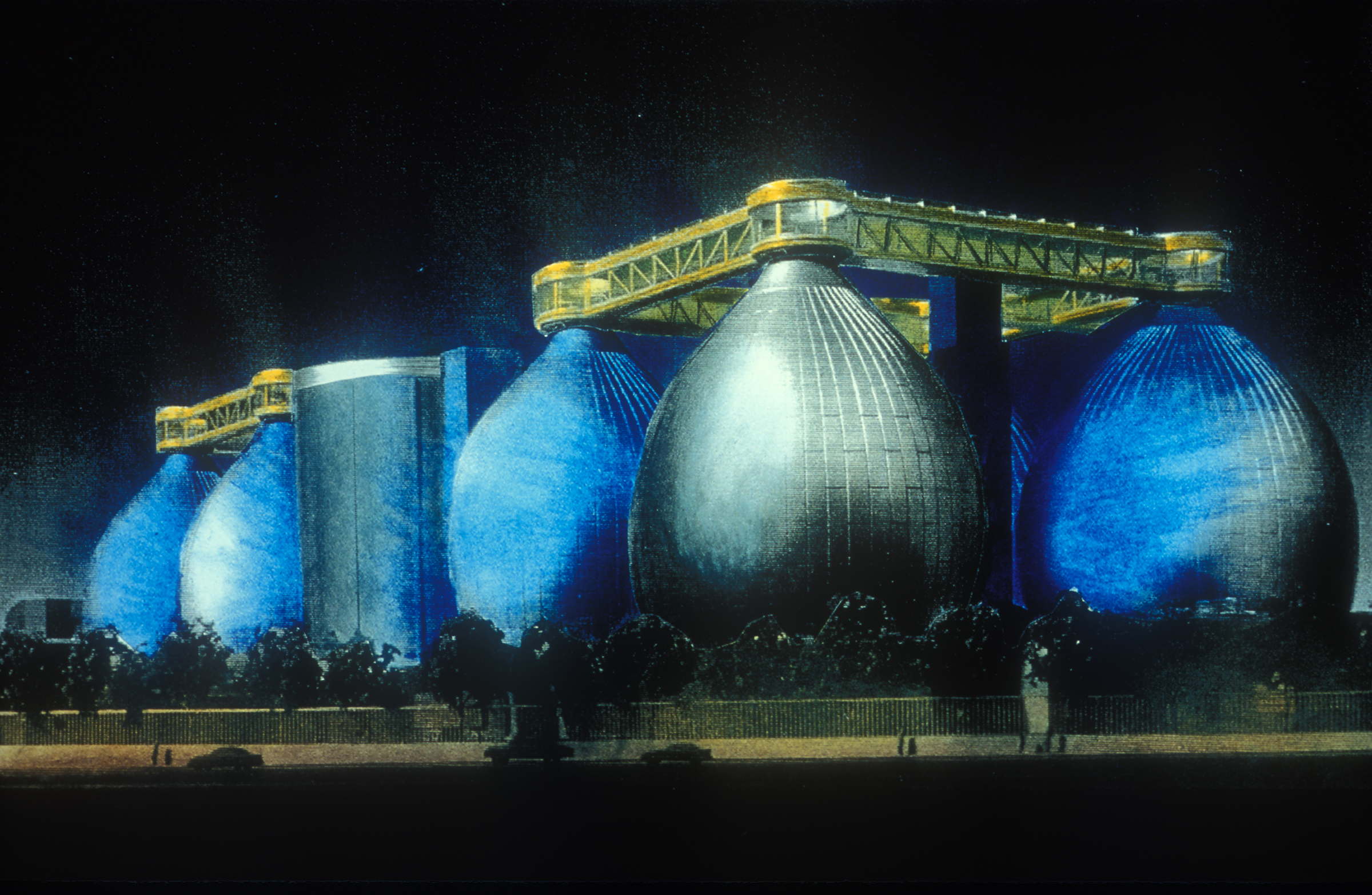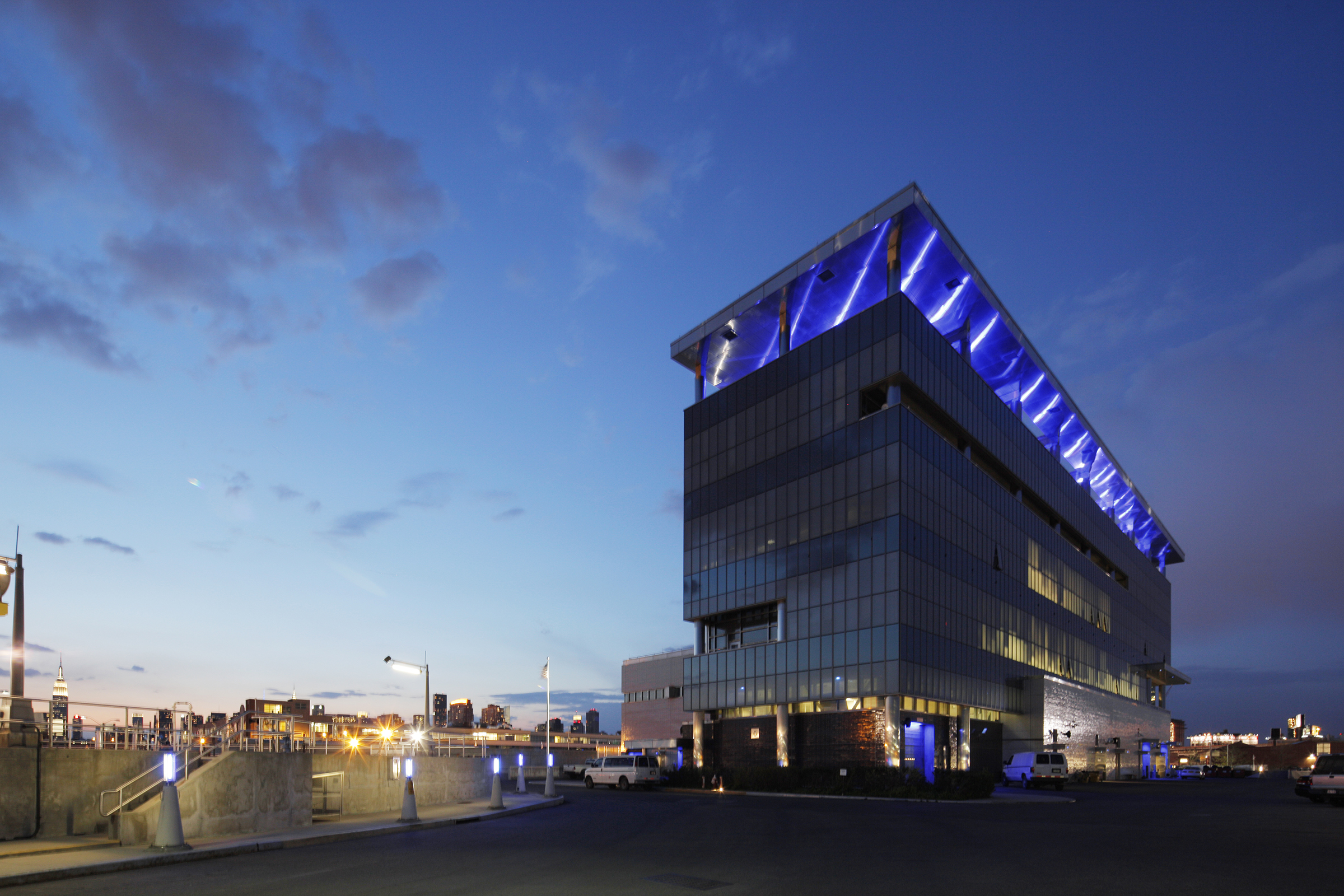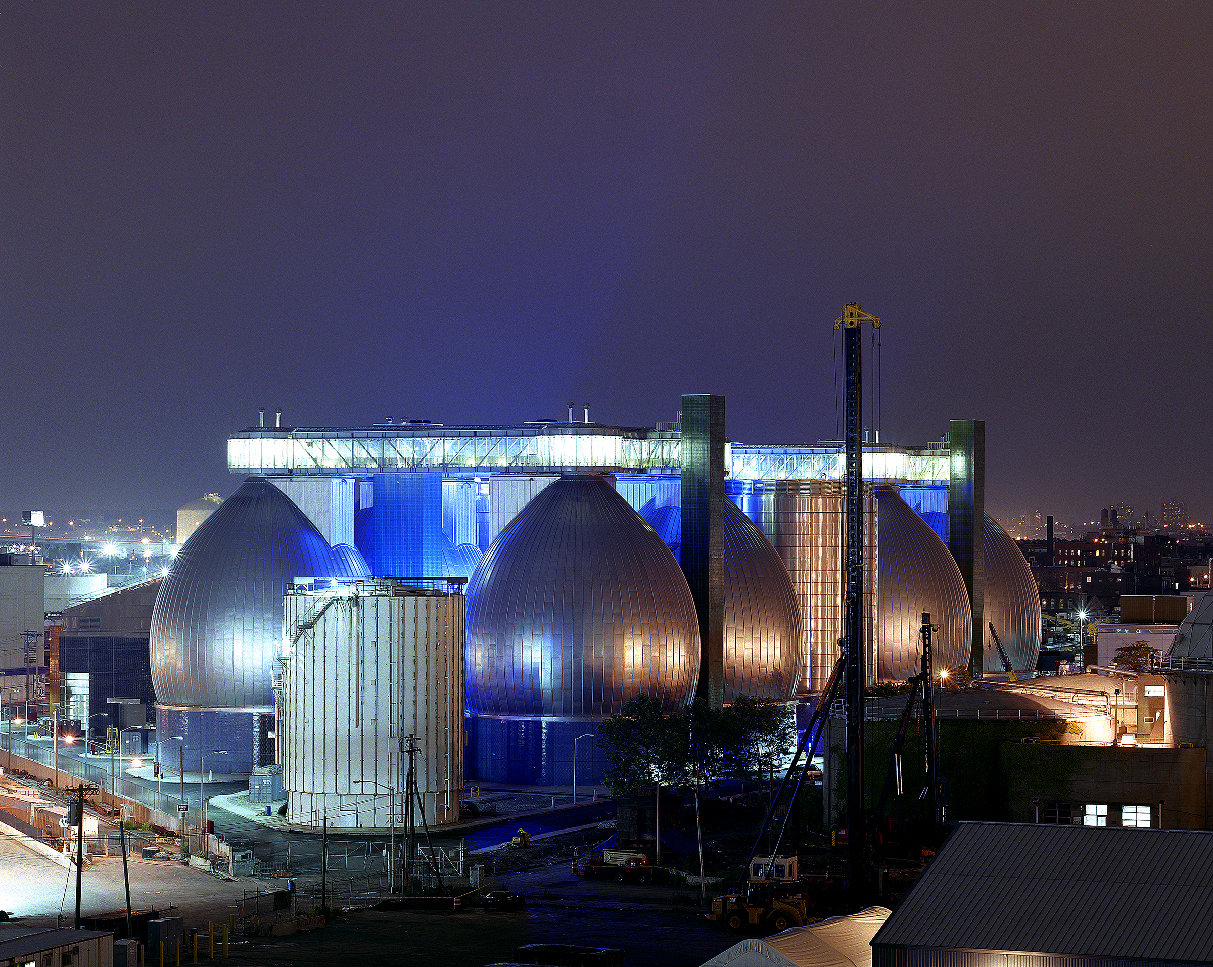 The master plan for this wastewater treatment plant outlined $4.5 billion in new construction over twenty-five years, replacing an outmoded, environmentally unsound facility. Constructed in phases, the plant remains fully operational throughout the process. The design employs building forms, materials, and color, as well as perimeter fencing, aerial walkways and bridges as ordering devices to link the structures into a comprehensible, striking visual composition. Expanses of glass display and demystify the wastewater treatment process and provide natural light in machinery rooms. The need to balance the requirements of a large-scale water pollution control plant with the concerns of the surrounding community was critical. The master plan embraced the community’s desire for waterfront access: a waterfront park at the site was designed in collaboration with the artist and sculptor George Trakas, with provisions for extending the concept all along Newtown Creek as the area develops away from strictly industrial use.