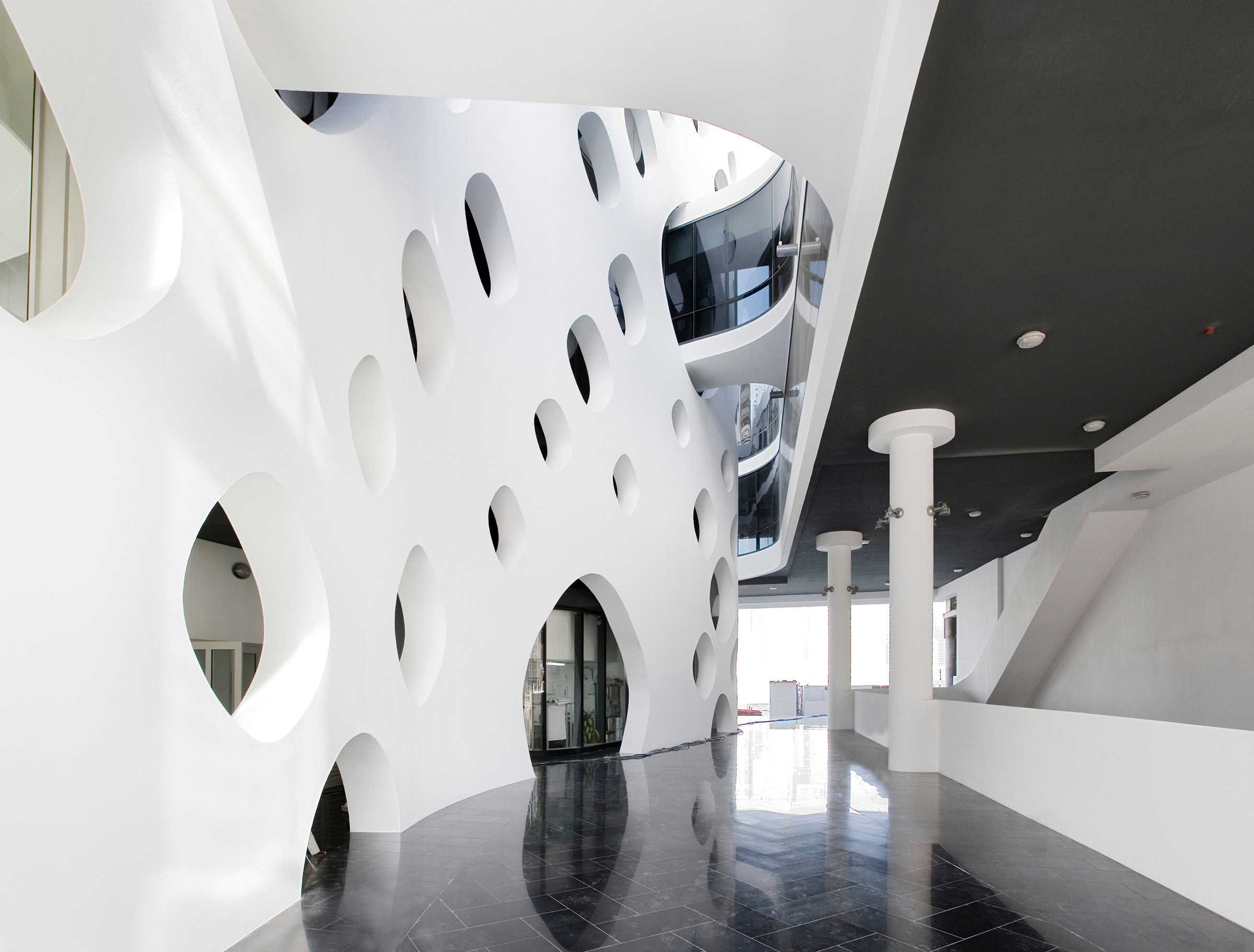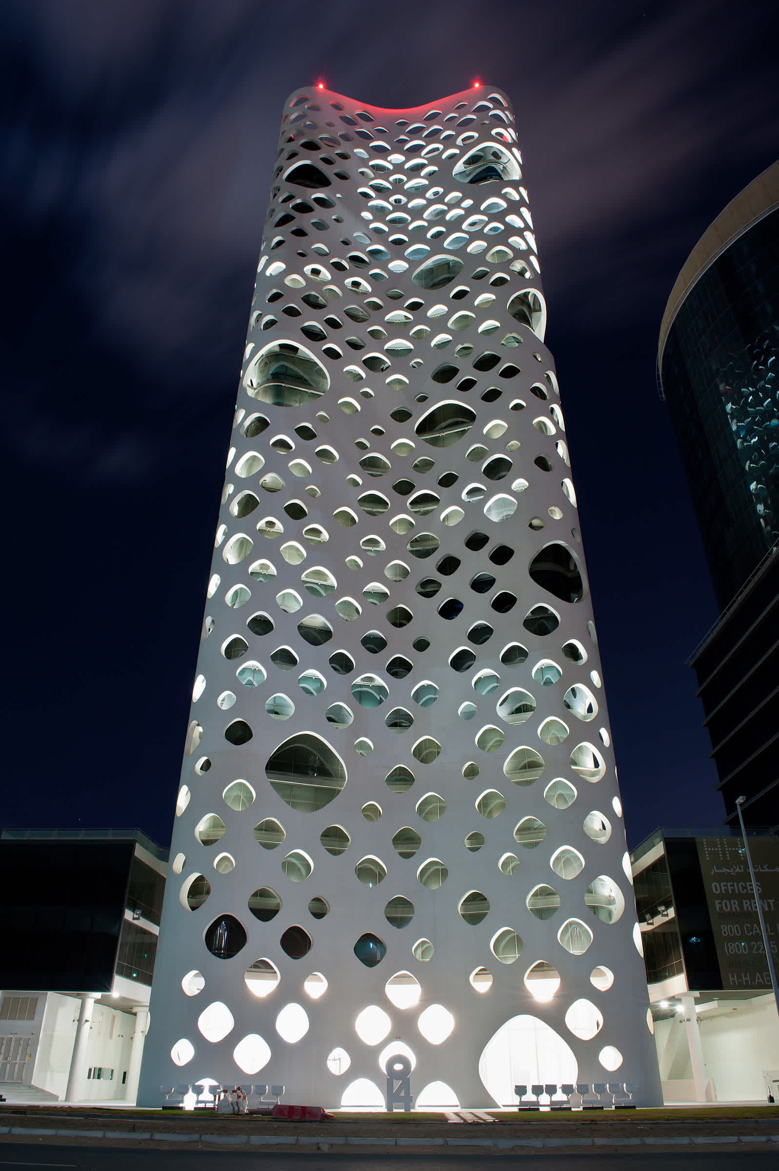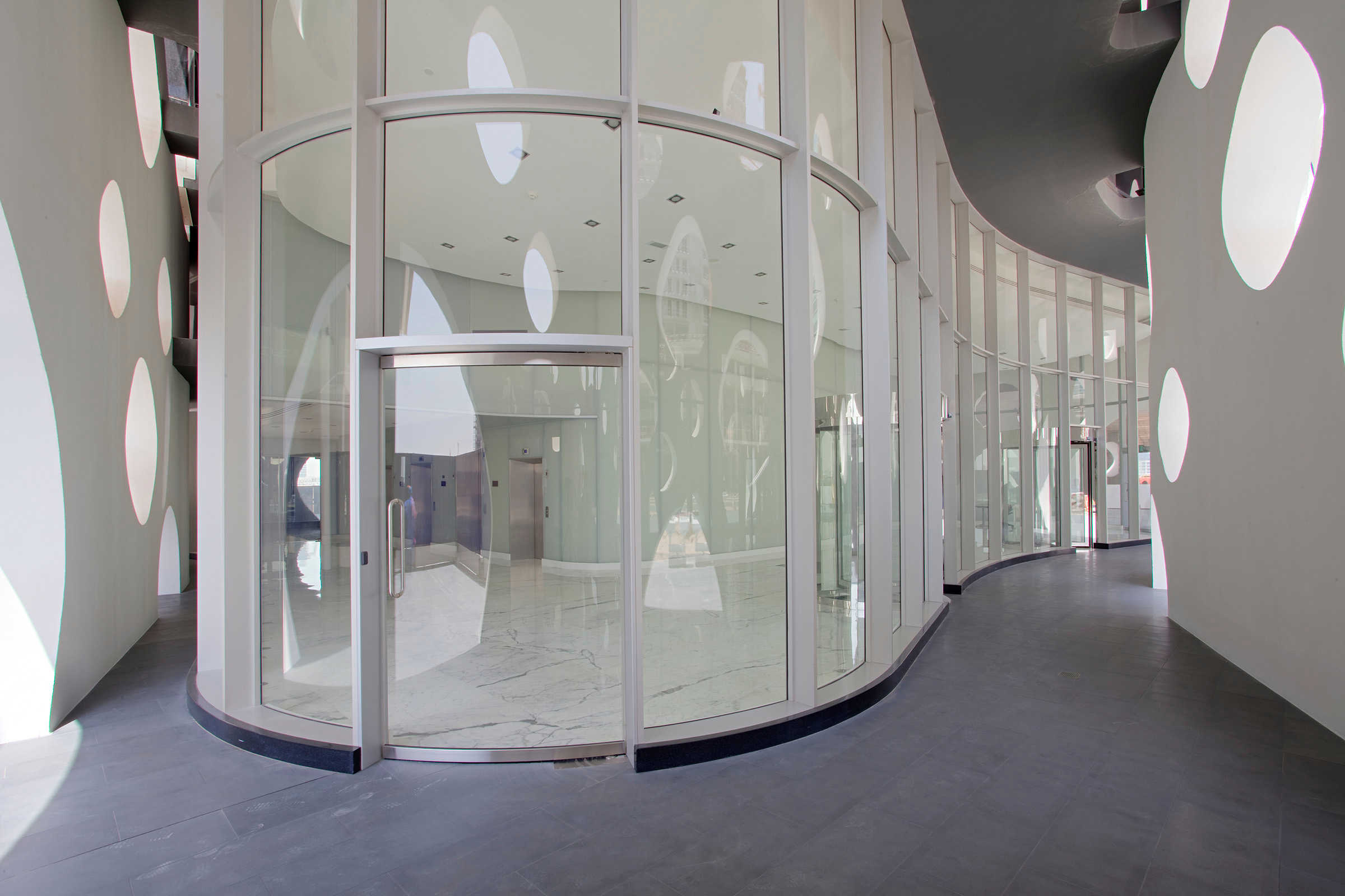 O-14 stands at the heart of business bay. The tower's concrete shell not only is the structure of the building but also creates a lace-like façade open to light, air, and views. 21 stories of custom-designed office floors are carried without the barriers of conventional columns and walls. At ground level, exclusive shops link this site to Business Bay's waterfront esplanade combining high-end shopping eminent culture and popular entertainment. Below grade, four levels of parking provide capacity for over 400 cars.