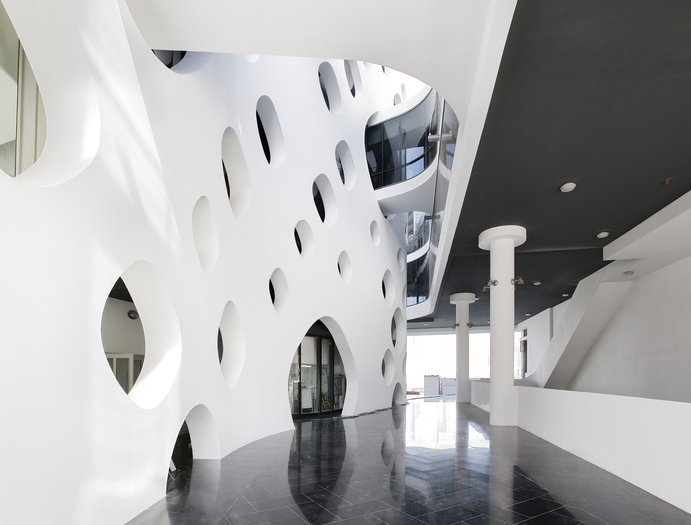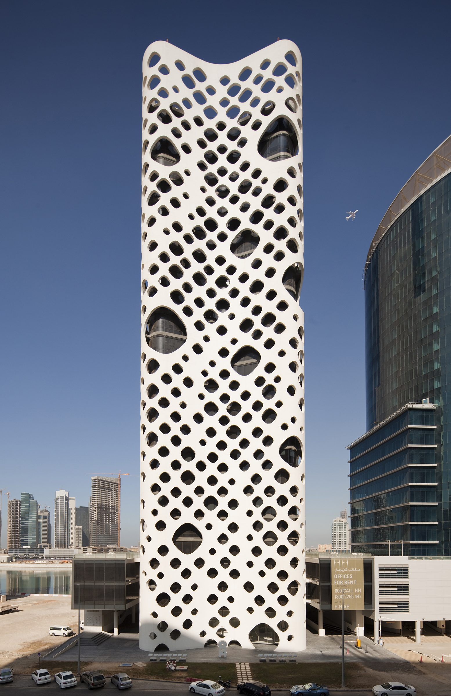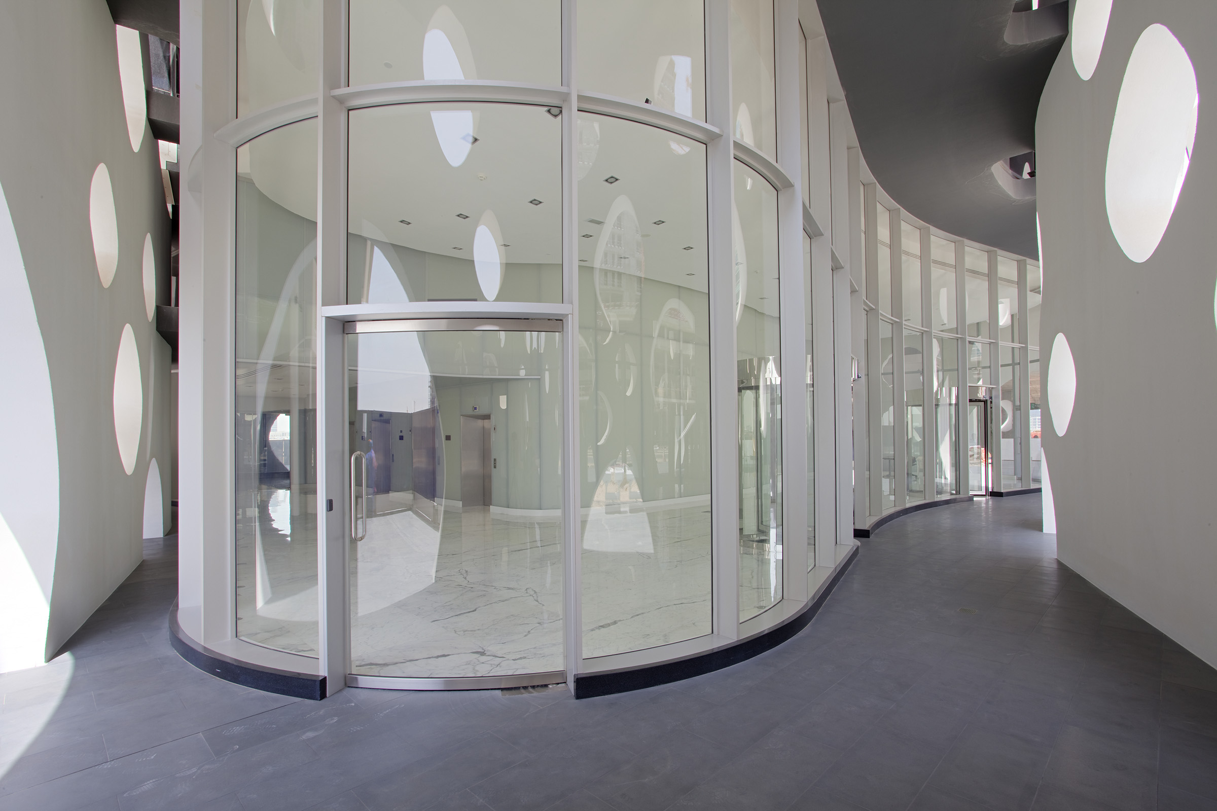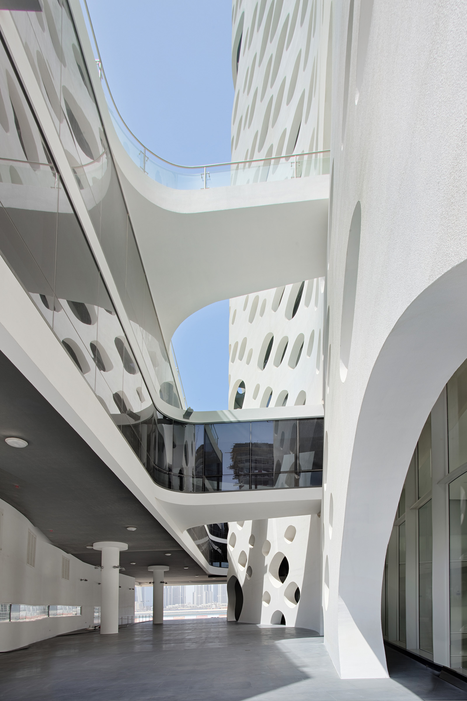 O-14 stands at the heart of business bay. The tower's concrete shell not only is the structure of the building but also creates a lace-like façade open to light, air, and views. 21 stories of custom-designed office floors are carried without the barriers of conventional columns and walls. At ground level, exclusive shops link this site to Business Bay's waterfront esplanade combining high-end shopping eminent culture and popular entertainment. Below grade, four levels of parking provide capacity for over 400 cars.