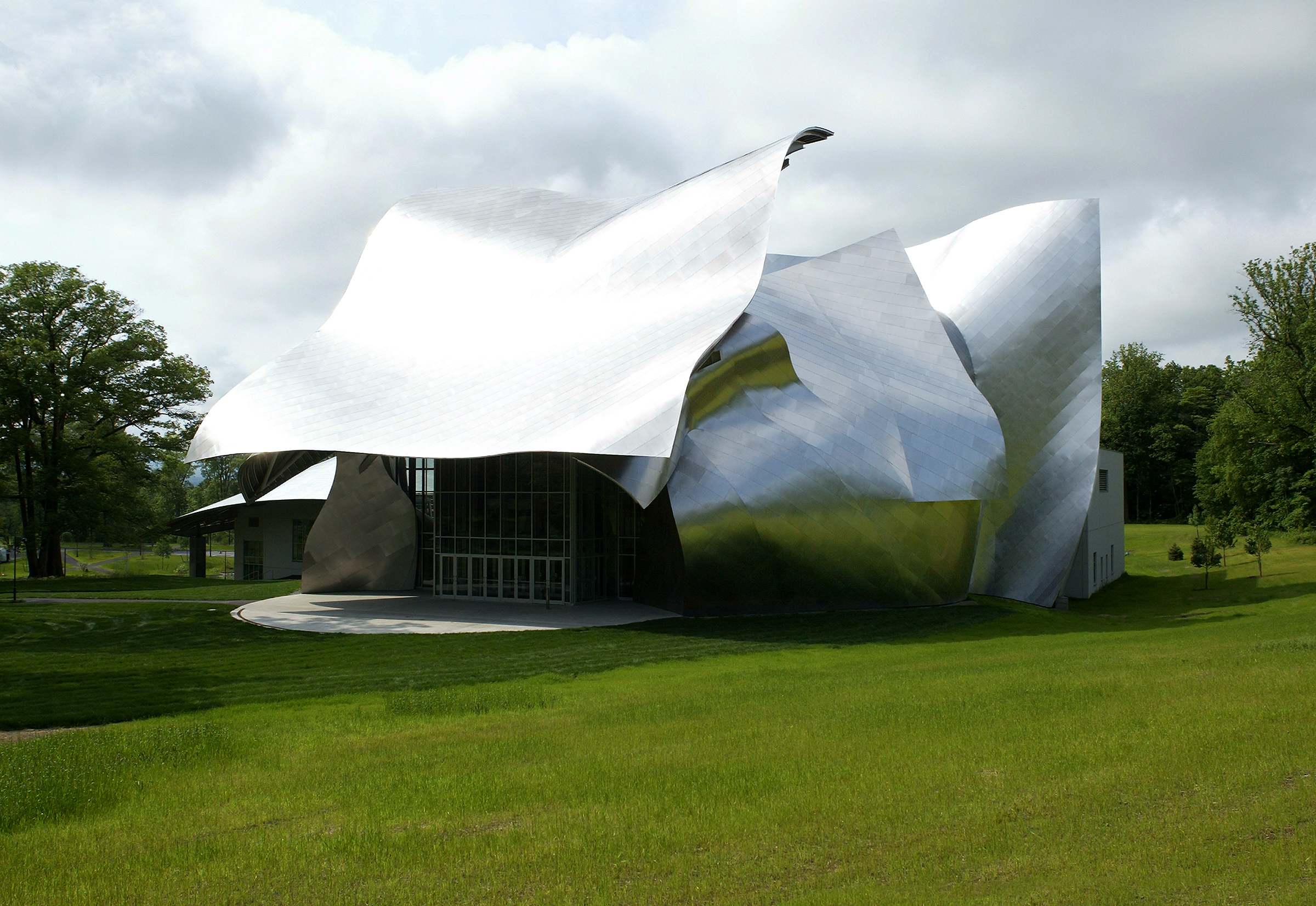 Fisher Center is located on the picturesque campus of Bard College. It houses the larger Sosnoff Theater with eight hundred seats, the smaller Luma Theater with two hundred seats, as well as rehearsal/classroom studios. “The front facade of the building can be interpreted as a theatrical mask that covers the raw face of the performance space. Its abstract forms prepare the visitor to be receptive to experiencing the performances that occur within. In passing through the doors of the building, entering into the building’s lobby, and settling into its theaters, audience members go through a series of transforming experiences that prepare them for the performance about to begin,” explained Frank Gehry and Craig Webb of Gehry Partners, LLP.