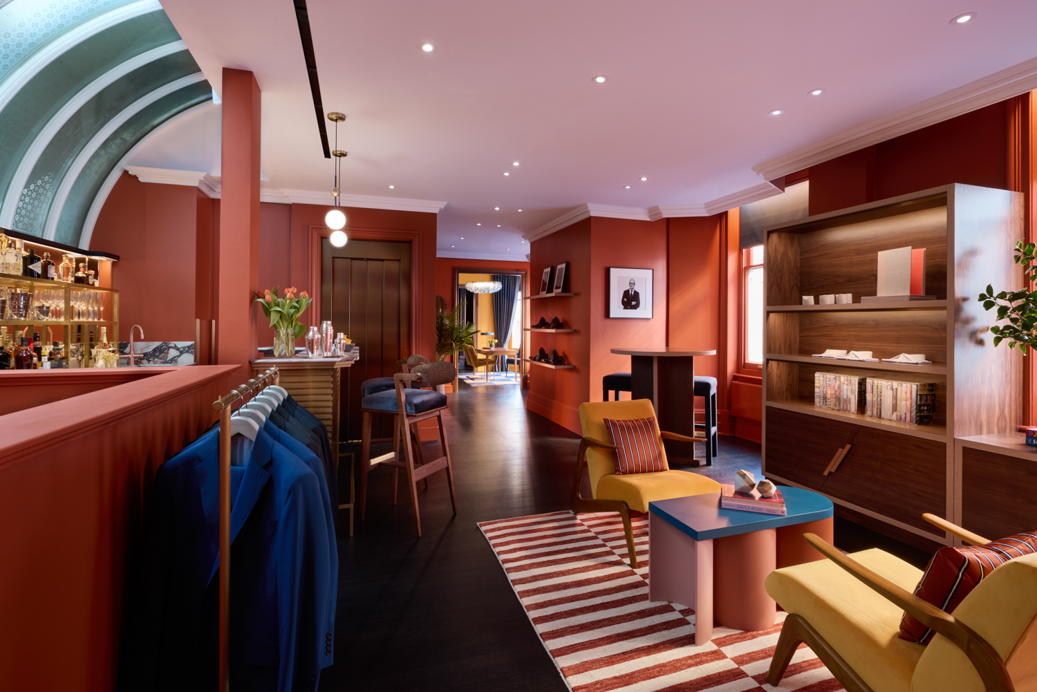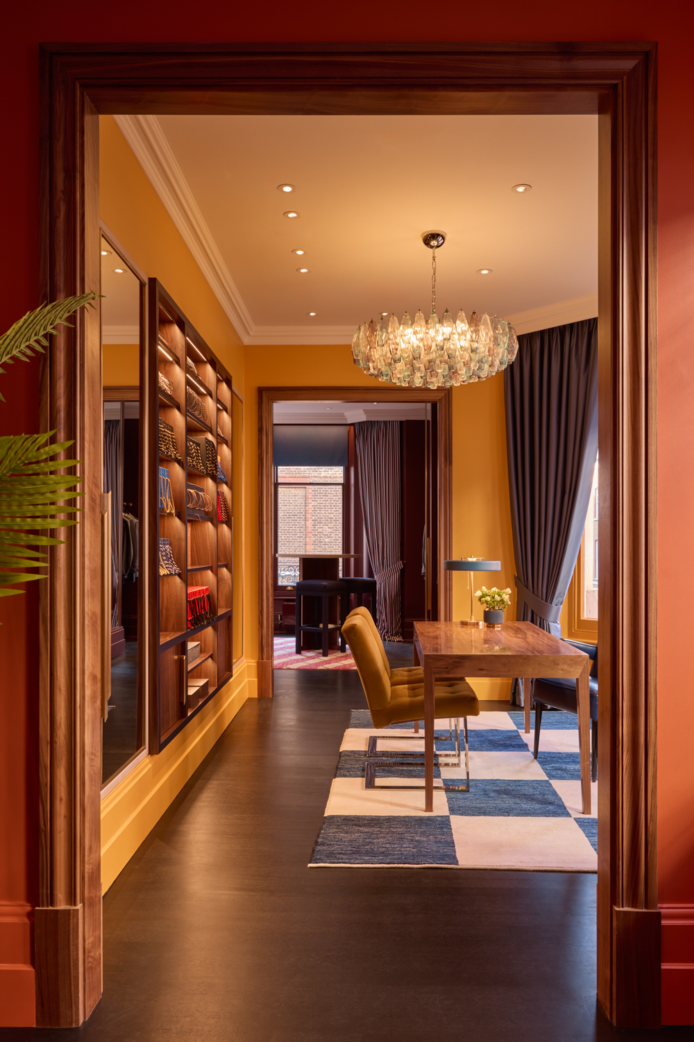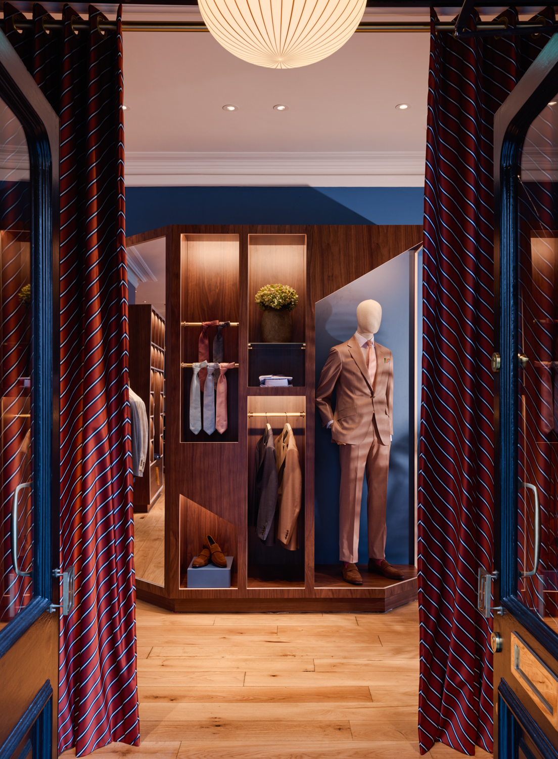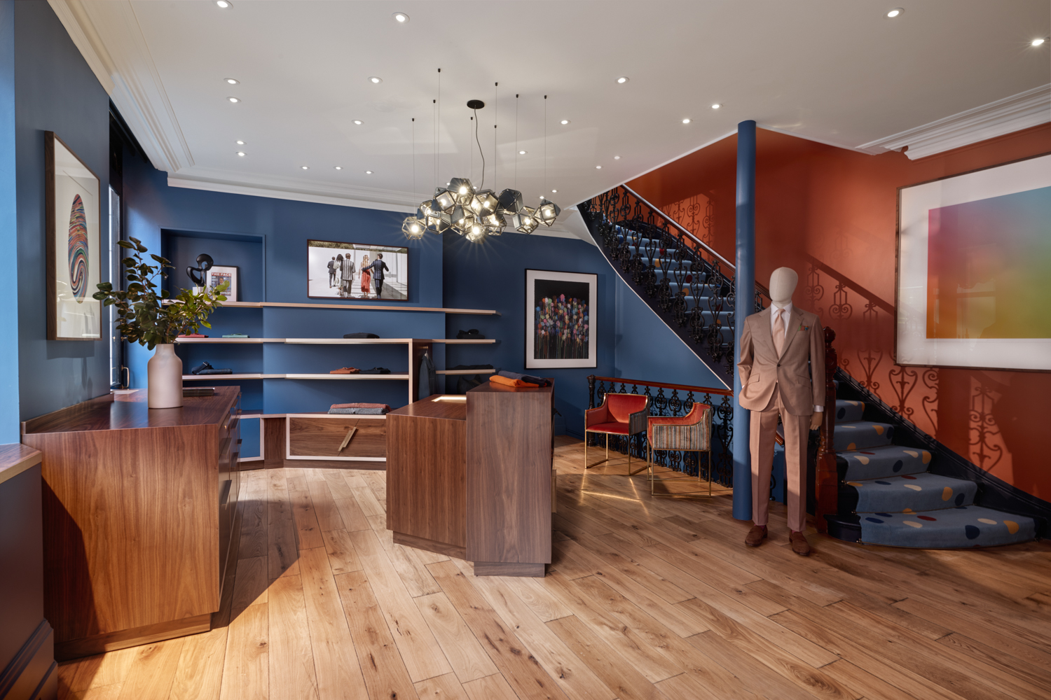 L'Observatoire International worked with David Thomas Design for the full interior renovation at the new bespoke flagship for Richard James, across from London's famed Savile Row. Located within a Grade II listed Georgian townhouse, the space houses ready-to-wear, bespoke, and limited collections and maintains a gentleman's club feel, with a coffee + cocktail bar on the second floor, exclusive artwork, and rich colors and finishes inspired by the brand. The lighting design respects the elevated residential atmosphere provided by the interiors, with discreet recessed ceiling downlights and integrated millwork lighting to quietly contrast and highlight the tailoring and architecture.
