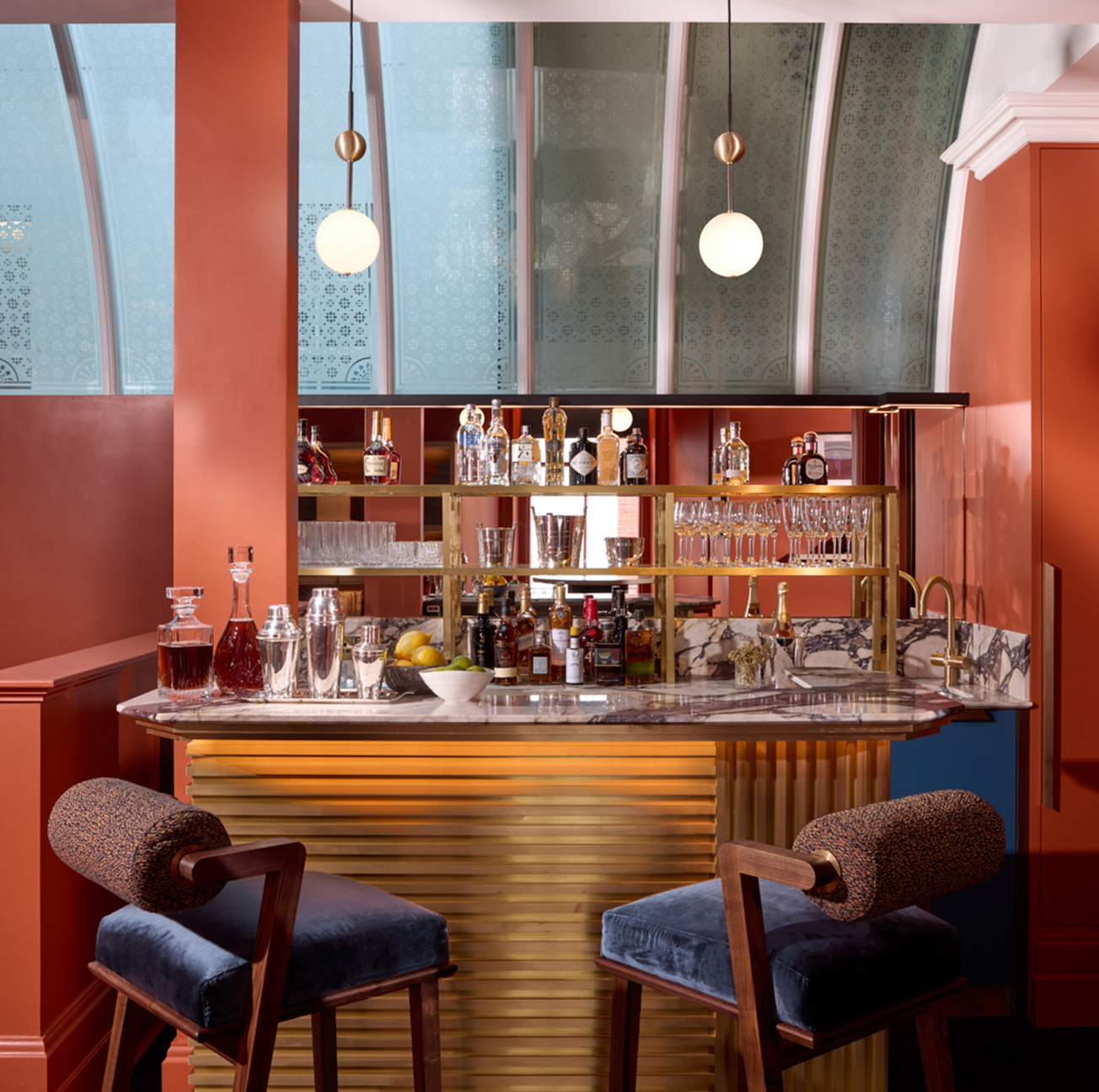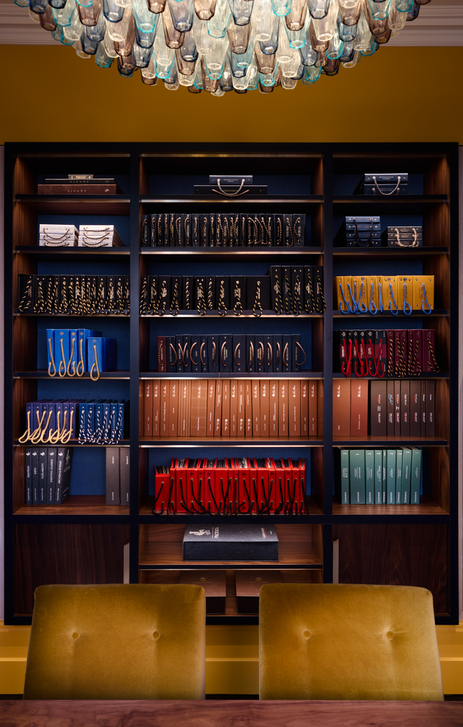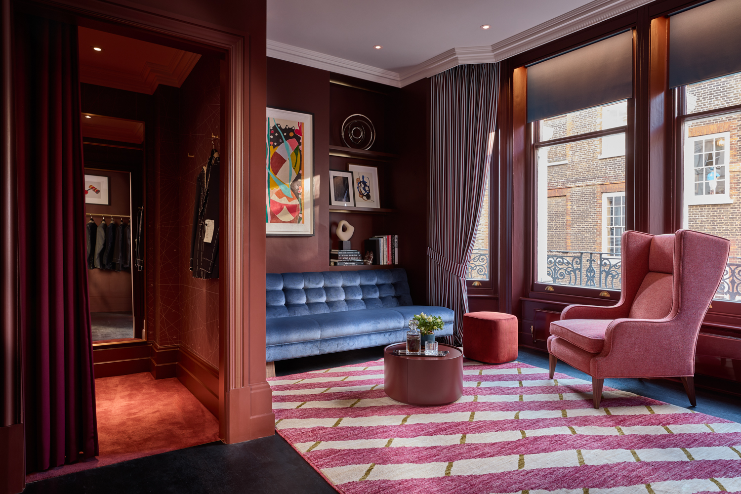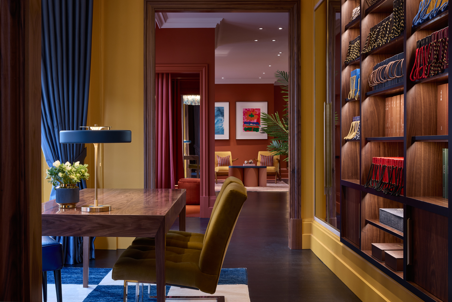 L'Observatoire International worked with David Thomas Design for the full interior renovation at the new bespoke flagship for Richard James, across from London's famed Savile Row. Located within a Grade II listed Georgian townhouse, the space houses ready-to-wear, bespoke, and limited collections and maintains a gentleman's club feel, with a coffee + cocktail bar on the second floor, exclusive artwork, and rich colors and finishes inspired by the brand. The lighting design respects the elevated residential atmosphere provided by the interiors, with discreet recessed ceiling downlights and integrated millwork lighting to quietly contrast and highlight the tailoring and architecture.