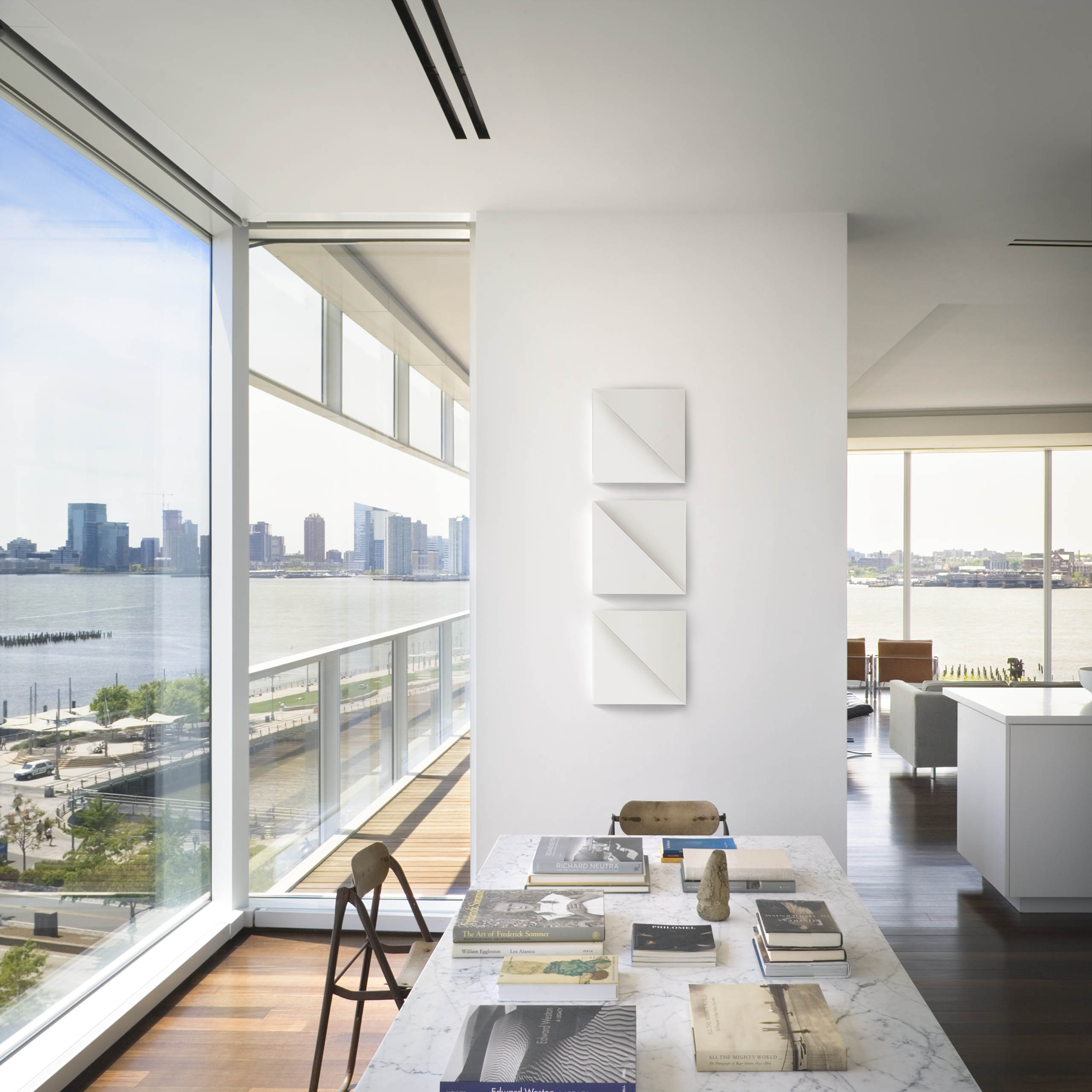 Richard Meier Light is a design lab for the development of unique lighting products, sculptures and collaborations that explore the concepts of light, color, shadow and shape. Forged through a collaboration of three partners, Richard Meier, Ana Meier and Hervé Descottes, Richard Meier Light seeks to understand the potent combination of design, lighting technology and wellbeing. The inaugural lighting collection launched in spring 2017, composed of 12-pieces that elevated the art of lighting with simplicity, geometry and lightness. With the new sculptural lighting collection from Richard Meier Light, launched in summer 2021, the trio of artists have pushed deeper into an exploration of the intersection of light, color, shadow and shape. An iconic collection composed of four limited-edition monumental light sculptures and a chandelier, the pieces introduce a colored light experience and bold materiality to the brand’s repertoire.