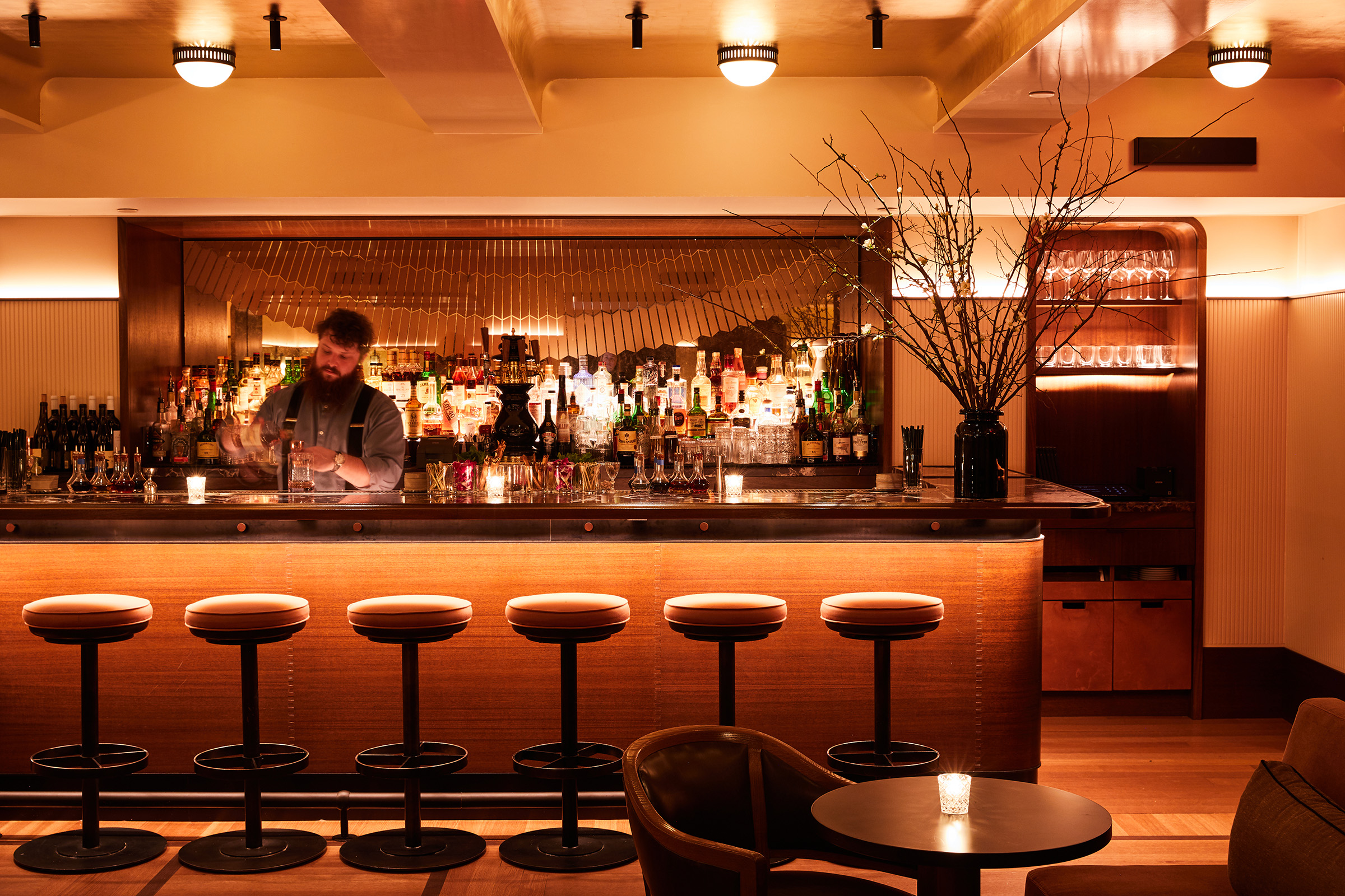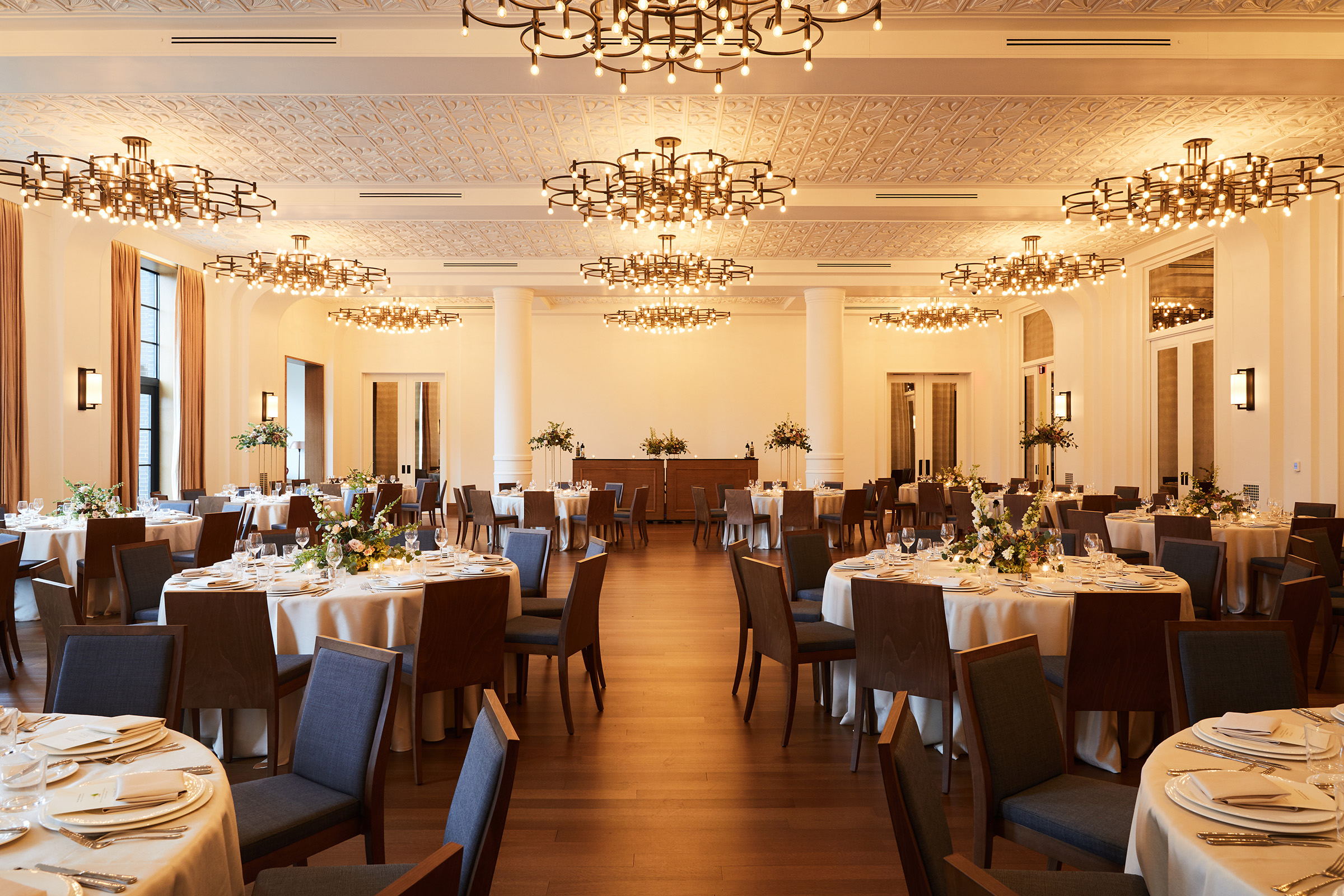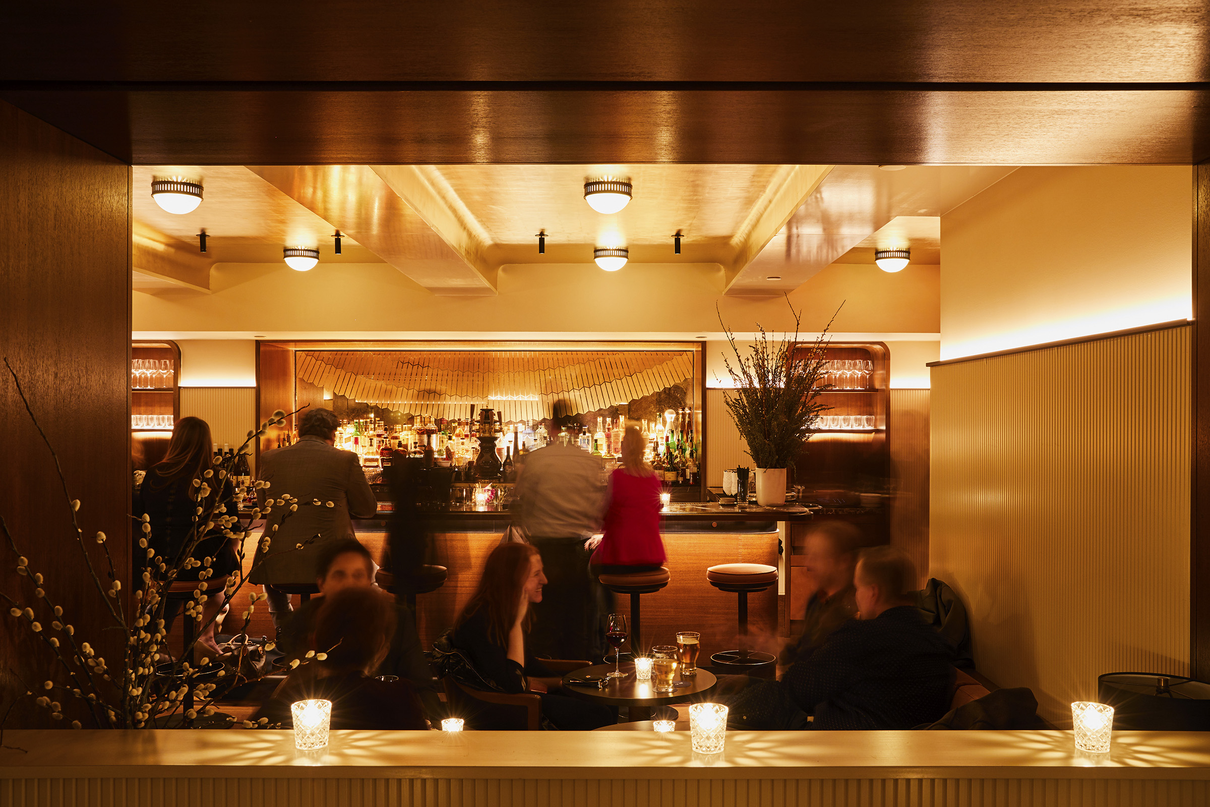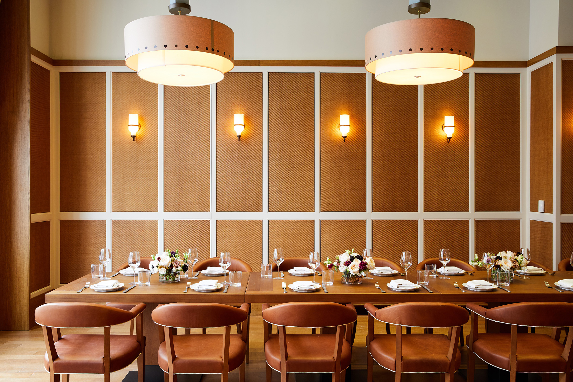 At the beer hall, an intimate atmosphere is created by a grid of low tailored industrial pendants and are complimented by glowing custom sconces. The mood deepens at the restaurant and evening bar where warm diffused lights with integrated fixtures at mirrored panels create the illusion of greater depth. Inside private dining areas a constellation of lights layered with an adjustable pulley system of pendants provide a customizable setting further personalizing the guest experience.