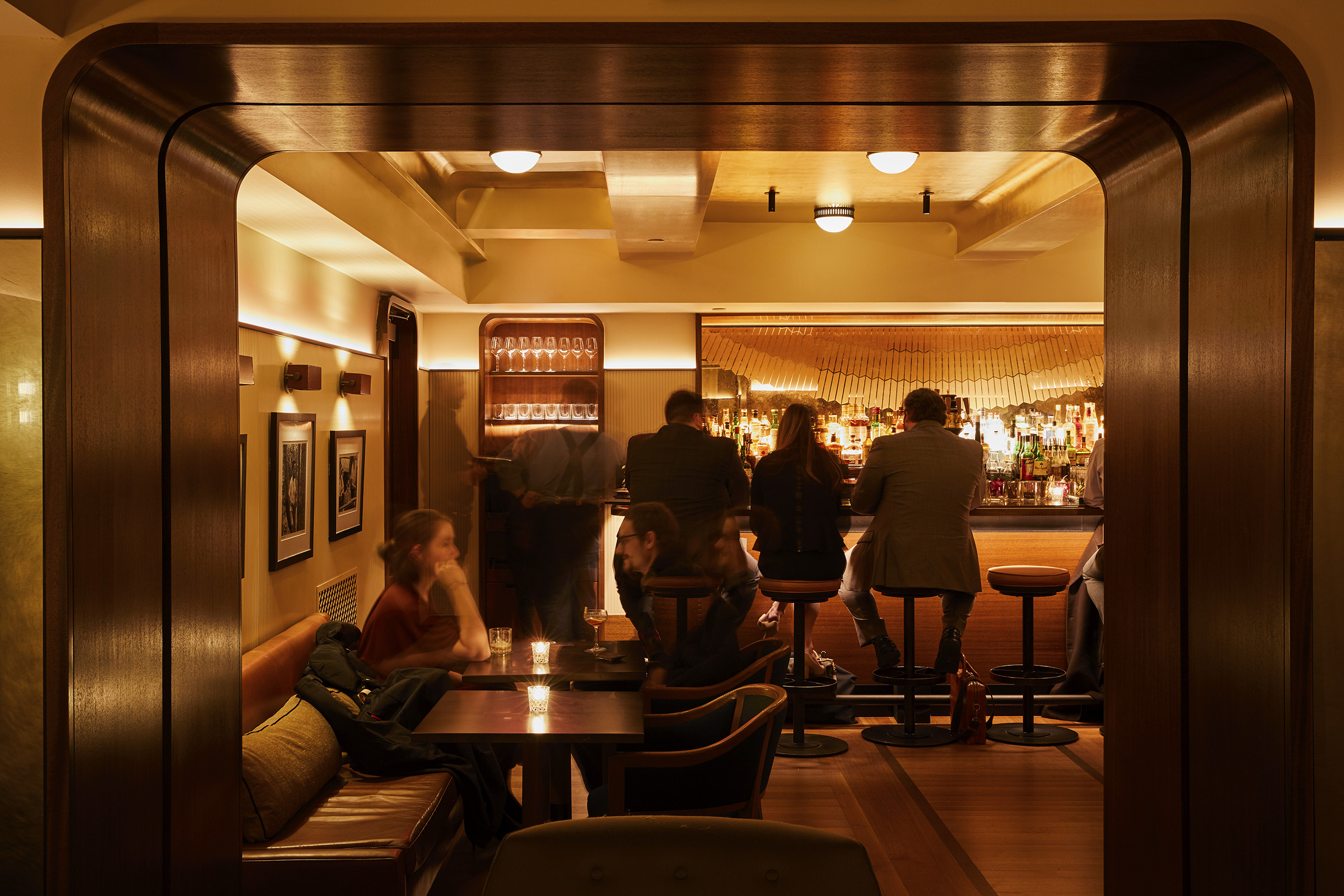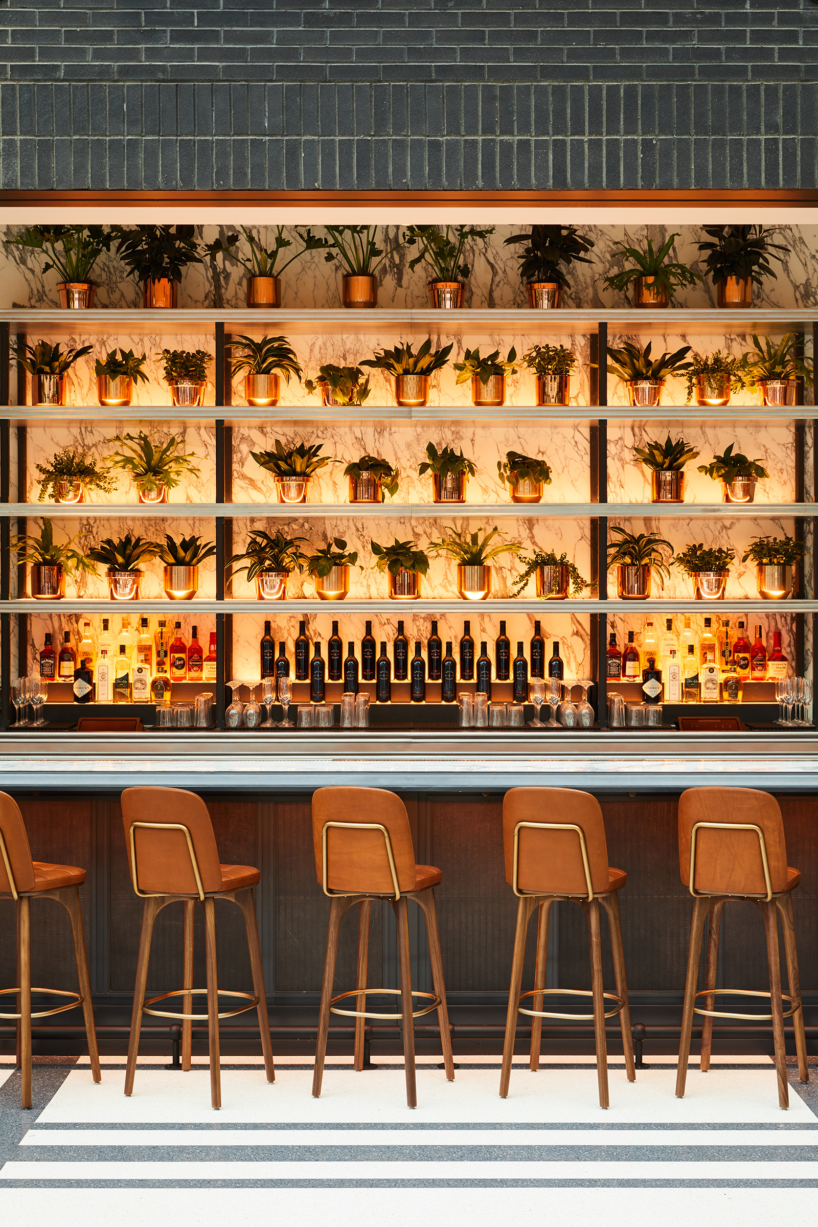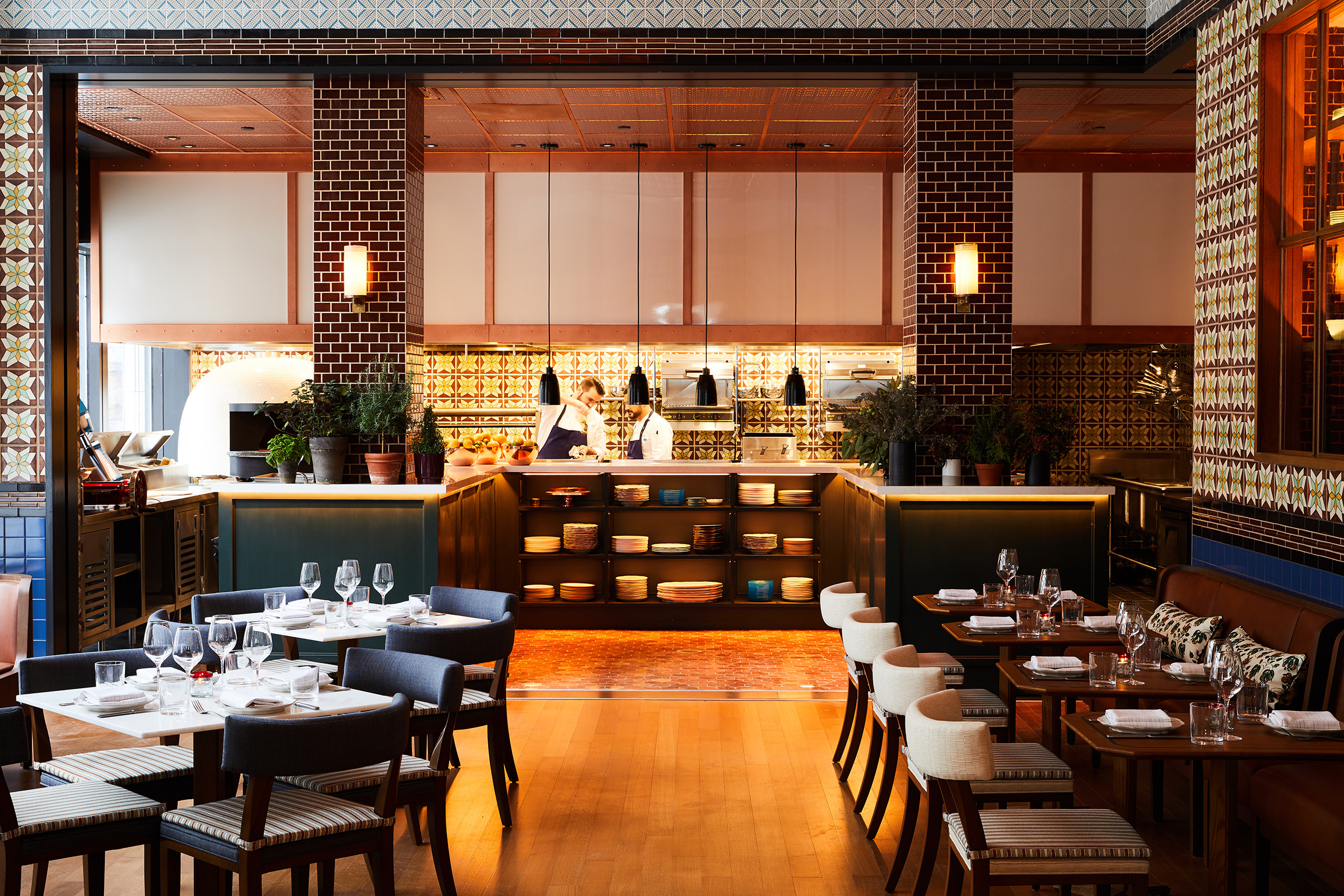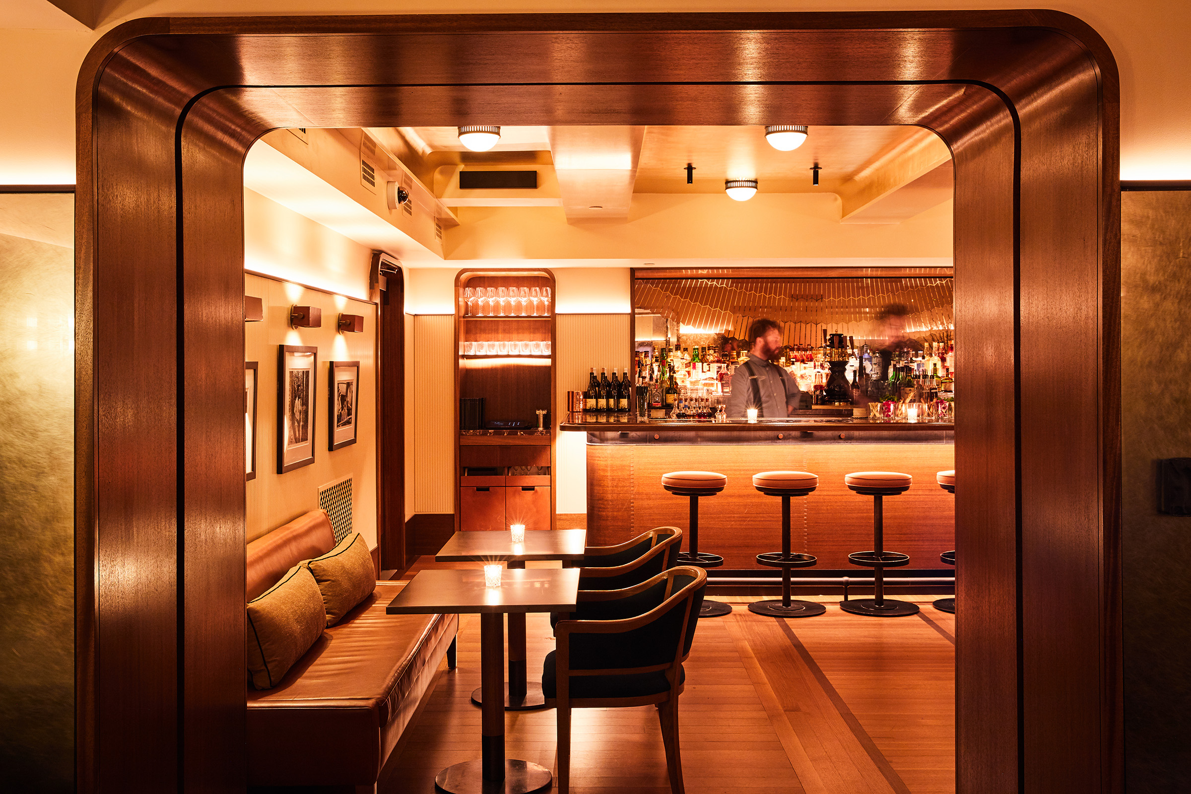 At the beer hall, an intimate atmosphere is created by a grid of low tailored industrial pendants and are complimented by glowing custom sconces. The mood deepens at the restaurant and evening bar where warm diffused lights with integrated fixtures at mirrored panels create the illusion of greater depth. Inside private dining areas a constellation of lights layered with an adjustable pulley system of pendants provide a customizable setting further personalizing the guest experience.