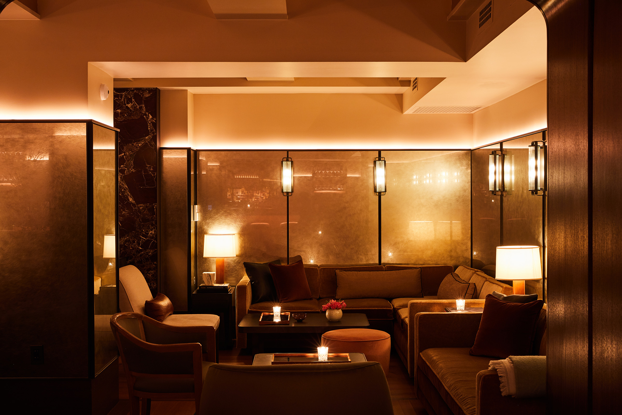 Throughout public spaces, custom wall sconces emphasize scale where low-level steplights and decorative fixtures establish areas for connection and points of intrigue.