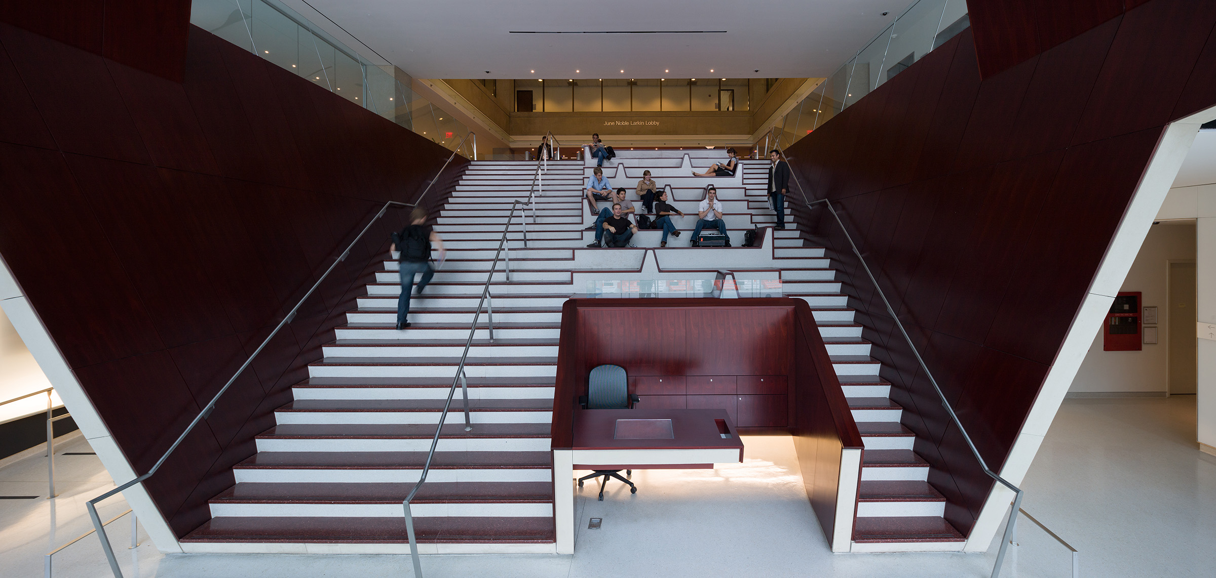 As part of the Lincoln Center 65th Street Development Project, the Juilliard School and Alice Tully Hall underwent a major renovation and expansion by architects Diller Scofidio + Renfro and FXFOWLE. Alice Tully Hall utilizes new interior materials, state-of-the-art technologies, and updated equipment for concerts, film, theater, and dance. The expansion of the Juilliard building created a three-story all-glass lobby and sunken plaza beneath a cantilevered extension, “projecting a newly visible public identity to Broadway.”