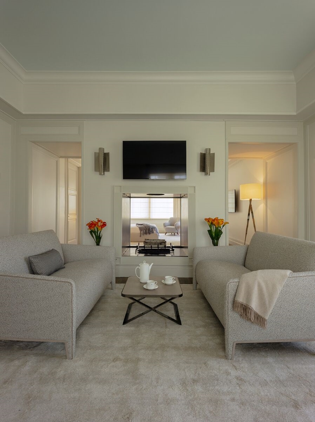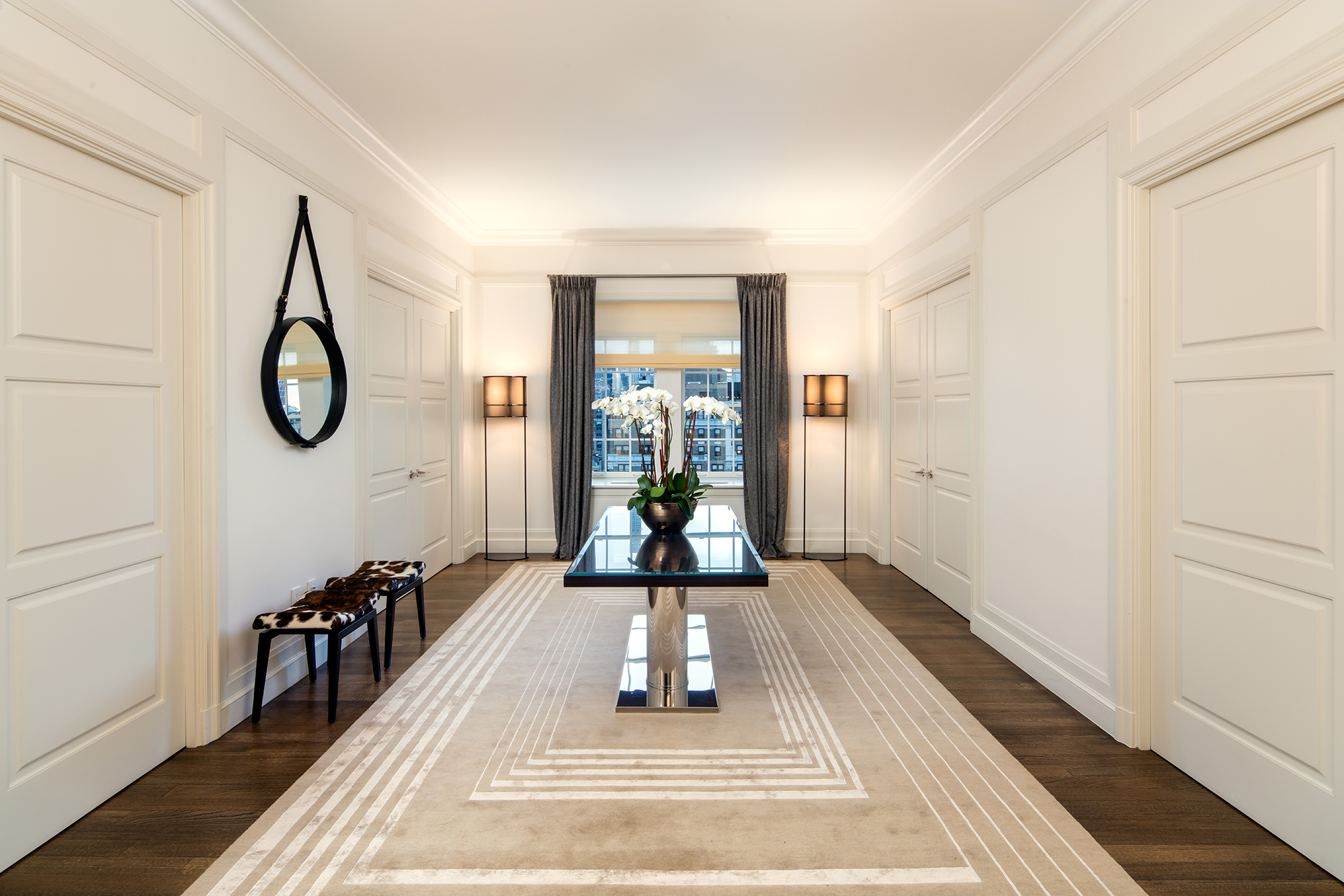 The unprecedentedly spacious penthouse is set out over the top two floors of The Mark Hotel and includes 5 bedrooms, 4 fireplaces, 6 bathrooms, 2 powder rooms, and 2 wet bars. The Living Room (which can be transformed into a full-‐sized Grand Ballroom) boasts 26-‐foot ceilings, a fireplace and adjacent wet bar.