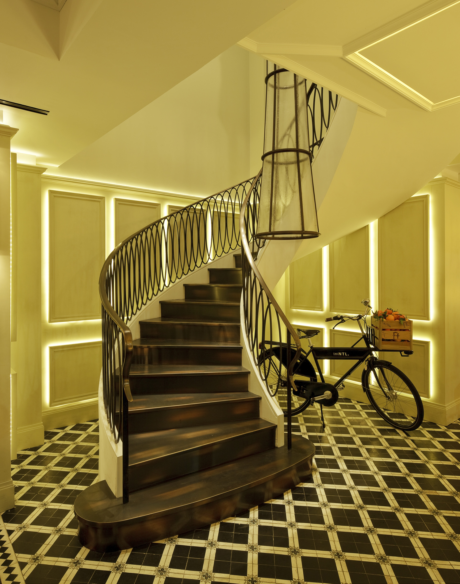 Inspired by Parisian bistros & by classic American dining rooms, the lighting for this restaurant is infused with warm yellow hues to create a soft and welcoming environment for customers. The lighting was designed to complement the bustling atmosphere and friendly, efficient service that this restaurant provides to its patrons.