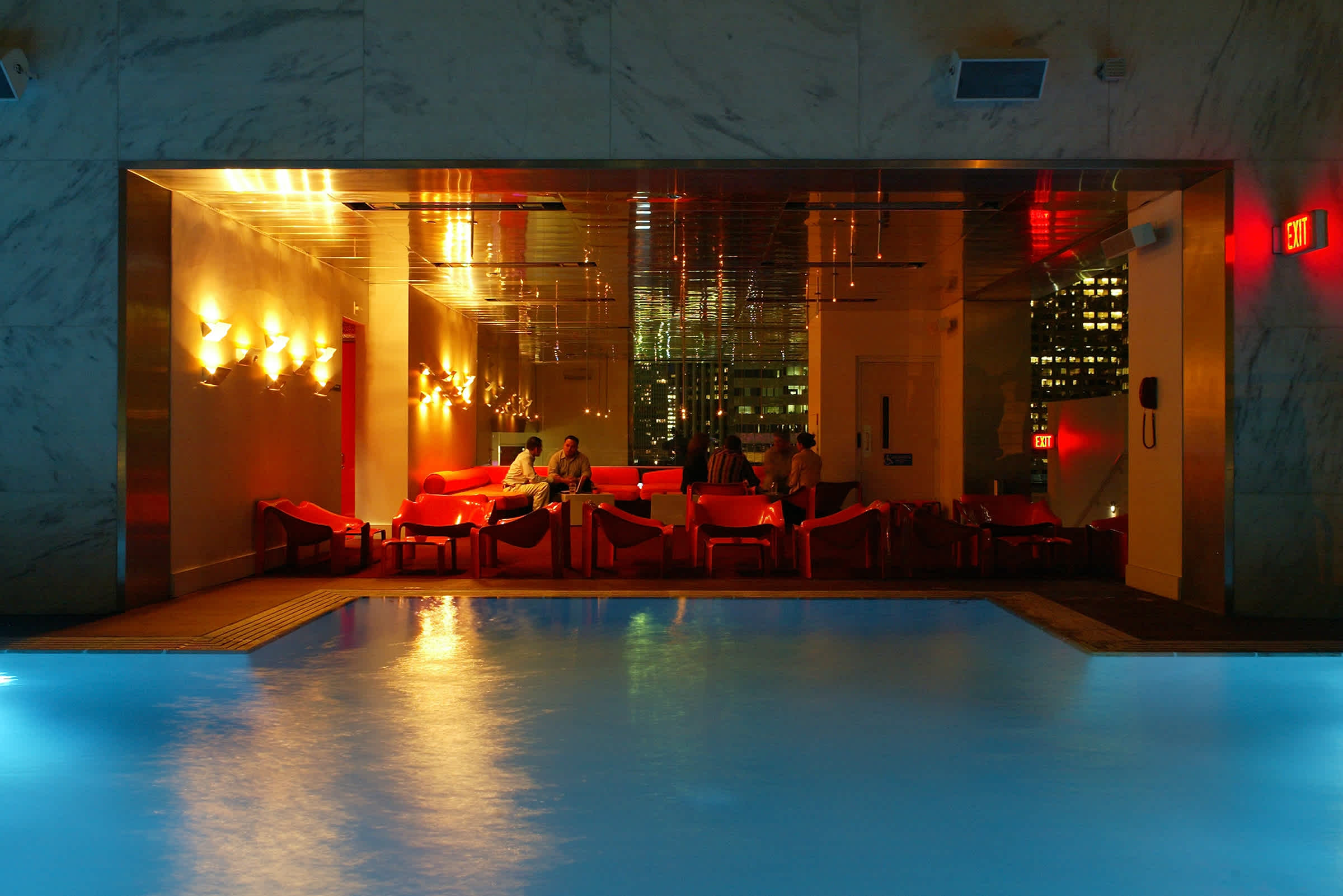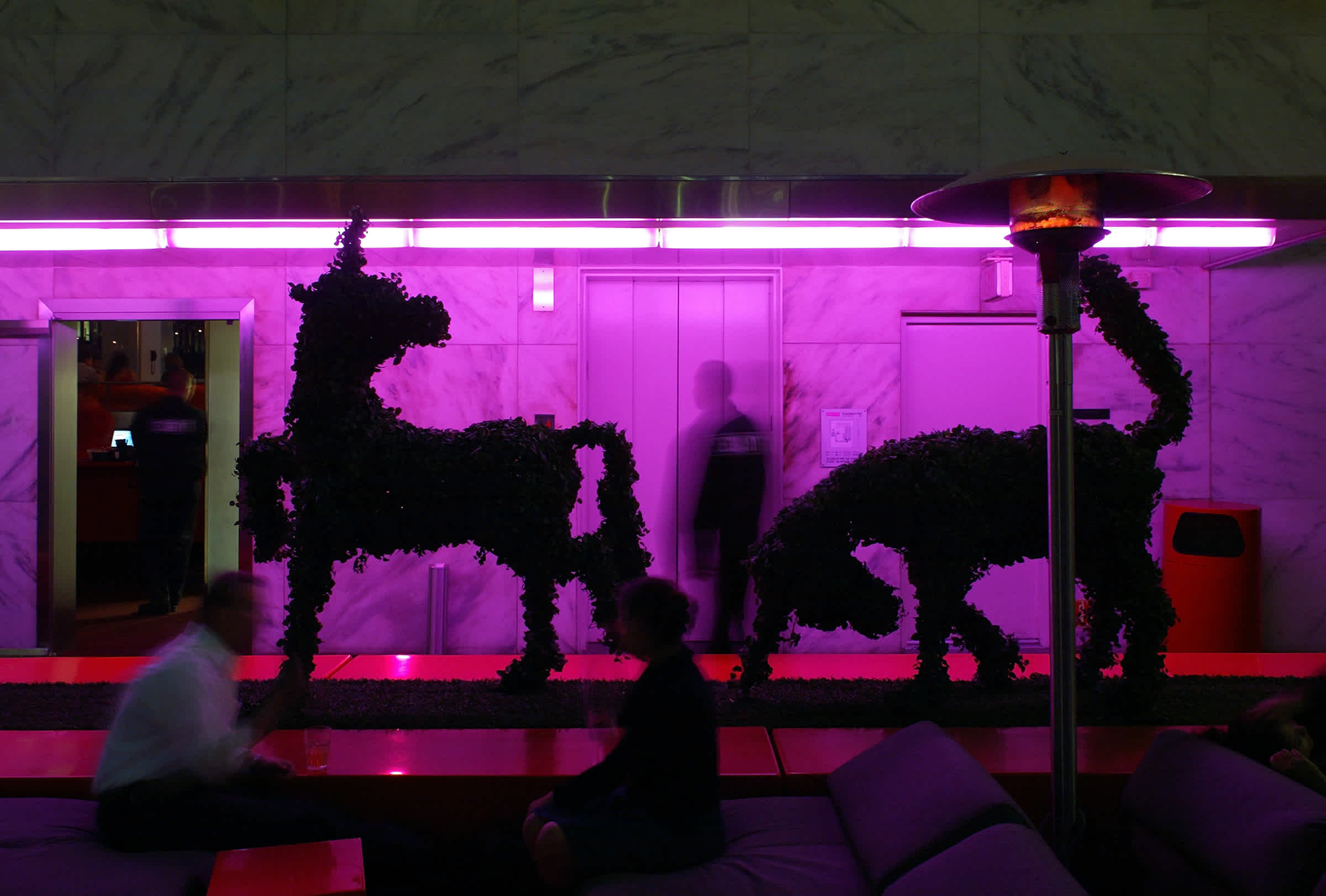Lighting amplifies specific identities in the hotel’s public spaces. On the roof, light is interjected into a fantastical garden. Here, the dramatic night lights of downtown Los Angeles provide a backdrop in an otherwise intimate space. In the lobby, colored pink and magenta lights reflect the uniquely modern spirit of Los Angeles.